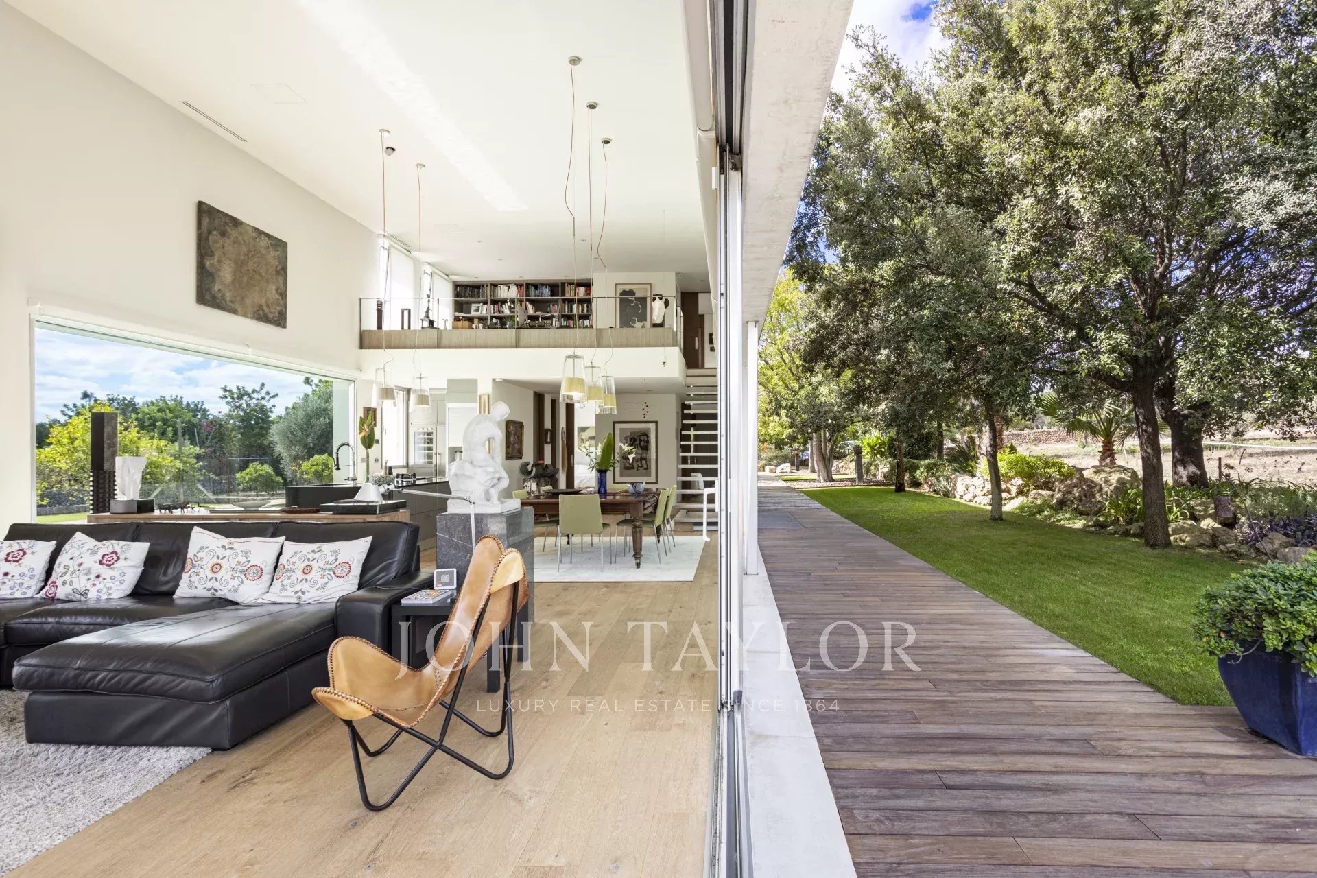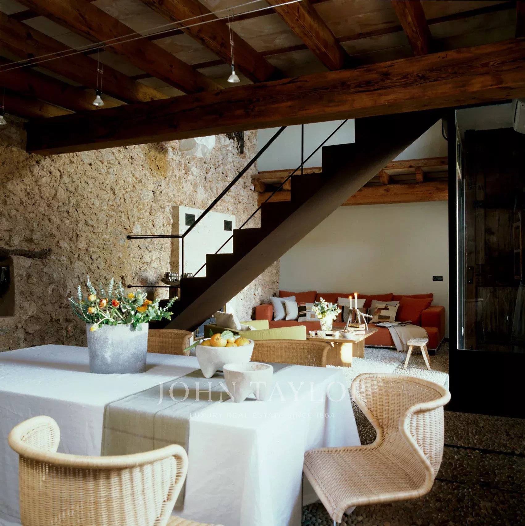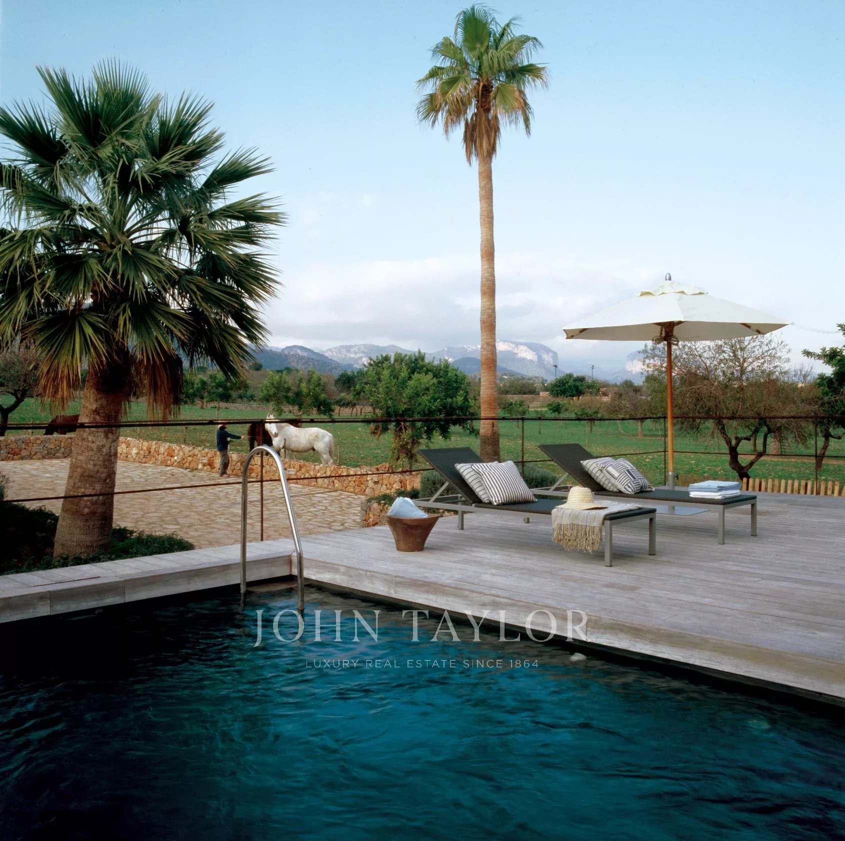 Luxury Estate in Santa María, Mallorca: Contemporary Design and Mallorcan Tradition In the heart of Santa María del Camí, one of the most sought-after villages in Mallorca, lies this spectacular luxury estate for sale that perfectly combines contemporary design, Mallorcan tradition, and an exclusive lifestyle. With a plot of 28,000 square meters, the property offers complete privacy and a unique natural setting with more than two hundred century-old carob trees, horse stables, a riding arena and an agricultural building. All of this is framed by the incomparable views of the Serra de Tramuntana, and only fifteen minutes by car from Palma. The estate comprises two independent residences. The main house, of modern architecture, stands out for its impressive floor-to-ceiling windows that flood every space with natural light and allow panoramic views of the Mallorcan countryside. It features two bedrooms, two bathrooms, and an extraordinary master suite located on the upper floor alongside an open-plan office with views to both sides of the villa. On the lower level, there is a laundry room, pantry, wine cellar, a spacious storage area that can be converted into a private gym, and a garage with capacity for three vehicles and an electric charging station. Outdoors, a 25-meter heated swimming pool becomes the centerpiece, accompanied by a majestic thousand-year-old olive tree that enhances the Mediterranean essence of the property. The house is equipped with underfloor heating and ducted air conditioning, ensuring a comfortable environment throughout the year. The second residence exudes the charm of an authentic Mallorcan stone house, with traditional walls, wooden beams, and a warm atmosphere that evokes the island’s rustic essence. It offers three double bedrooms, all with en-suite bathrooms, a beautiful private garden, its own swimming pool, and a sauna. This house also holds a holiday rental license for six guests, representing an excellent opportunity for profitability in Mallorca’s luxury real estate market. Spacious terraces surrounding both houses invite you to enjoy the Mediterranean climate and host family or social gatherings in a privileged natural environment. The estate is almost self-sufficient thanks to its private water well and solar panels that supply hot water to both residences, reinforcing its sustainable and exclusive character. This property in Santa María is not just an estate in Mallorca; it is a unique opportunity for those seeking a luxury villa with privacy, nature, and all modern comforts, without giving up the tradition and charm of the island. Without a doubt, one of the most popular country locations on the island, due to its proximity to the airport and Palma, to which it is also connected by train, ensures the maximum quality of life and comfort for easy access. This, together with its authentic charm, active village life, local artisans, and well-known Sunday morning market, where you can sample an array of products from local producers, is extremely popular with not only residents but also those living around the island. One of the best vineyards on the island, Macia Batle, is located in the village, which is an experience in itself. The area is surrounded by vineyards and open countryside. The neighboring villages of Consell, Binissalem, and Sencelles all offer additional options for enjoyment. A perfect location for those looking for a quieter, slower pace of life, immersed in nature, however, with the convenience of being 20 minutes from the city.