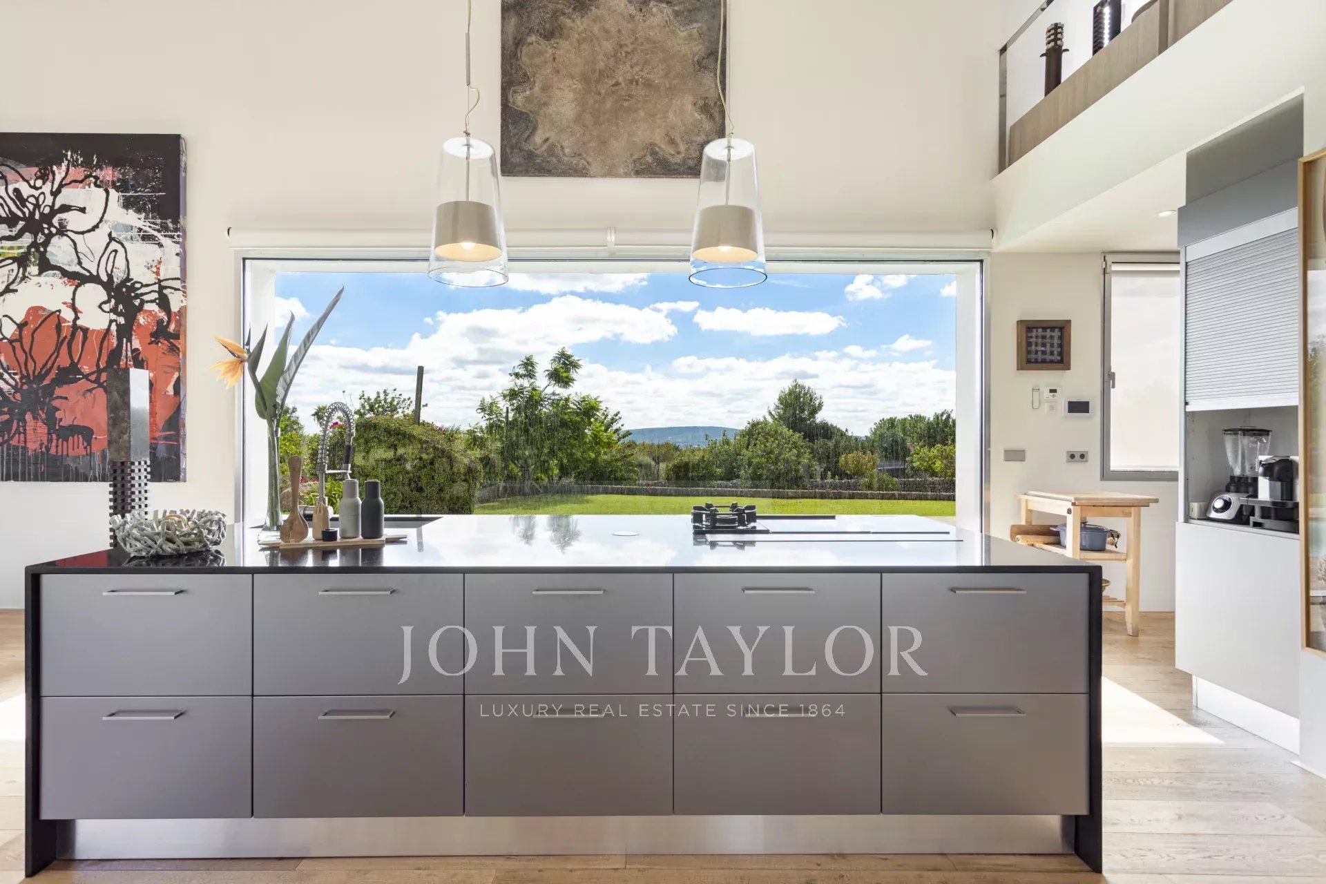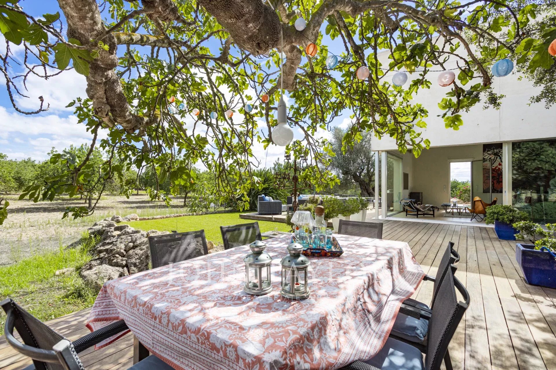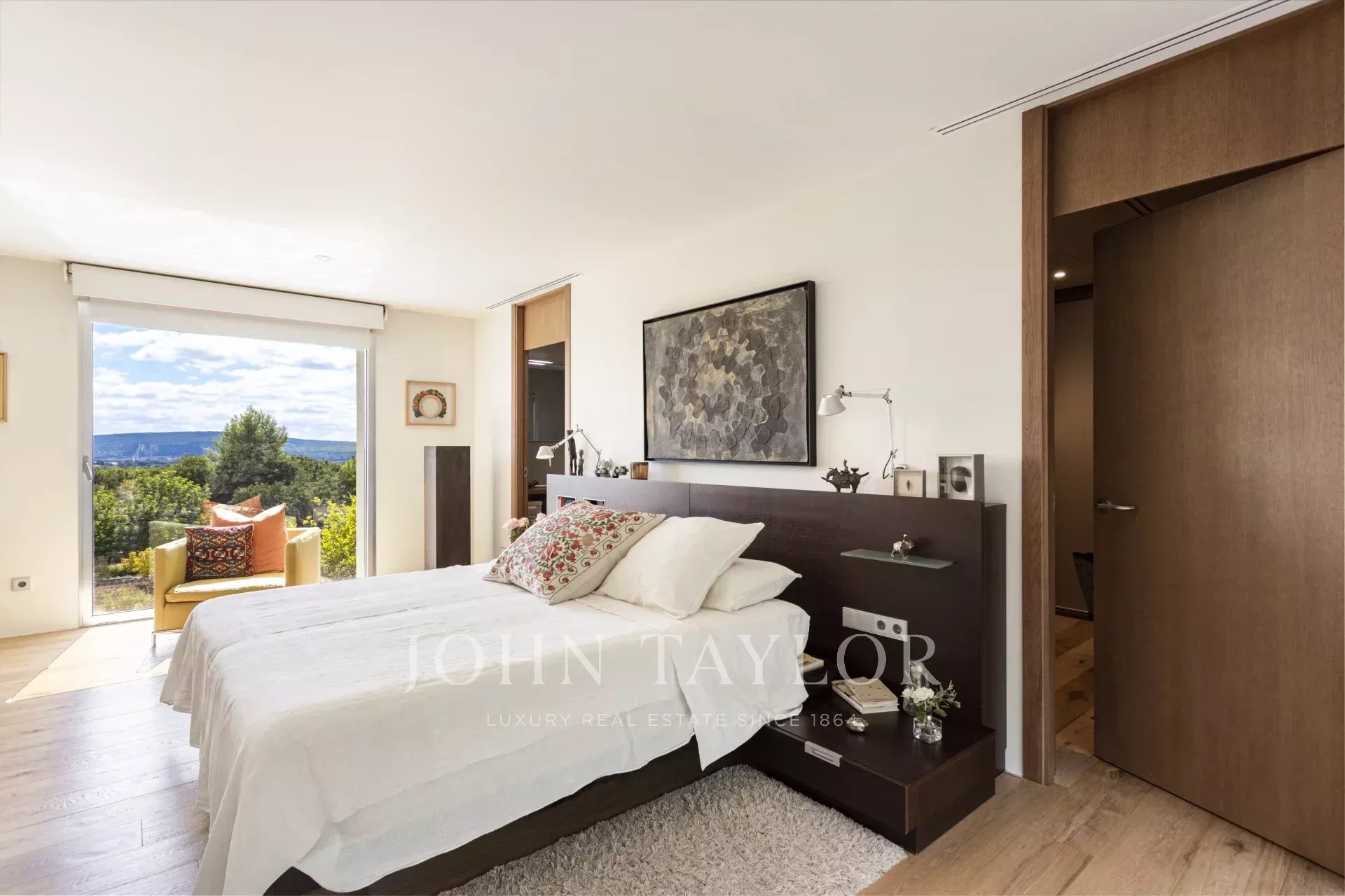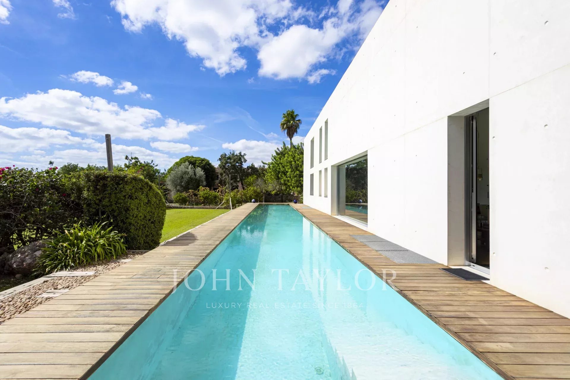 Luxury Estate in Santa María, Mallorca: Contemporary Design and Mallorcan Tradition In the heart of Santa María del Camí, one of the most sought-after villages in Mallorca, lies this spectacular luxury estate for sale that perfectly combines contemporary design, Mallorcan tradition, and an exclusive lifestyle. With a plot of 28,000 square meters, the property offers complete privacy and a unique natural setting with more than two hundred century-old carob trees, horse stables, a riding arena and an agricultural building. All of this is framed by the incomparable views of the Serra de Tramuntana, and only fifteen minutes by car from Palma. The estate comprises two independent residences. The main house, of modern architecture, stands out for its impressive floor-to-ceiling windows that flood every space with natural light and allow panoramic views of the Mallorcan countryside. It features two bedrooms, two bathrooms, and an extraordinary master suite located on the upper floor alongside an open-plan office with views to both sides of the villa. On the lower level, there is a laundry room, pantry, wine cellar, a spacious storage area that can be converted into a private gym, and a garage with capacity for three vehicles and an electric charging station. Outdoors, a 25-meter heated swimming pool becomes the centerpiece, accompanied by a majestic thousand-year-old olive tree that enhances the Mediterranean essence of the property. The house is equipped with underfloor heating and ducted air conditioning, ensuring a comfortable environment throughout the year. The second residence exudes the charm of an authentic Mallorcan stone house, with traditional walls, wooden beams, and a warm atmosphere that evokes the island’s rustic essence. It offers three double bedrooms, all with en-suite bathrooms, a beautiful private garden, its own swimming pool, and a sauna. This house also holds a holiday rental license for six guests, representing an excellent opportunity for profitability in Mallorca’s luxury real estate market. Spacious terraces surrounding both houses invite you to enjoy the Mediterranean climate and host family or social gatherings in a privileged natural environment. The estate is almost self-sufficient thanks to its private water well and solar panels that supply hot water to both residences, reinforcing its sustainable and exclusive character. This property in Santa María is not just an estate in Mallorca; it is a unique opportunity for those seeking a luxury villa with privacy, nature, and all modern comforts, without giving up the tradition and charm of the island. Without a doubt, one of the most popular country locations on the island, due to its proximity to the airport and Palma, to which it is also connected by train, ensures the maximum quality of life and comfort for easy access. This, together with its authentic charm, active village life, local artisans, and well-known Sunday morning market, where you can sample an array of products from local producers, is extremely popular with not only residents but also those living around the island. One of the best vineyards on the island, Macia Batle, is located in the village, which is an experience in itself. The area is surrounded by vineyards and open countryside. The neighboring villages of Consell, Binissalem, and Sencelles all offer additional options for enjoyment. A perfect location for those looking for a quieter, slower pace of life, immersed in nature, however, with the convenience of being 20 minutes from the city.