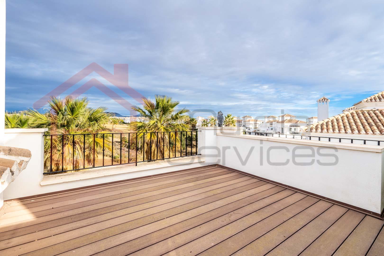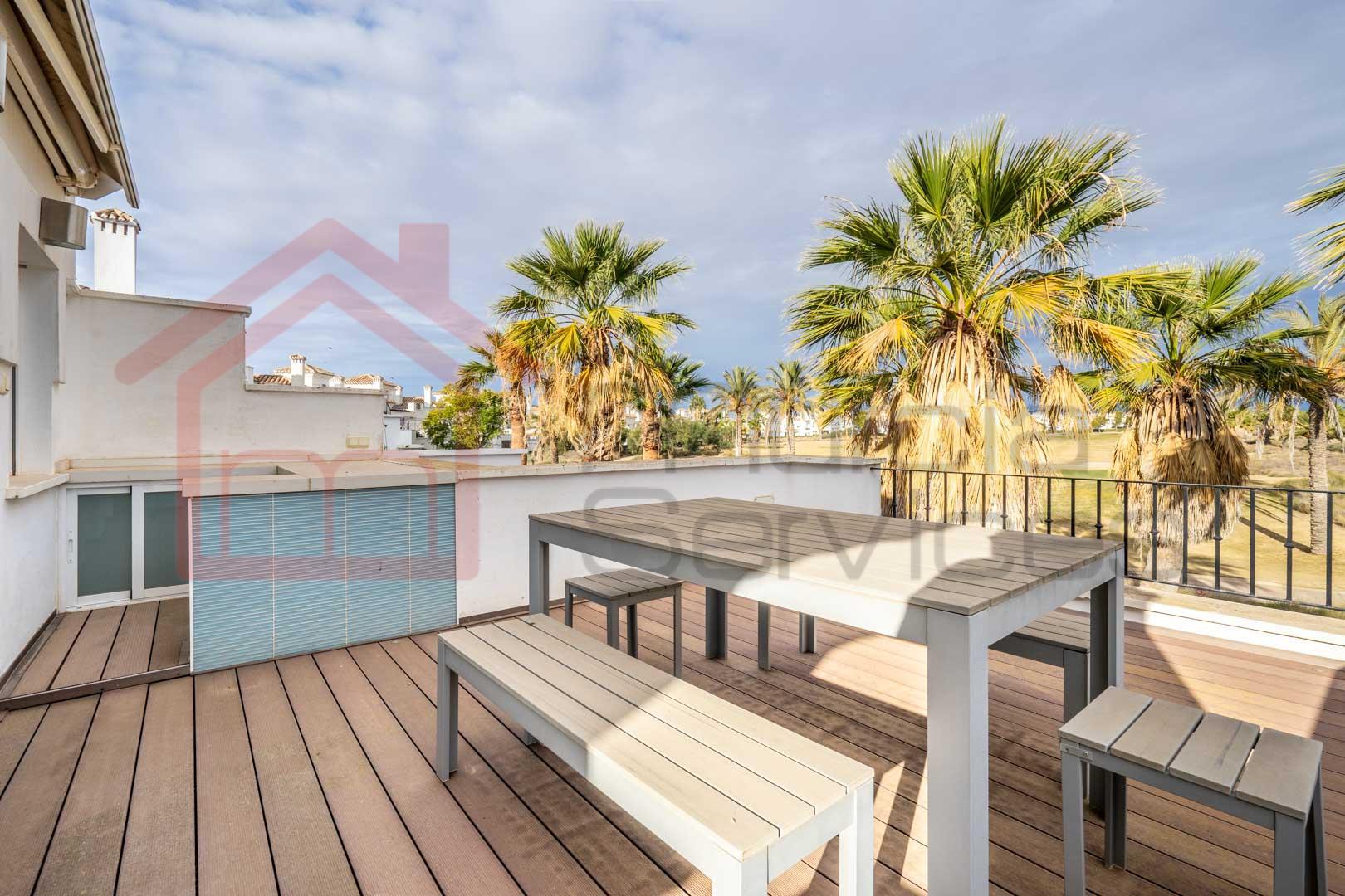 Luxury La Torre Golf TownhouseExtended kitchen and living room for enhanced spaciousness.Upgraded kitchen with storage and a large island.New floors throughout the home for a stylish, cohesive look.Downstairs features an upgraded bathroom with a walk-in shower.Downstairs bedrooms equipped with fitted wardrobes.Spacious master bedroom with an en-suite and sliding doors to a terrace.Terrace offers stunning golf course views.Third-floor terrace provides panoramic views of the resort.Air conditioning ensures comfort throughout the property.Private car port for convenient and secure parking.24-hour security for peace of mind.La Torre Golf Resort is undoubtedly the most popular of all the golf resorts in the region. With a wide range of amenities, an 18 hole golf course designed by the famous Jack Nicklaus, on-site supermarket and a 5* DoubleTree by Hilton Hotel, there is no wonder why properties on this resort are so sought after.The resort also has the advantage of being perfectly located between Murcia City Center and the coast, both just 20 minutes in either direction, so you´re never too far away from the beautiful Costa Calida beaches, large shopping malls and traditional Spanish cities.For more information on this Luxury La Torre Golf Townhouse or to schedule a viewing, please contact us today!