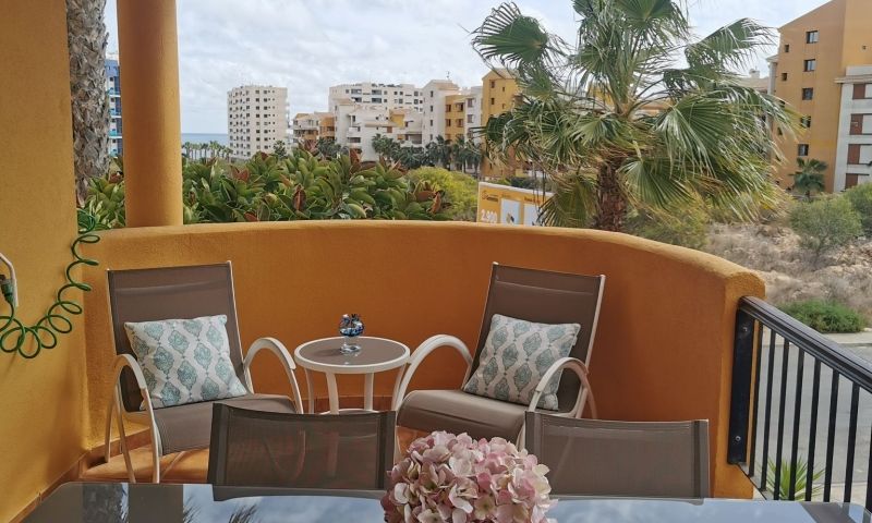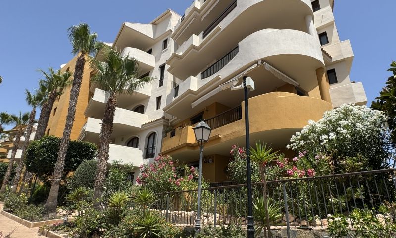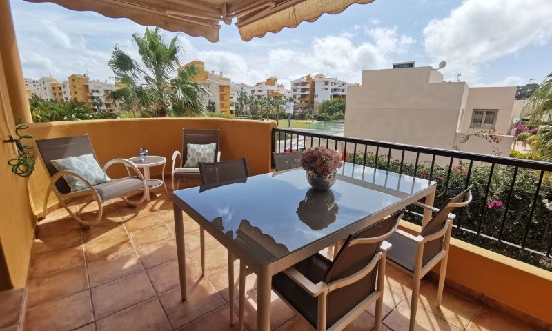 Spacious apartment located within the exclusive gated community of Panorama Park in Punta Prima. The property consists of 2 bedrooms and 2 bathrooms, a spacious living room with lots of natural light, an impeccably equipped kitchen and a terrace perfect for dining al fresco while enjoying the fascinating views. With underground garage and storage room, elevator, first floor. Located in the prestigious area, Panorama Park residents enjoy access to luxury amenities, including a community pool and green spaces, mini golf. With the beach just 300 meters away, quiet walks along the coast are a daily pleasure. Conveniently located within walking distance of the international airports of Murcia and Alicante, this idyllic retreat promises a Mediterranean lifestyle with 320 days of sunshine a year. Experience coastal living at its finest at this magnificent apartment in Panorama Park.