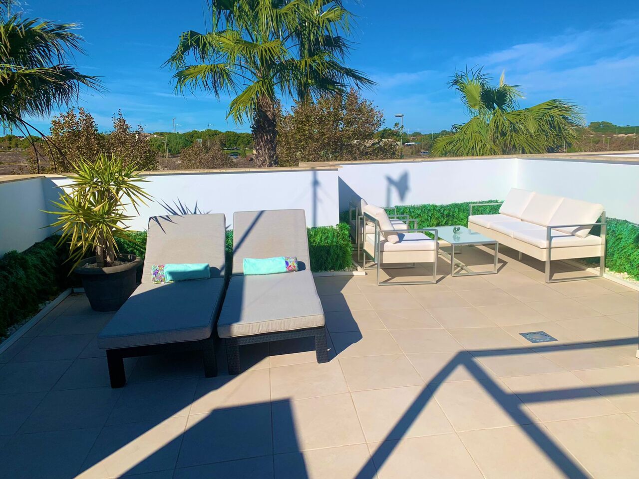 This beautiful penthouse apartment situated in a select gated community of Lo Romero Golf, is offered in excellent condition throughout with stunning views of the countryside and distant sea views.  The property is situated just a short 5 minute drive from a variety of shops and local amenities in Pilar de la Horadada and only around 15 minutes drive to the lovely beaches of the Costa Blanca.This lovely property has 2 double bedrooms, a family bathroom as well as ensuite to the master bedroom. Open plan living area leading to a modern fitted kitchen.  There is a small storage room,  and a very spacious roof solarium, with fabulous 360 views of the surrounding area.  There is private parking , and an inviting communal swimming pool and gardens. The property is offered fully furnished and in excellent condition.Contact our team for soonest viewing!