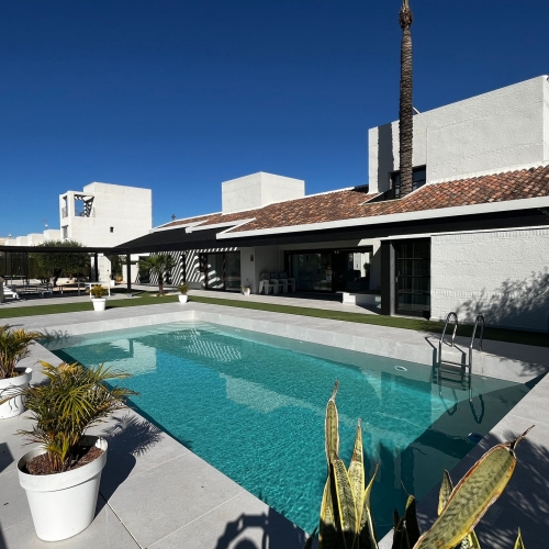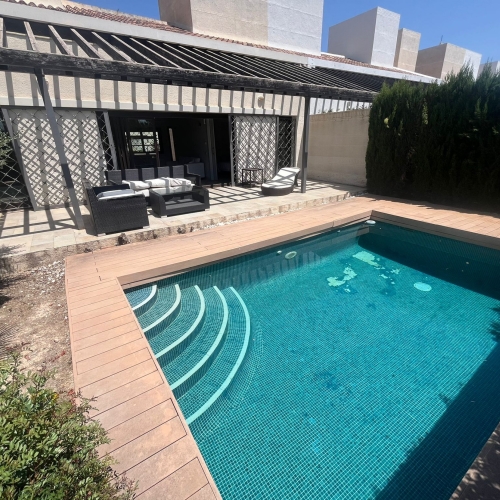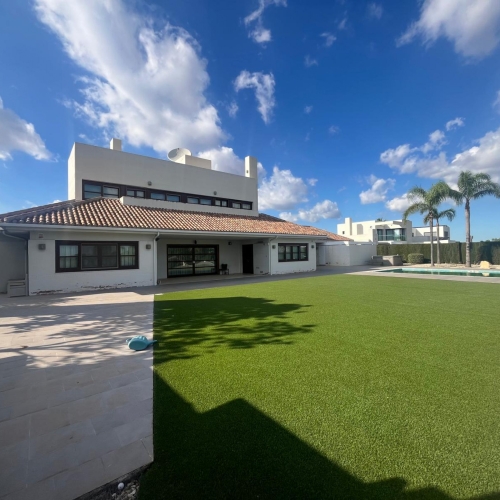 Set in a commanding position on an impressive plot overlooking the golf course with views to the sea, this 4-bedroom, 5-bathroom (4 en-suite) property oozes space and opulence.Amidst rolling landscapes and vibrant greenery, this exclusive resort is undergoing an exciting transformation with the resorts championship golf course designed by the legendary Seve Ballesteros set to reopen in approximately the first quarter of 2026, as is the clubhouse with a restaurant, a stylish cocktail bar, a practice driving range, and a putting green.Features:1387m2 Plot. 360m2 Build. 2 Bedroom both with ensuite downstairs. 2 Bedroom both with ensuite upstairs. Downstairs Toilet. Large Dining Room. Impressive Kitchen with doors leading to dining area, lounge and outside terrace. Pantry. Huge Lounge with patio doors leading to outside terrace, seperate doors leading to office and bedrooms. Office with walkin storage. Electric Gates. Covered Driveway. Double Garage. Outsite Kitchen. 10 x 5 swimming pool. Huge Landscape garden low maintenance. Terrace leading of bedrooms upstairs. Solarium. Panoramic Views - Mountains, Men Menor, Gardens, Countryside and Golf Course.LOCATION - The villas are a 25 minutes drive from the new Murcia International Airport and just over an hour from Alicante airport. Peraleja Golf is within 30 minutes from the lively cities of Murcia and Cartegena. The popular Spanish town of Sucina, made famous by A Place in the Sun TV program, is only 5 minutes by car and offers a good choice of bars and restaurants, two supermarkets, chemist, doctors, ironmongers, all everyday amenities. The tourist towns and beaches of Santiago de la Ribera, Lo Pagan and Los Alcazares are only 20 minutes away.Peraleja Golf Course, clubhouse and Piano Bar are currently closed, however it has been purchased by new investors and is on the pathway to a remarkable transformation, with renovations already underway on many of the unfinished properties. As part of the overall investment plan, the new owners now own much of the open area extending beyond the boundary of the golf course and are actively evaluating the opportunities for using that land as future recreational space. This is a great opportunity to buy a fantastic golf villa in the early stages of the redevelopment and secure it before the prices inevitably rise when the golf course, Clubhouse and Piano Bar reopen.