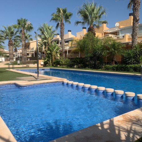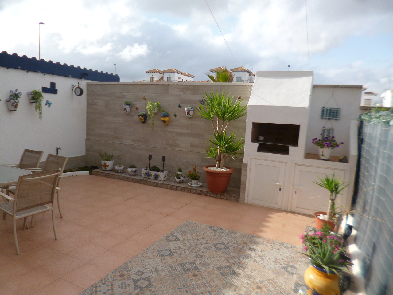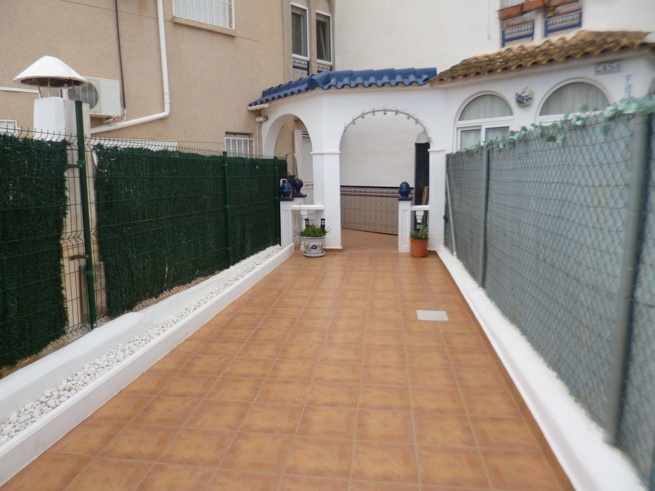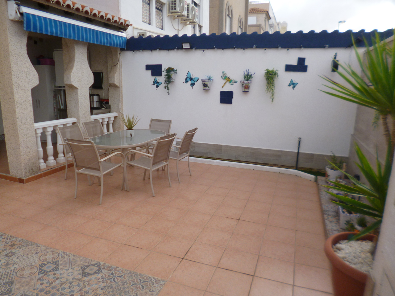 We are pleased to offer for sale this beautiful Beachside townhouse, It has 3 bedrooms and 2 bathrooms, it is modernized and ready to move in. The property is ideal for both permanent living or holidays. It has parking to front and a private rear garden. Entrance into the living room with modern log burner for heating in winter and air conditioning  for cooling in summer. I also has ceiling spotlights and a ground floor wc with shower cubicle. It has a modernized America style kitchen with glass doors to rear terrace. Where there is extra storage and an exterior kitchen and BBQ. There is a beautiful garden area which is laid to tiles and is low maintenance. On the first floor there are two double bedrooms both with fitted wardrobes and aircon. The master bedroom having a balcony and large dressing area. Plus a bath room with a walk in shower. On the top floor is the 3rd spacious bedroom with private solarium and beautiful views of the garden to one side and sea views to the other. This property is beachside of the N332 coastal road and is only 6 minutes walking distance to the beautiful beaches of La  Zenia and a few minutes more to Cabo Roig. It also is only a short drive to many championship golf courses. This property needs to be viewed internally to be fully appreciated, so viewing is highly recommended.The beautiful town of La Zenia is located between the towns of Cabo Roig and Playa Flamenca. Situated in a district known as the Orihuela Costa, La Zenia is a popular and desirable holiday location. La Zenia boasts a couple of excellent beaches, CalaBosque and Cala Cerrada and is also close to some other superb beaches at Cabo Roig and Playa Flamenca, both beaches have ‘blue flag’ status and are well cared for and maintained. Another great feature is the picturesque cliff walk to Cabo Roig, with stunning views of the Mediterranean Sea towards the sports resort of La Manga. Work is currently being done at various points along the coast to extend and improve the promenade and cliff walk so that eventually visitors will be able to enjoy walking all the way from Campoamor to Torrevieja, a new marina is also planned at TorreviejaThe renowned La Zenia Hotel is located right by the side of the beach and is well signposted from the N332 coast road, the hotel offers a good range of accommodation and some great facilities and entertainment. La Zenia currently has a good range of shops, bars and restaurants and the new La Zenia Boulevard commercial centre close to the motorway junction has greatly improve the range of facilities available for visitors to the area. La Zenia is very popular with Irish visitors and the famous ‘Paddy’s Point’ pub is reputed to have been the first Irish pub in the region.The superb Saturday market at Playa Flamenca is just a short walk from La Zenia and is located behind the Mercadona supermarket (just follow the crowds!), it is held from 8am - 2pm and is a great place to find a bargain, or just stock up on some locally grown fresh fruit and vegetables.The well known Cabo Roig strip is also close by and can be easily reached by foot if you don’t mind a 5 minute walk. The ‘strip’ has a huge choice of bars and restaurants and plenty of live entertainment during the busy summer months.Also close by is the Go-Kart track at Punta Prima, a great place to take the kids for an hour or two, there are even mini-karts and mini-quads for young children.La Zenia is located on the N332 coastal road between Cabo Roig and Playa Flamenca and has its own exit from the AP-7 motorway (763). It is easily reached from both Murcia and Alicante airports being around 40 minutes from Murcia airport by car and 45 minutes from Alicante.