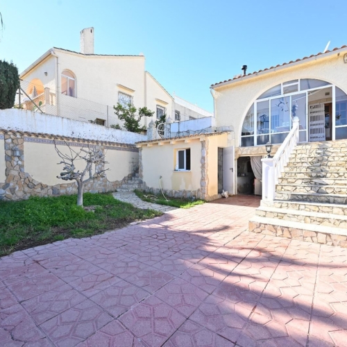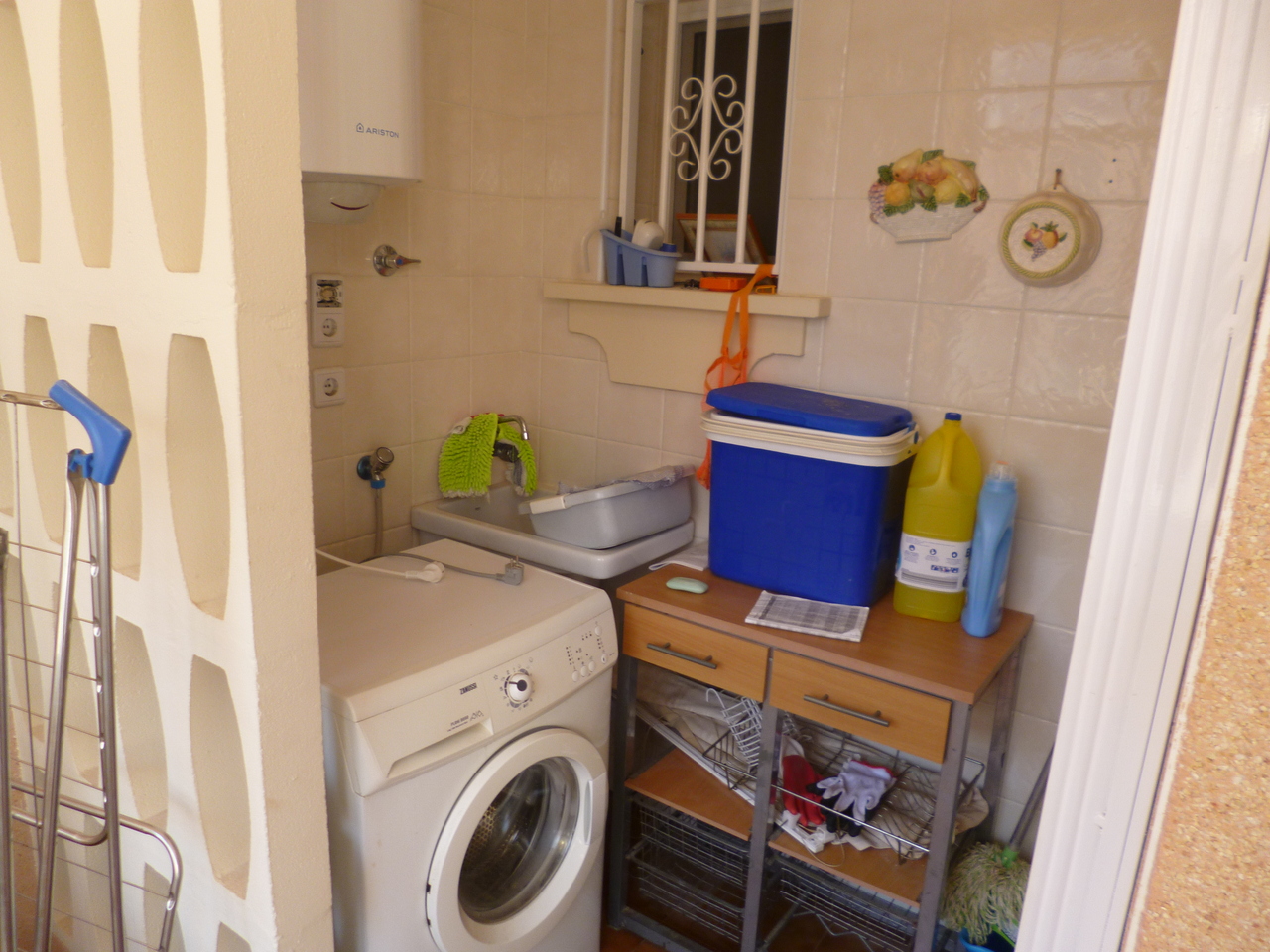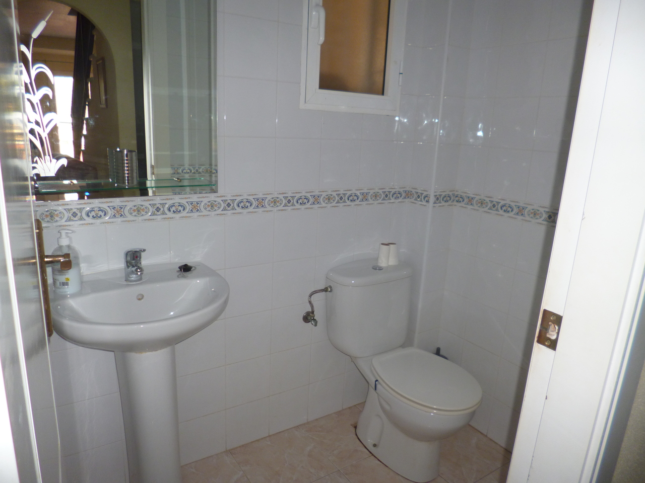 We are pleased to offer this Large 3 bedroom 2 bathroom townhouse,  with an integral garage and community swimming pool. The property is located in La Florida, overlooking the parkland between the Emerald Isle and the La Florida commercial area of shops bars and supermarket. The front garden facing west gets afternoon sun, the garden is mostly laid to tiles with a shrub and flower boarder, the living / dining room is a good size with WC and separate modern fitted kitchen, galley style leading to the utility room and 2nd lounge or another dining room to the rear. Also from the living room is a staircase leading downwards to the large private garage. Going upstairs from the front door is a family bathroom between two double bedrooms each with ceiling fans, fitted wardrobes and views of the park. On the top floor is the master bedroom with a small solarium to the front and the rear, the rear receives morning sun and the front afternoon sun, the communal swimming pool is a short walk of 50m2.