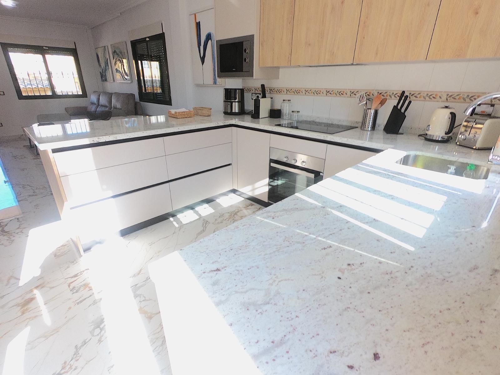 Discover this stunning villa located in the peaceful Lo Crispín urbanisation (Algorfa), perfect for an unforgettable holiday. Available for holiday rentals with a minimum stay of 10 days and up to 6 months. Ground floor: •2 spacious double bedrooms with fitted wardrobes •1 full bathroom with walk-in shower •Fully furnished and equipped open-plan kitchen •Bright and spacious living-dining room Upper floor: •Master bedroom with king-size bed, en-suite bathroom, and direct access to a private solarium, ideal for relaxing and soaking up the sun The property also includes a basement with capacity for 3 vehicles. Outdoor areas: •Several relaxation areas •Barbecue area •Large private pool Communal areas: •Communal swimming pool •Beautiful landscaped gardens Located just minutes from the prestigious La Finca Golf, with all necessary services nearby and a short drive to the beaches of the Costa Blanca. CONTACT FOR MORE INFORMATION