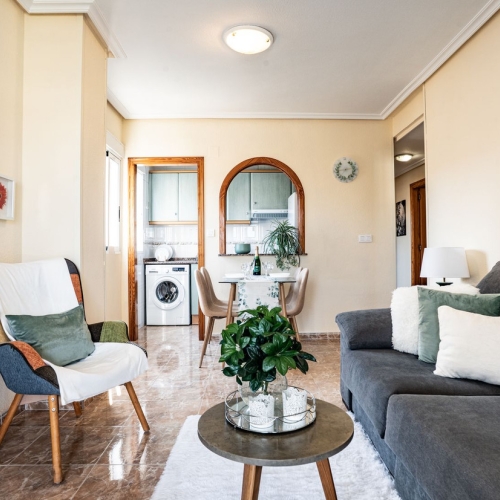 Apartment for sale in Torrevieja, Avenida Villamadrid, a few meters from the beach Bright 65 m² third floor apartment for sale in an excellent location in Torrevieja, on Avenida Villamadrid. Located just 250 meters from the beach, this apartment offers the convenience of being able to walk to the sea, as well as having a south orientation, which guarantees a sunny home throughout the day. The property has two bedrooms, a large bathroom, separate kitchen, living room and two terraces. One of the terraces has access from the living room and the other from the master bedroom, allowing you to enjoy the outdoors in different areas of the house. From the two terraces you can enjoy side views of the sea. The apartment includes air conditioning, and is sold fully furnished and equipped, ready to move into. In addition, it has an elevator in the building for greater comfort. It also has a garage, located on a back street with easy access and excellent entrance to the parking lot. This apartment is ideal both as a permanent residence or as an investment for holiday rentals, given its proximity to the beach and the services in the area. Don't miss the opportunity to visit it!