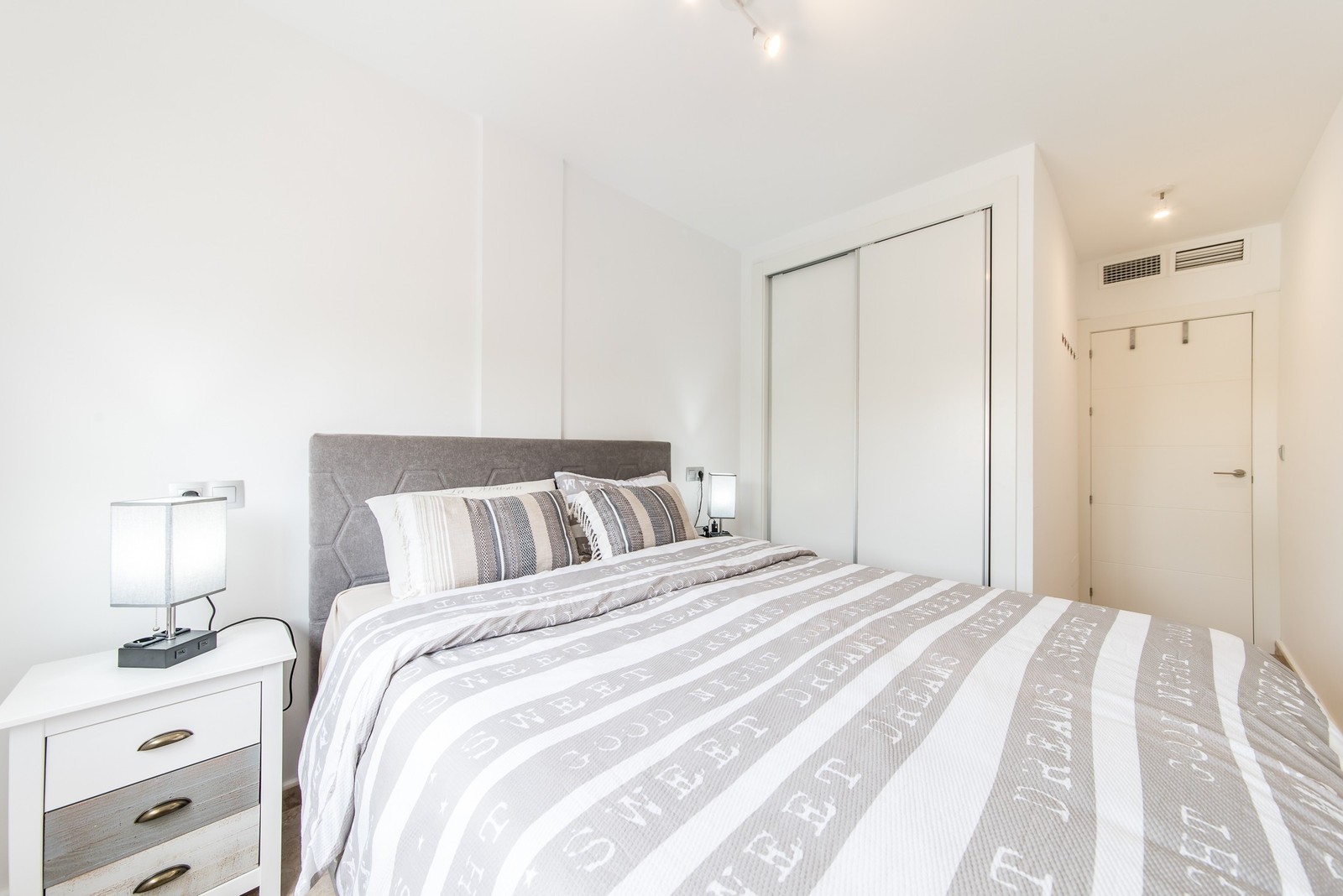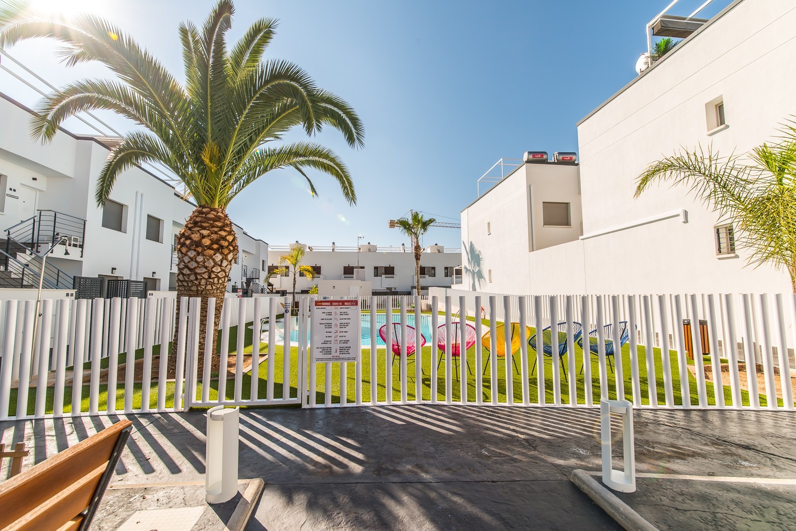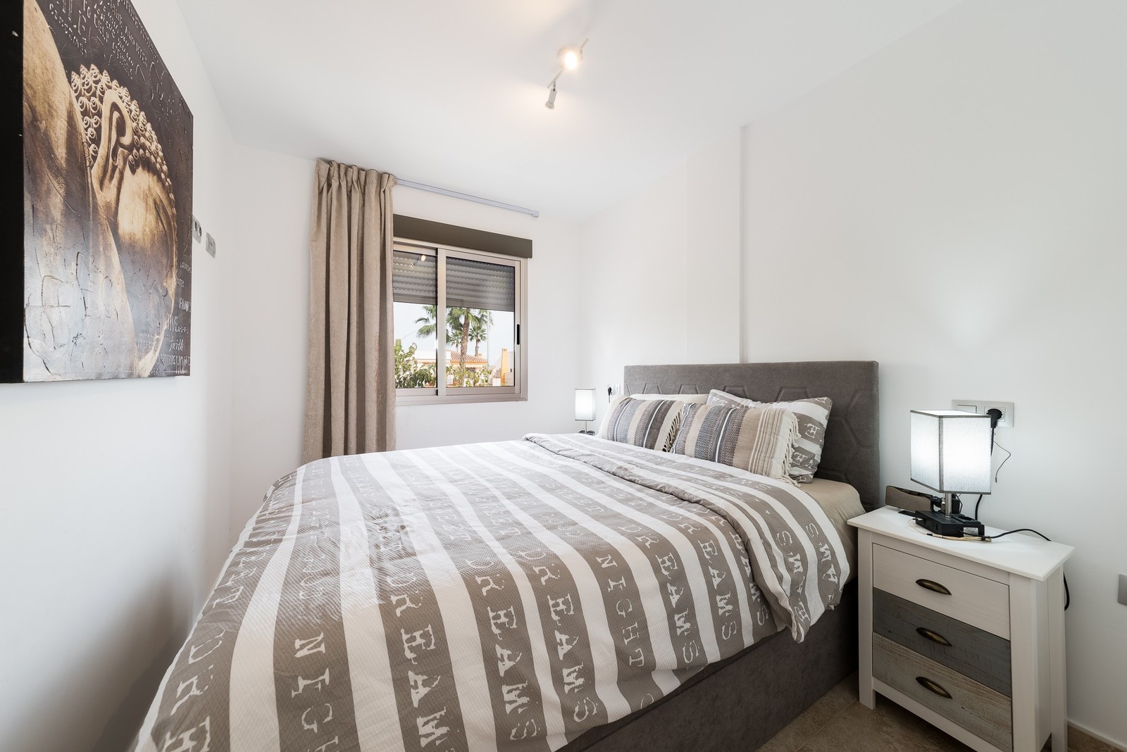 This beautiful corner apartment of 51 m² on the second floor (nr. 16) offers an impressive rooftop terrace with sea views and a clear sight down to the pool area. The apartment has two bedrooms, one bathroom, and is fully furnished with new, modern furniture. There is space for a total of seven sleeping places – two double beds, one single bed, and a sofa bed in the living room. The rooftop terrace is equipped with a complete outdoor kitchen, grill, pergola, and sun shading, perfect for lazy summer days or festive gatherings. Most of the furniture can be included by agreement with the seller. The complex also features a family-friendly pool and a paddle court, providing great opportunities for both activity and relaxation. Location: The apartment is located 500 meters from the beach in the charming fishing village of Pilar de La Horadada, south of Torrevieja. Here, you can explore small, cozy restaurants along the beach, and the grocery store is only 200 meters away. For golf enthusiasts, there are several exclusive golf courses nearby, including Villamartin Golf (10 minutes by car) and an additional seven courses within a short drive, such as Las Ramblas, Campoamor, Las Colinas, and Lo Romero. The distance to airports is convenient – only 25 minutes to San Javier Airport and 40 minutes to Alicante Airport (El Altet). Climate: The area has more than 300 sunny days per year, with a pleasant microclimate that provides mild winters and warm summers. The World Health Organization has classified Costa Blanca as one of the healthiest places in the world to live. Additionally, there is proximity to some of the best marinas in Torrevieja, Cabo Roig, and Campoamor, perfect for those who love sailing and diving. Extra opportunity: The neighboring apartment (nr. 14) is also for sale, which opens up the possibility to ensure that friends or family can be your neighbors. Another option is to buy both apartments as an investment opportunity with potential for value appreciation. Additional information: It is possible to purchase a garage separately for 20,000 euros. The garage is 28.23 m² and has an electric garage door opener as well as a loft providing good storage space. This is an ideal investment whether you are looking for a vacation home or a permanent residence on the Costa Blanca. Contact us today to schedule a viewing!
