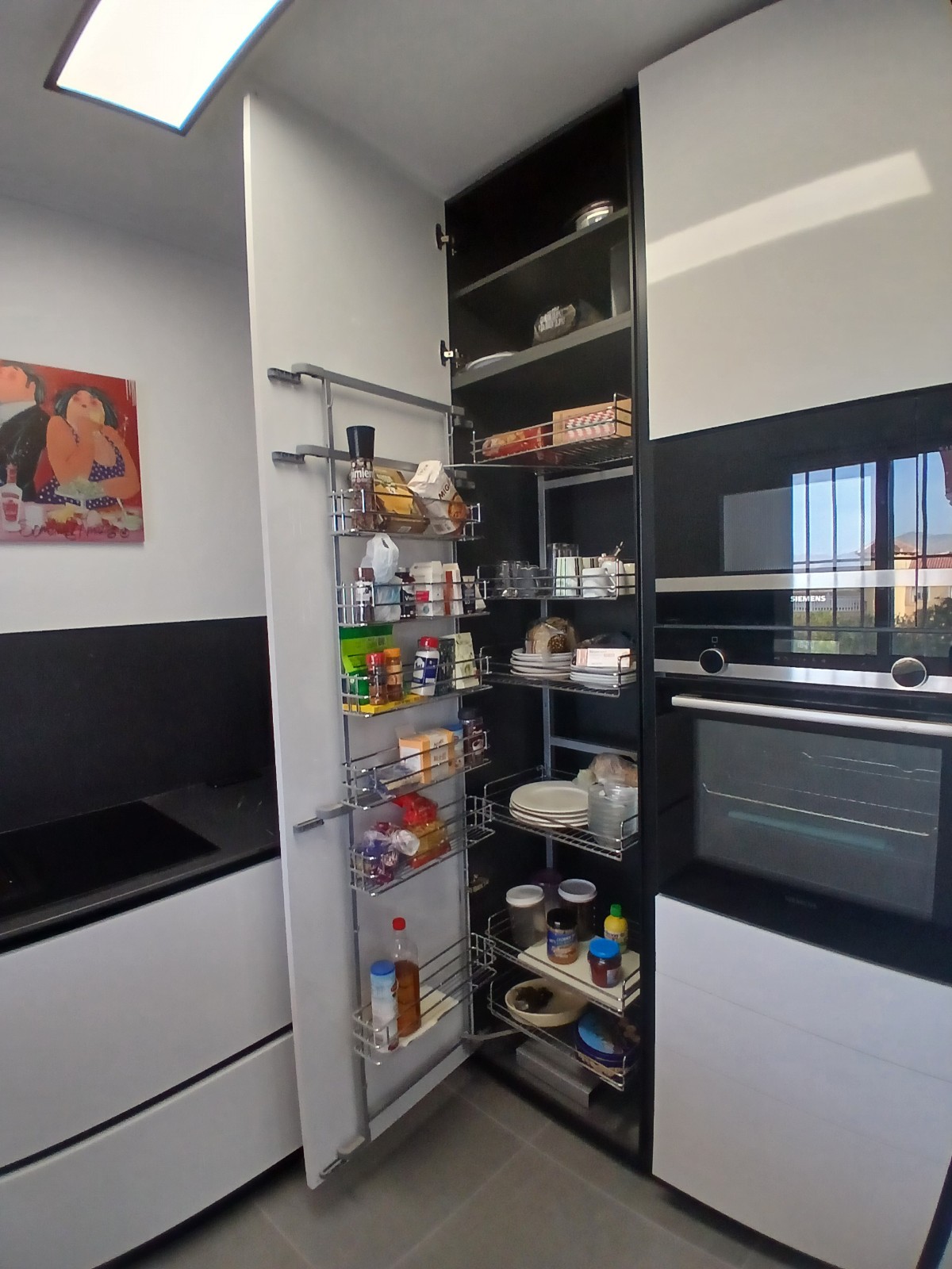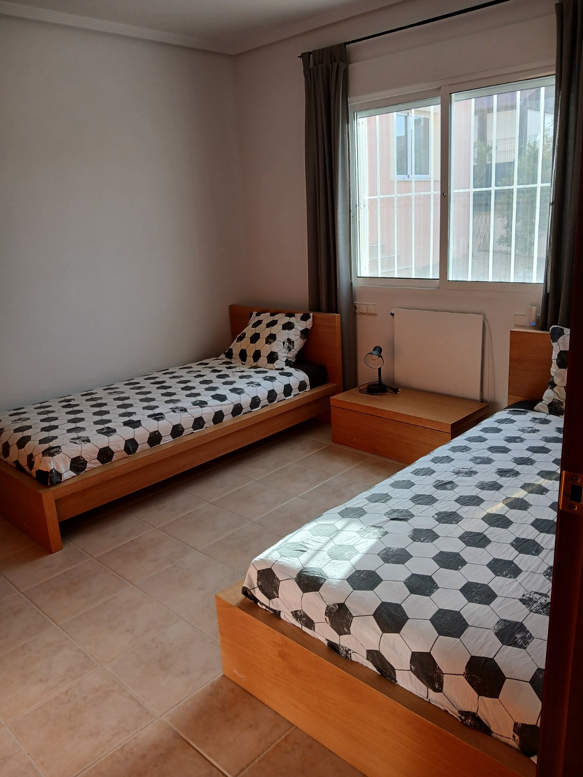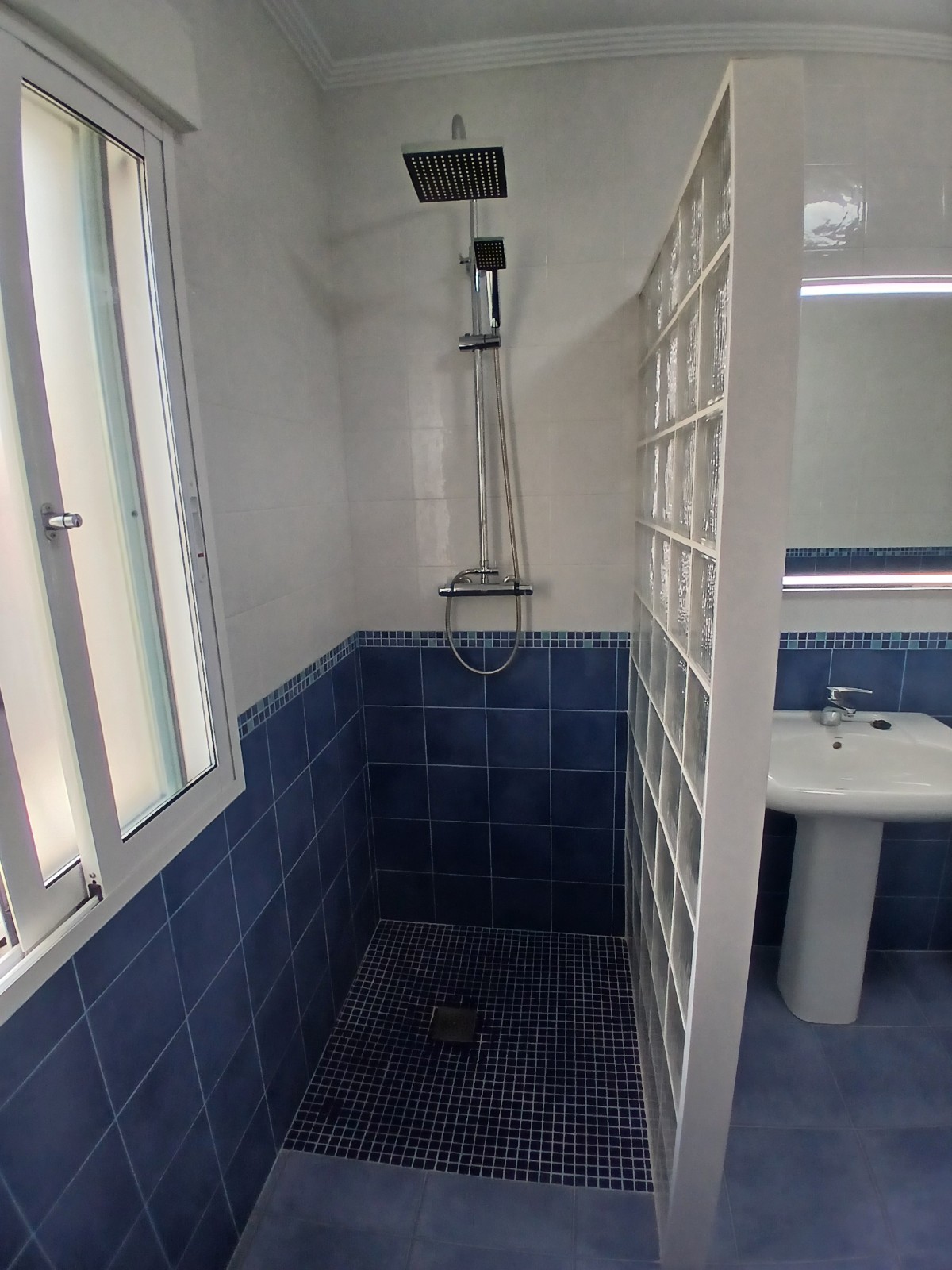 Beautiful detached villa in urbanization in Campos del Rio. In the urbanization of +/- 50 houses live English, Dutch, Belgian, Spanish and French people. The plot of 2000m2 is fully fenced and you have beautiful views of the mountains. You can enter the house through the front door or back door. At the back you enter the house by stairs to a large porch from where you can see the pool and enjoy the view. You then enter the house into the spacious living-dining room of 52.8m2, heated via an 8kw pallet stove installed in December 2023. There is also a gas fireplace, however the gas connection is currently disconnected, this can of course be reconnected. The Formas Cocinas open kitchen of 7.85m2 was installed in February 2023 and is equipped with an oven, microwave, eye-level Siemens dishwasher and large Siemens refrigerator. There are also 3 bedrooms (13.37m2, 13.58m2 and 15.56m2), the largest bedroom has a private bathroom of 6.8m2. The bedrooms have custom-made closets, these remain. There is also a 2nd bathroom with bath of 7.54m2. In the hall by the front door there are also 2 large custom-made wardrobes, these also remain. Next to the pool is a pool house with bar, here is another bathroom, so you don't have to walk through the house with your wet swimwear. Adjacent you will find the in June 2024 newly installed pergola with aluminum slats so you can sit in the shade by the pool. The pool itself was retiled in May 2024 and new lighting was installed. In April 2023, the current owner also had a 35m2 garage built in the same style as the house. You can thus put your car/motorbike/bikes inside.Furthermore, a wooden garden shed of 9m2 for extra storage space was installed in June 2024. The house is powered by 16x 420 watt solar panels with Huawei inverter which were installed in July 2023. The energy costs are therefore only 28 euros per month. The entire house is equipped with air conditioning, double glazing, mosquito nets (May 2023), (mostly electric) shutters, decorative grills (May 2023) and electric heaters. The house is being sold unfurnished. There are no urbanization fees.