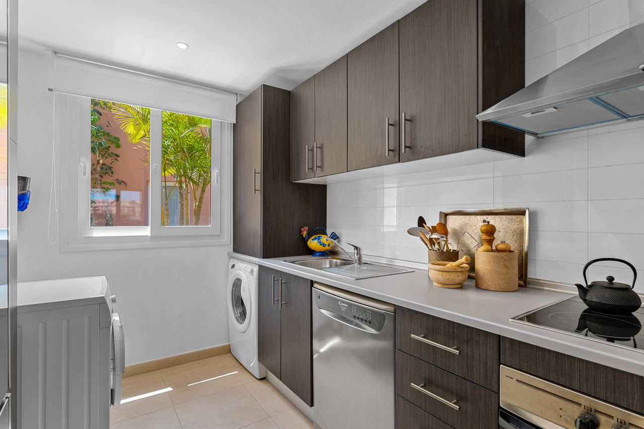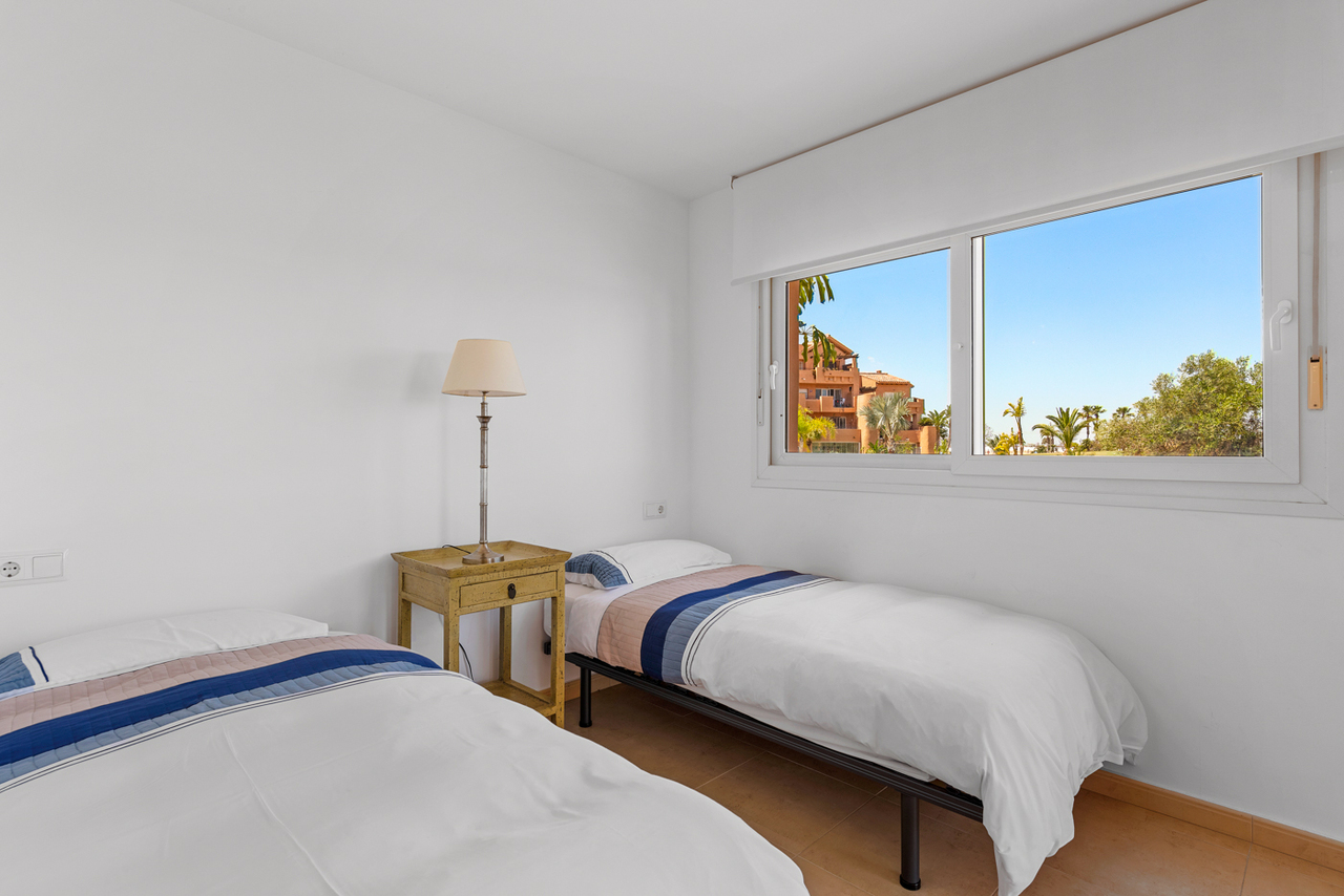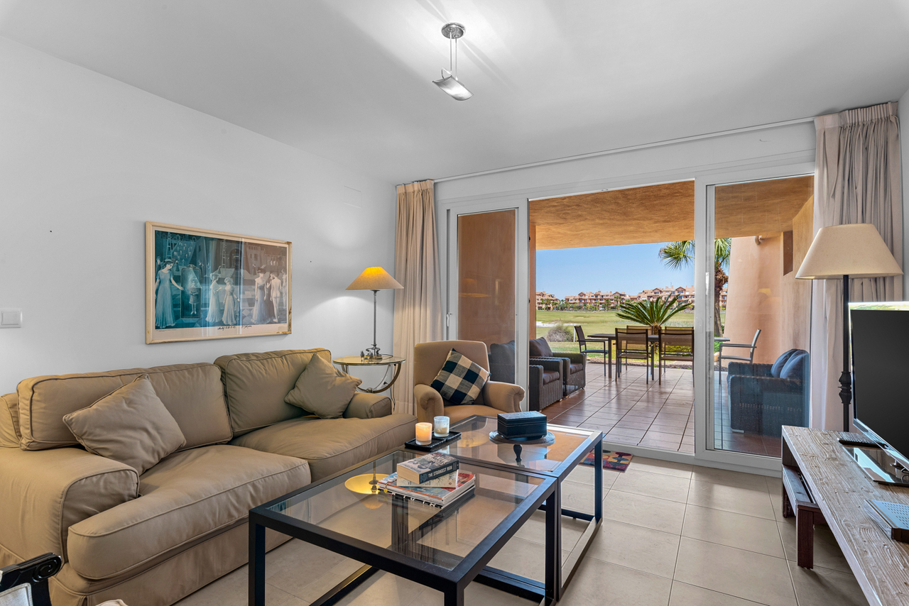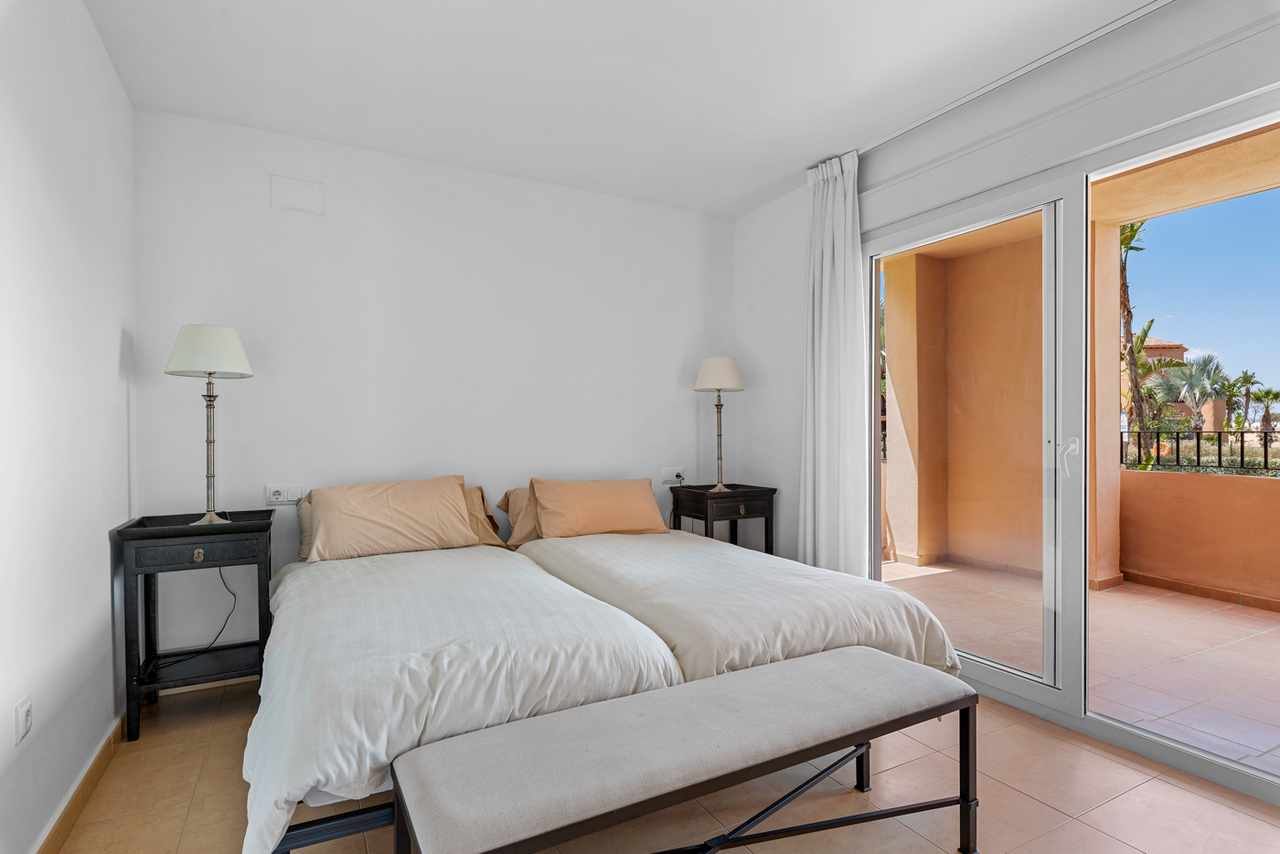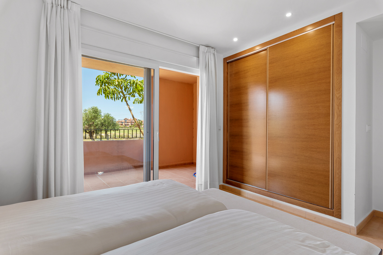 This ground floor apartment is located in an almost paradisiacal environment!A beautiful project on the Mar Menor Golf Resort in Murcia.There are several swimming pools, a restaurant, a golf course and beautifully landscaped gardens/terraces for free use.An underground parking space is included in the price.The layout of the apartment is as follows:Entrance with bright living room with access to the private terrace with open views of the grounds with beautifully landscaped gardens with golf and swimming facilities. A semi-open fully equipped kitchen, 2 bathrooms, 3 spacious bedrooms with fitted wardrobes and each with their terraces!Here you can completely relax!EXTREMELY CAREFUL AND CLEAN ENVIRONMENT! INSTANT HOLIDAY FEELS!FURNITURE INCLUDED IN THE PRICE! (excluding works of art and paintings)GREAT OPPORTUNITY!!!!!+/- €180/month common costs