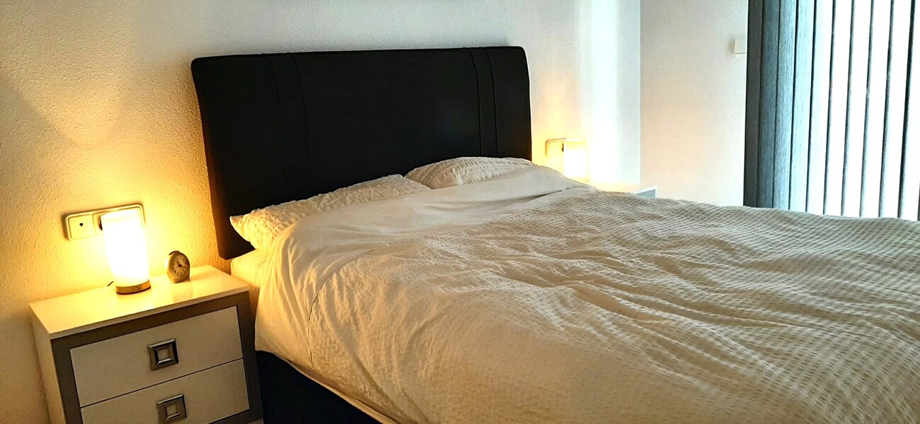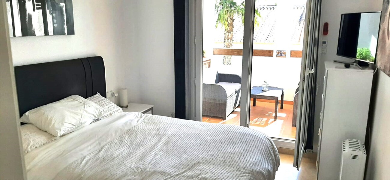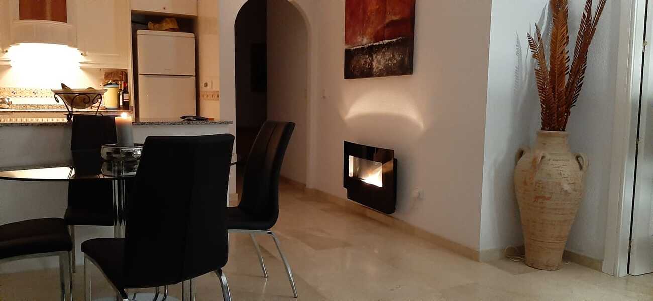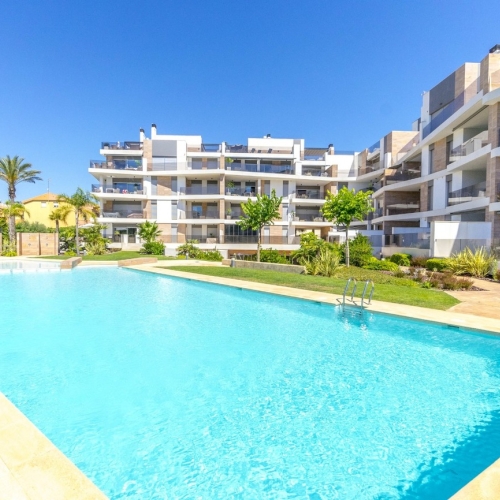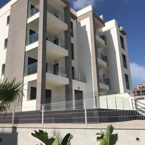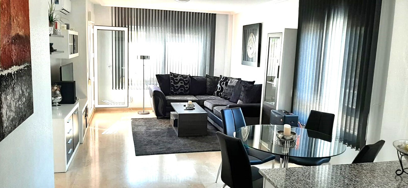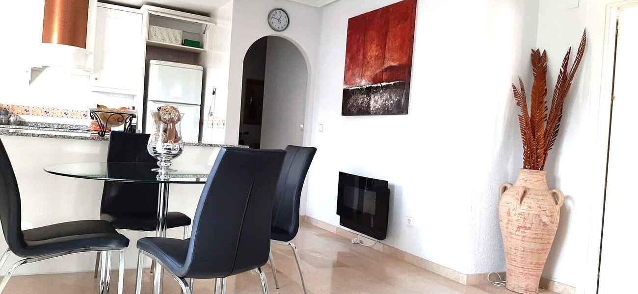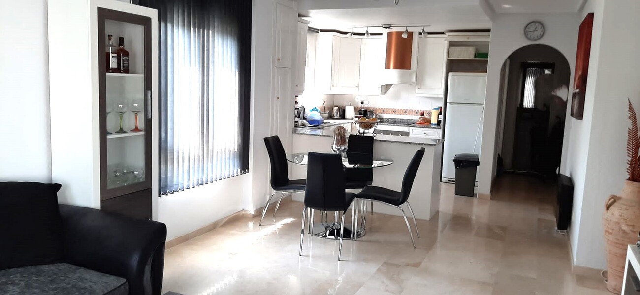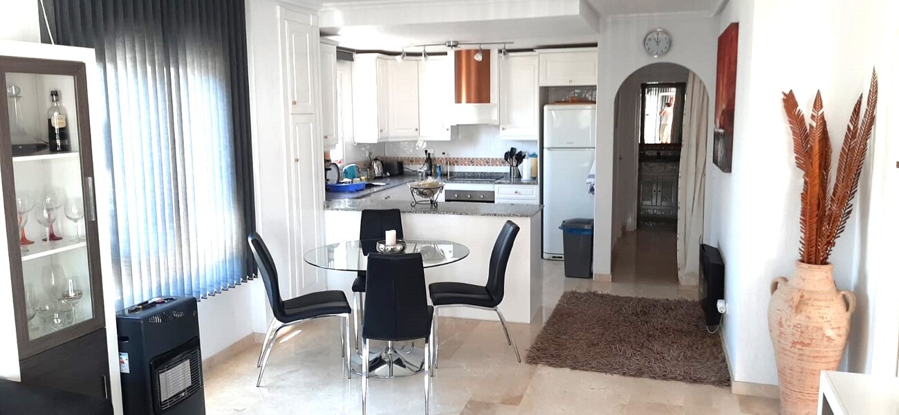 Stunning Top Floor corner apartment situated on the popular urbanisation of Las Violetas. Offering views from the large lounge and terrace. Situated on a gated complex close to Villamartin plaza and all the local amenities and Villamartin golf course. This apartment offers a spacious open plan kitchen, leading to the beautifully furnished lounge and a covered terrace where you can sit and enjoy a cooling drink and tapas. Both bedrooms offer built in wardrobes with an en-suite on the master bedroom. There is a family bathroom with a bath and shower. There is a large communal rooftop solarium. A Fantastic apartment for holiday and winter sun with lift access.