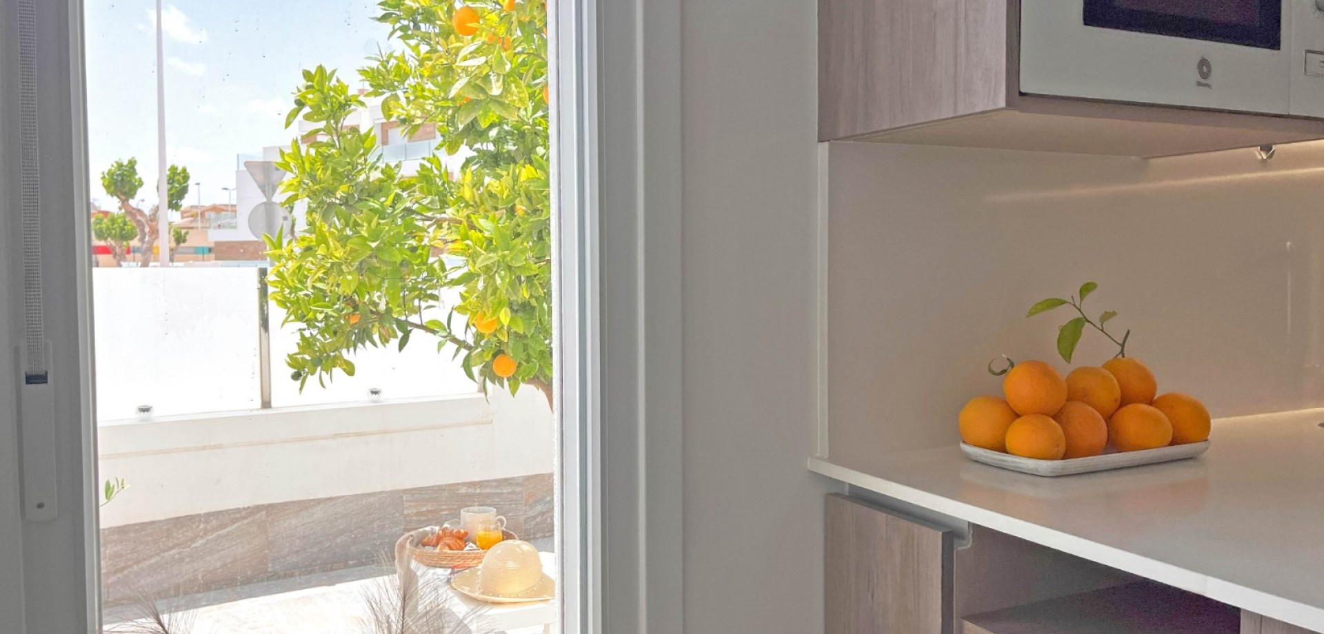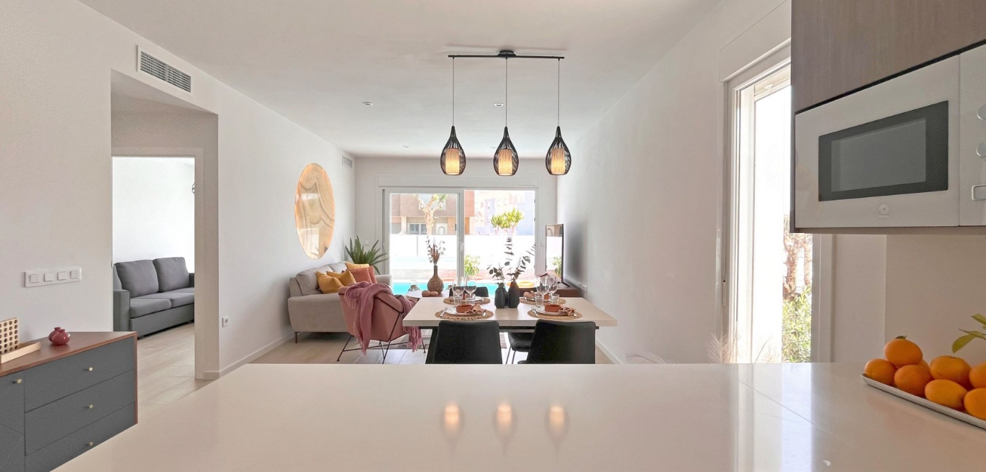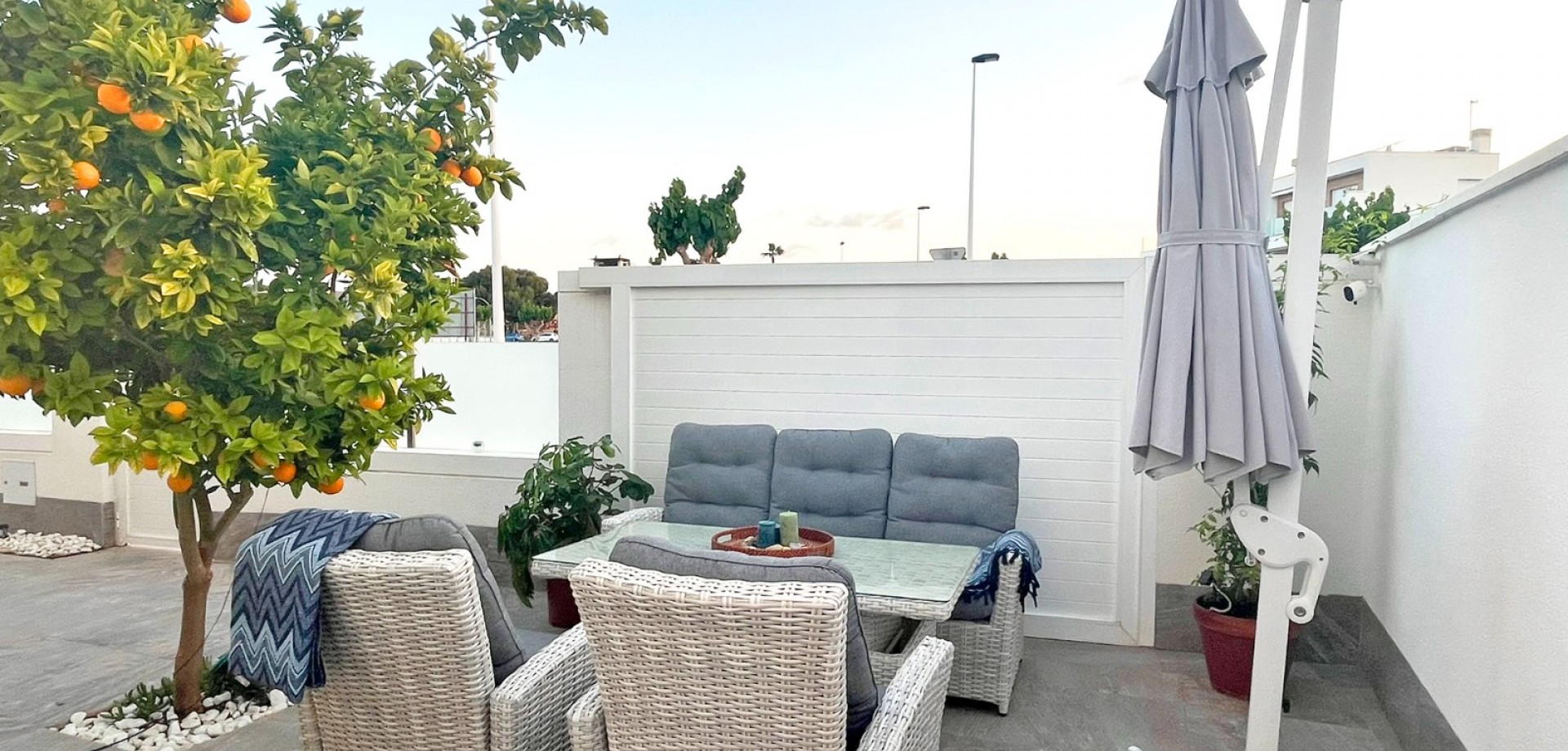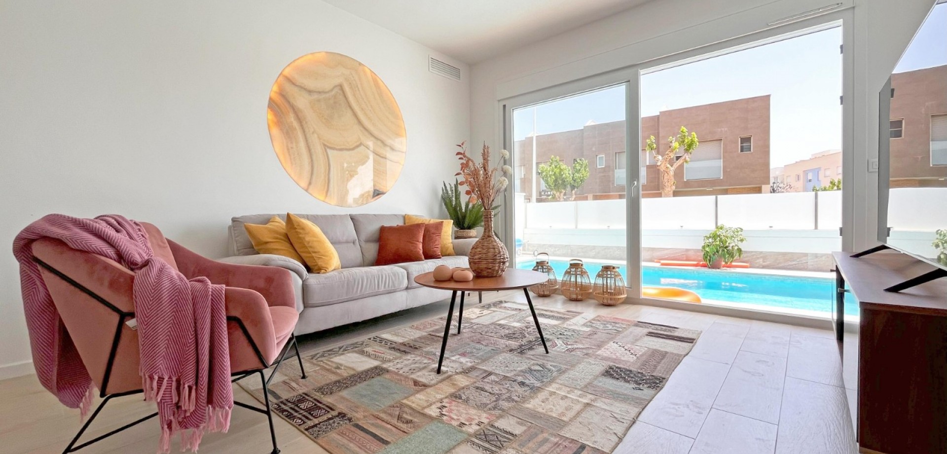 Property Overview Discover the epitome of modern luxury in this detached corner villa, centrally located in the vibrant town of San Pedro del Pinatar, Murcia. This stunning property combines contemporary design with top-of-the-line amenities, offering a sophisticated and comfortable lifestyle for discerning buyers. Key Features 4 Generously Sized Bedrooms: Each bedroom offers ample space, natural light, and thoughtful design for maximum comfort.3 Stylish Bathrooms: Featuring contemporary fixtures and fittings, these bathrooms provide a spa-like experience at home.Private Heated Pool: Enjoy the luxury of a heated pool, perfect for year-round swimming and relaxation.Ample Parking: Convenient and secure parking space, ensuring easy access and peace of mind.Fully Tiled Terrace: This elegant outdoor space is perfect for entertaining or simply relaxing in the Mediterranean sun.Expansive Solarium: A private rooftop retreat offering stunning panoramic views, ideal for sunbathing or evening gatherings.Central Location: Situated in the heart of San Pedro del Pinatar, close to beaches, shops, restaurants, and local attractions. Interior Distribution Ground Floor: Open-Plan Living Room: A spacious and inviting living area with large windows that flood the space with natural light, seamlessly connecting the indoors with the outdoor terrace and pool area.Dining Area: Adjacent to the living room, the dining area provides a perfect setting for family meals and entertaining guests.Modern Kitchen: Equipped with state-of-the-art appliances, sleek cabinetry, and ample counter space, this kitchen is a chef's dream.One Bedrooms: A well-appointed bedroom on the ground floor, offering versatility for guests, family members, or use as a home office.One Bathroom: A stylish bathroom with modern fittings, conveniently located to serve the ground floor bedrooms and living areas. First Floor: Two Additional Bedrooms: Two spacious bedrooms on the first floor, each designed with comfort and style in mind.Large Balcony: Accessible from the bedrooms, this balcony offers a serene space to enjoy morning coffee or unwind in the evening.One Bathroom: A contemporary bathroom with high-end fixtures, serving the first-floor bedrooms. Second Floor: Master Suite: A luxurious master bedroom with an en-suite bathroom, providing a private haven for relaxation and rest.En-Suite Bathroom: Featuring elegant fixtures and a sleek design, this bathroom offers a tranquil retreat within the master suite.Large Solarium: The expansive rooftop solarium is perfect for soaking up the sun, entertaining, or simply enjoying the breathtaking views. Outdoor Space Heated Pool: The centerpiece of the outdoor area, this private heated pool is perfect for swimming, relaxation, and entertaining.Fully Tiled Terrace: An elegantly designed outdoor space that extends the living area, ideal for dining al fresco or lounging by the pool.Ample Outdoor Space: Thoughtfully designed to provide multiple areas for relaxation, dining, and entertainment, all while enjoying the beautiful Mediterranean climate. Extras Suite at top floor, fruit trees, underfloor heating in kitchen, living room & bathrooms, pool heater + cover, outdoor shower, pre installation for outdoor kitchen, extended pool 7 x 3 m, water filter, lighting package, door between kitchen & storage. This villa is more than just a home; it is a statement of modern luxury and convenience. Perfectly suited for those seeking a blend of sophisticated design and prime location, this property offers everything you need for an exceptional living experience. For more information or to schedule a viewing, please contact us today.