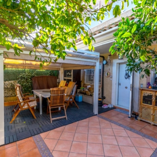 This unique townhouse is 164 m2. It is over 2 levels and has 5 bedrooms and 2 bathrooms and 1 toilet.There is a large living room with fireplace, a kitchen with dining area, laundry room, sauna and several storage rooms.The special thing about the property is that it has a private pool, several large terraces and outdoor areas as well as very good sun conditions.There is also a communal pool area in the urbanization.The home is sold furnished, with appliances and air conditioning.Contact us for more information and a viewing.Price: 399,000 euros + costsFacts:Area: 164 m25 bedrooms3 bathroomsFurnishedWhite goodsCommunal poolPrivate poolSaunaLaundry roomStorage room2 floorsAir conditioningYear of construction: 1986Property tax: 301 euros per yearCommunal costs: 425 euros per yearEnergy certificate: E