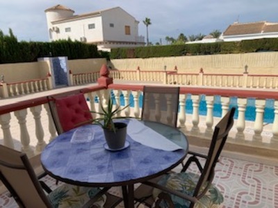 For sale: beautiful 3 bedroom villa in the sought after area of San Luis, Torrevieja. This property features a spacious kitchen, a cozy living room, and a separate dining room. Enjoy the luxery of a private 10x5 meter swimming pool, perfect for relaxing and cooling off. The 800 m2 plot offers ample outdoor space, ideal for gardening, sunbathing or outdoors activities. Situated in a quit and popular area, close to amenities such as shops, restaurants and beaches. Perfect as a permanent home or holiday home!