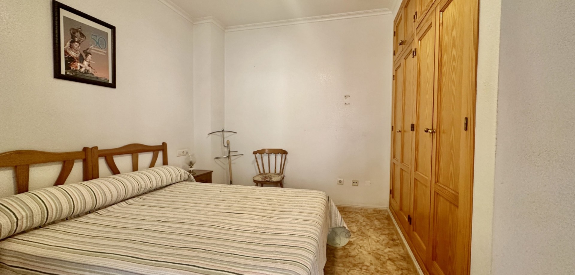 Welcome to this charming and well-maintained apartment located in the heart of Torrevieja, just a short 2-minute walk from the beautiful Mediterranean coast. A perfect opportunity for those looking to enjoy beachside living, use as a holiday home, or invest in a rental property. Inside, the apartment features a bright and comfortable living room, complete with direct access to a spacious covered terrace — ideal for relaxing, dining, or enjoying the sea breeze. The semi-open kitchen connects through a Mediterranean-style arch, adding character and functionality. The property includes 2 bedrooms and 1 bathroom, all on one level. Both bedrooms are spacious and offer built-in storage options, with one of them leading directly to the terrace. The home is offered fully furnished and ready to move in. Key Features: 2 bedrooms1 bathroomComfortable living room with natural lightSemi-open kitchenSpacious terrace with storageFully furnished2 minutes’ walk to the beachClose to supermarkets, cafés, restaurants, and promenadeGreat rental investment potential