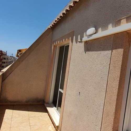 Penthouse 450 metres from the beach – bright, functional and in an excellent location This cosy penthouse is located just 450 metres from the beach, an ideal opportunity for those who want to enjoy the Mediterranean climate and coastal life without sacrificing the convenience of having all amenities within easy reach. Its privileged location allows you to walk to supermarkets, restaurants, pharmacies, schools and public transport stops, making it a perfect choice for both a permanent residence and a holiday home or investment. The property has a practical and comfortable layout, designed to make the most of every space: A good-sized living-dining room, located just inside the entrance, equipped with air conditioning, offering a cool and pleasant atmosphere during the warmer months. A separate, fully functional kitchen with direct access to the terrace, facilitating ventilation and communication with the outside. A large private terrace, ideal for enjoying al fresco dining, sunbathing or relaxing in complete privacy. Two double bedrooms, one of which, the master bedroom, has air conditioning installed for greater comfort. Full bathroom, in good condition and perfectly laid out. Thanks to its north-facing orientation, the property stays cool during the summer, avoiding excessive heat, which makes it particularly comfortable for those seeking a balanced temperature throughout the year. The building also has a communal solarium, a perfect space for sunbathing, enjoying the panoramic views or relaxing in a peaceful atmosphere. In short, this penthouse combines location, comfort and functionality, offering everything you need to enjoy life by the sea. Its proximity to the beach, the surrounding area with all amenities and its good condition make this property an excellent opportunity to buy, both for living and for investment.