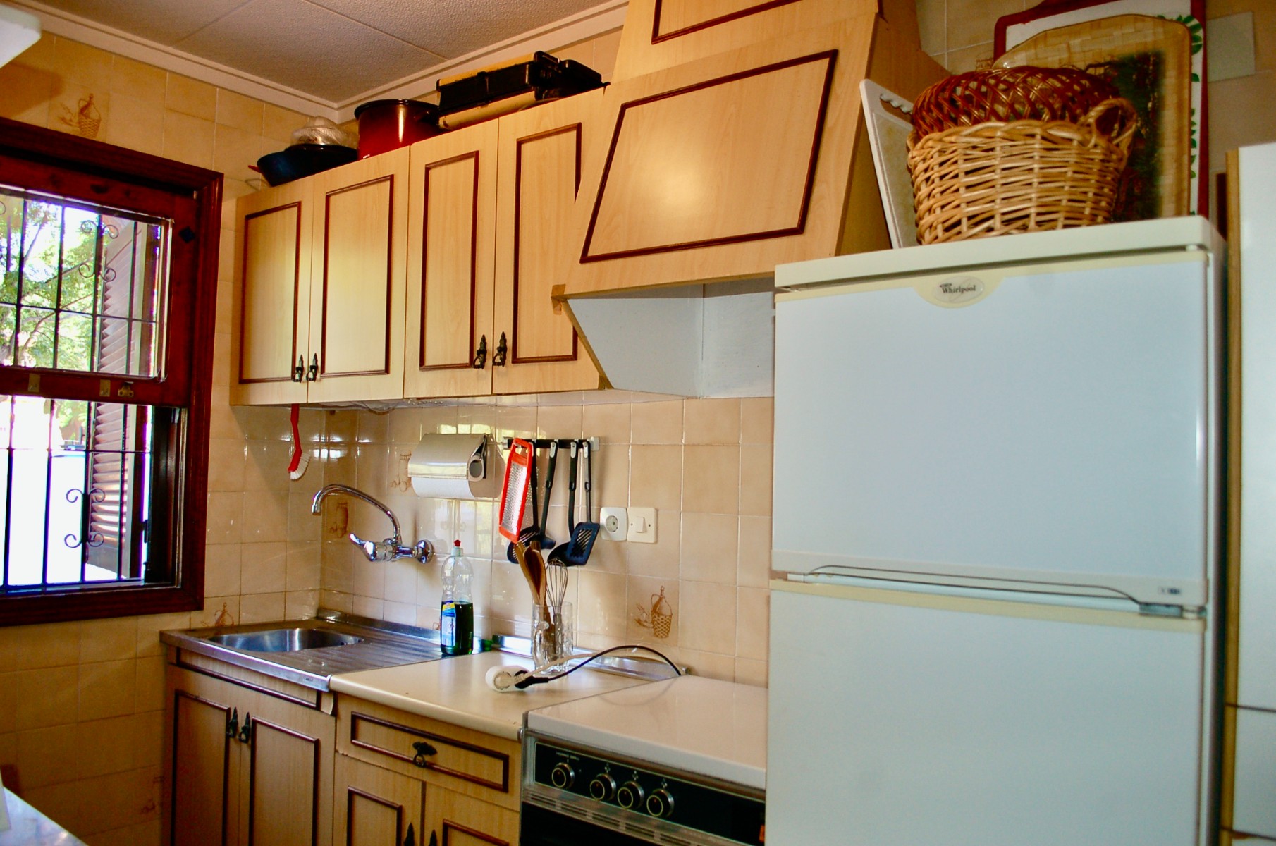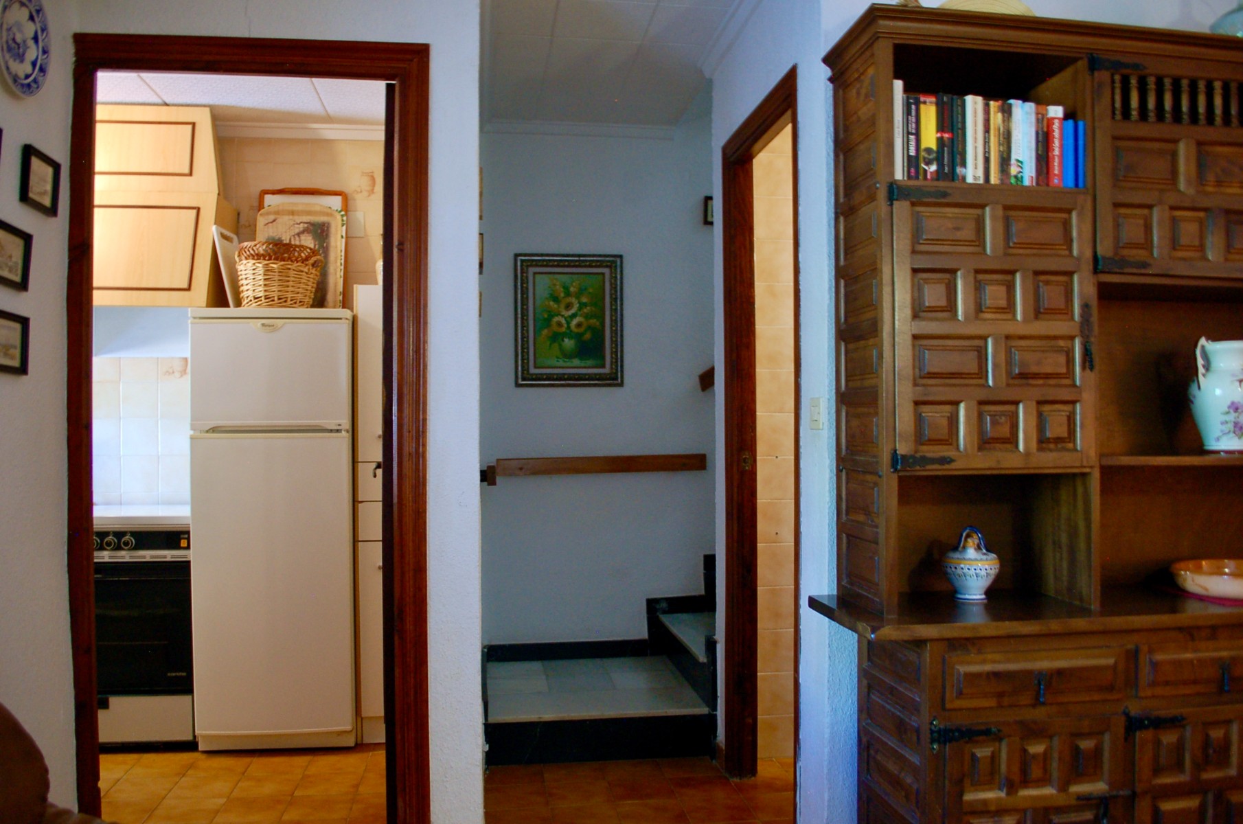 Only 50m from the sea you will find this Townhouse in Mil Palmeras, with 2 bedrooms and 2 bathrooms and separate studio/apartment. The ground floor contains a living room, a kitchen, a WC and a covered terrace. On the first floor two bedrooms, spacious bathroom and storage room. Apartment on the 2nd floor with separate kitchen, bathroom, bedroom and connecting terrace. With some refurbishment work, it could be updated into a modern home. Within walking distance of the charming pedestrian walkway 'la peseta' with its shops, bars and restaurants…. Playa Mil Palmeras, playa Jesuítas and playa del Conde with its marina, the new commercial center 'Plaza Nueva' with various shops, restaurants and various services. Both the commercial center Dos Mares and Zenia boulevard are only 10 km away. Easy access from the N332 and the AP7 motorway. Murcia-Corvera airport just 50km…, Alicante airport just 70km.
