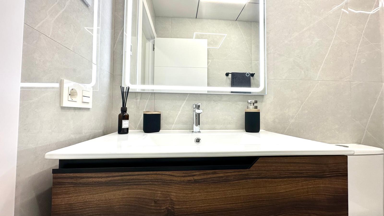 Spectacular renovated ground floor apartment next to Playa del Cura beach Located on the second line of the iconic Playa del Cura beach, this property represents a unique opportunity to enjoy comfort, design and proximity to the sea. With a total usable area of 90 m², this fully renovated ground floor apartment perfectly combines modernity, comfort and quality in every detail. From the outset, the property stands out for its excellent comprehensive refurbishment, where every aesthetic and functional aspect has been carefully considered. The property is delivered fully furnished and decorated in a modern and elegant style, using top-quality materials. All the furniture is new, as are the appliances, allowing you to move in without the need for any additional investment. The interior layout is spacious and well thought out. It has a cosy open-plan kitchen, equipped with contemporary furniture and connected directly to a bright open-plan living-dining room. This main room faces south, ensuring excellent light throughout the day. It also has a large panoramic window equipped with electric blinds, allowing you to enjoy natural light and the Mediterranean breeze in complete comfort. Comfort is assured thanks to its centralised air conditioning system with ECO technology, which guarantees an ideal temperature throughout the year while optimising energy consumption. The sleeping area consists of two spacious double bedrooms, both tastefully decorated and designed to offer maximum tranquillity. The master bedroom has an en-suite bathroom, providing privacy and functionality. The second bathroom, equally modern and fully equipped, serves the rest of the property. As an ideal complement, the property has a fabulous back garden, a perfect outdoor space for relaxing, enjoying family gatherings or creating a green and peaceful corner in the heart of the city. In short, this property combines all the qualities that define an exclusive home on the coast: an unbeatable location, high-quality materials, modern fittings and a design focused on comfort. Located just a few metres from the sea, it is an ideal choice as a permanent residence, holiday home or secure investment in one of the most sought-after areas of Torrevieja.