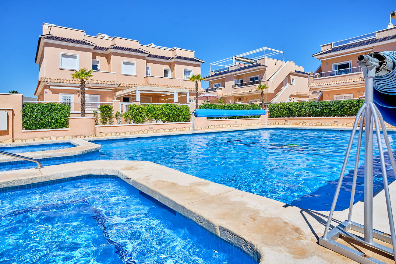 Ground floor apartment with neighbours above, in Lomas de Cabo Roig.With 65 m² built, spacious and bright living room with French kitchen, 2 bedrooms, 2 bathrooms and 2 terraces, one facing east and the other west, allowing you to enjoy the sun all day long.Air conditioning, central heating, fitted wardrobes, fully furnished and equipped, sold according to inventory.The complex offers two communal swimming pools, one heated and one standard.Parking is in the basement and has a lift.A parking space and storage room are included in the price.The area has numerous restaurants, shops, golf courses and amenities. The beach is 8 minutes away by car. An ideal option to live comfortably in a beautiful place.Construction year 2017Expenses: IBI apartment: €192.78 per yearIBI garage: €37.94 per yearCommunity: €156.56 apartment per quarter€17.28 garage per quarter