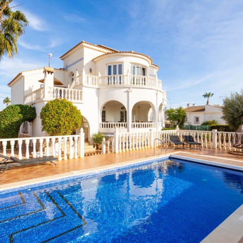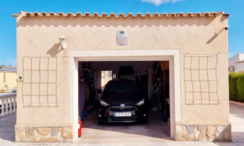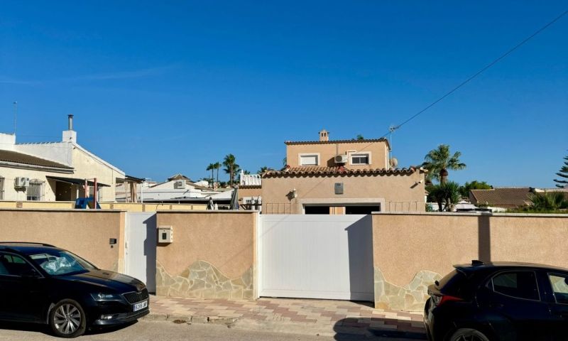This spacious 5-bedroom, 3-bathroom villa offers 190 square meters of living space on a 500 square meter plot, perfect for families or those looking for extra space. The ground floor features a cozy living room, a kitchen, 2 bathrooms and 4 bedrooms, providing ample space for daily living.Upstairs, with its own private entrance from the garden, you will find a cozy living room, a kitchen, 1 bathroom and 1 bedroom with direct access to a solarium overlooking the pool, perfect for guests or an extended family.The property also includes a private garage, a swimming pool and a storage room. Located close to all amenities, it offers the convenience of nearby shops and restaurants, while being just a short walk from both the salt lake and La Mata Natural Park, combining peaceful nature with everyday convenience.