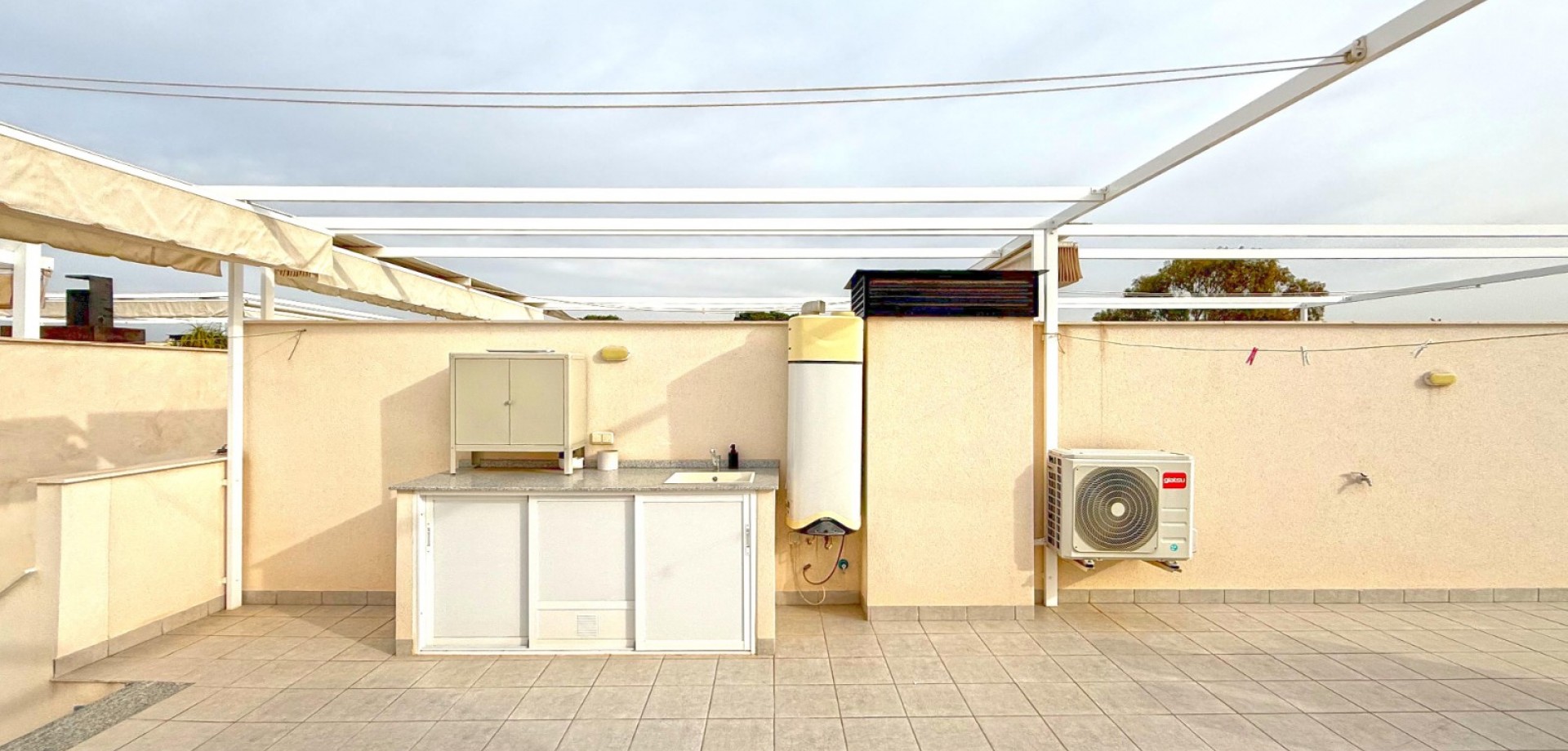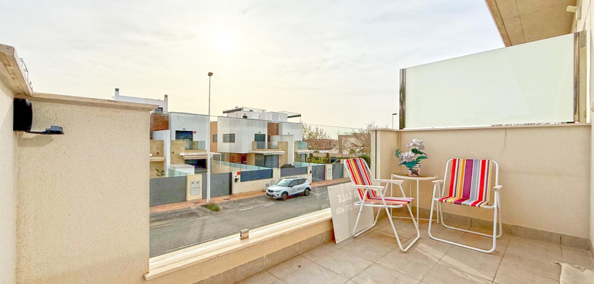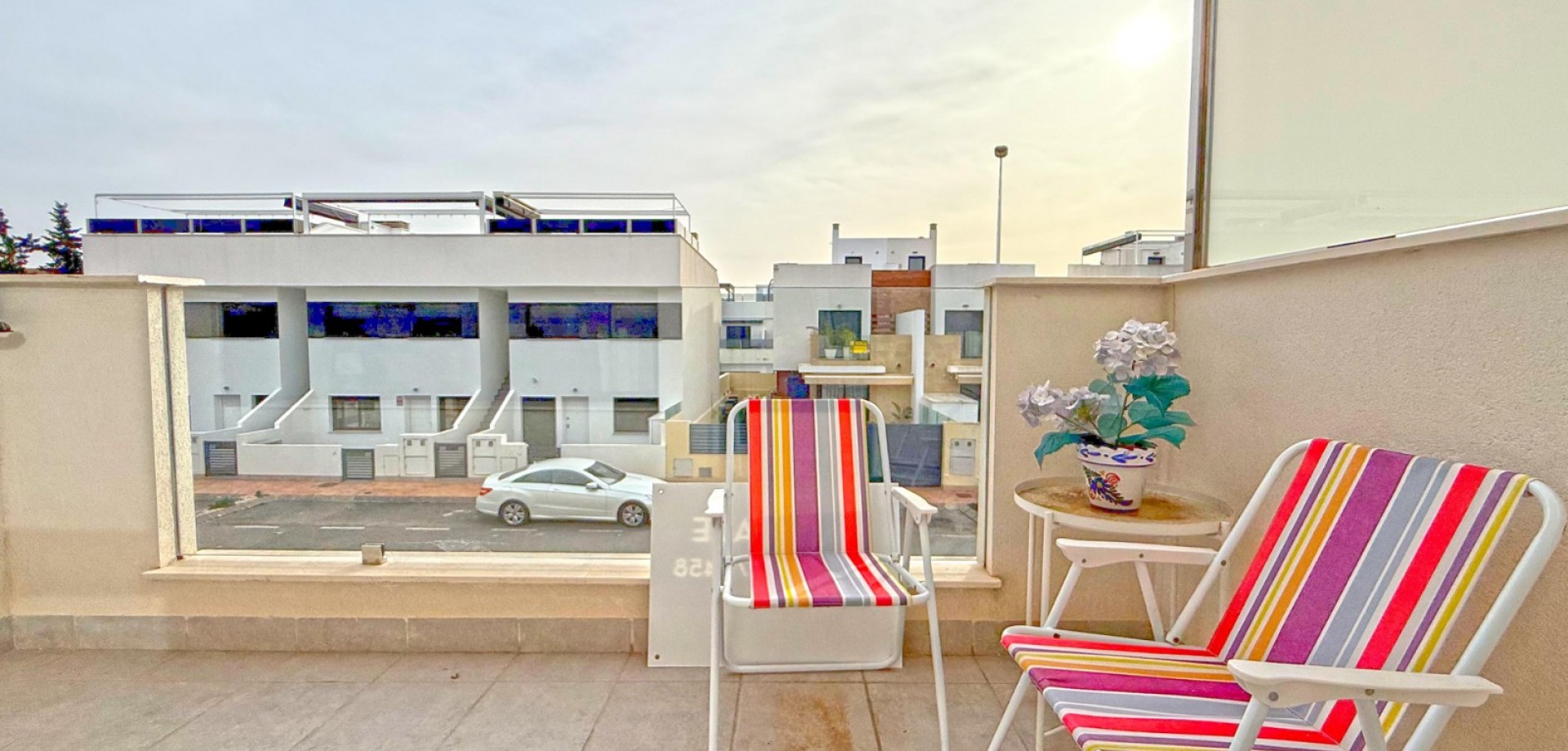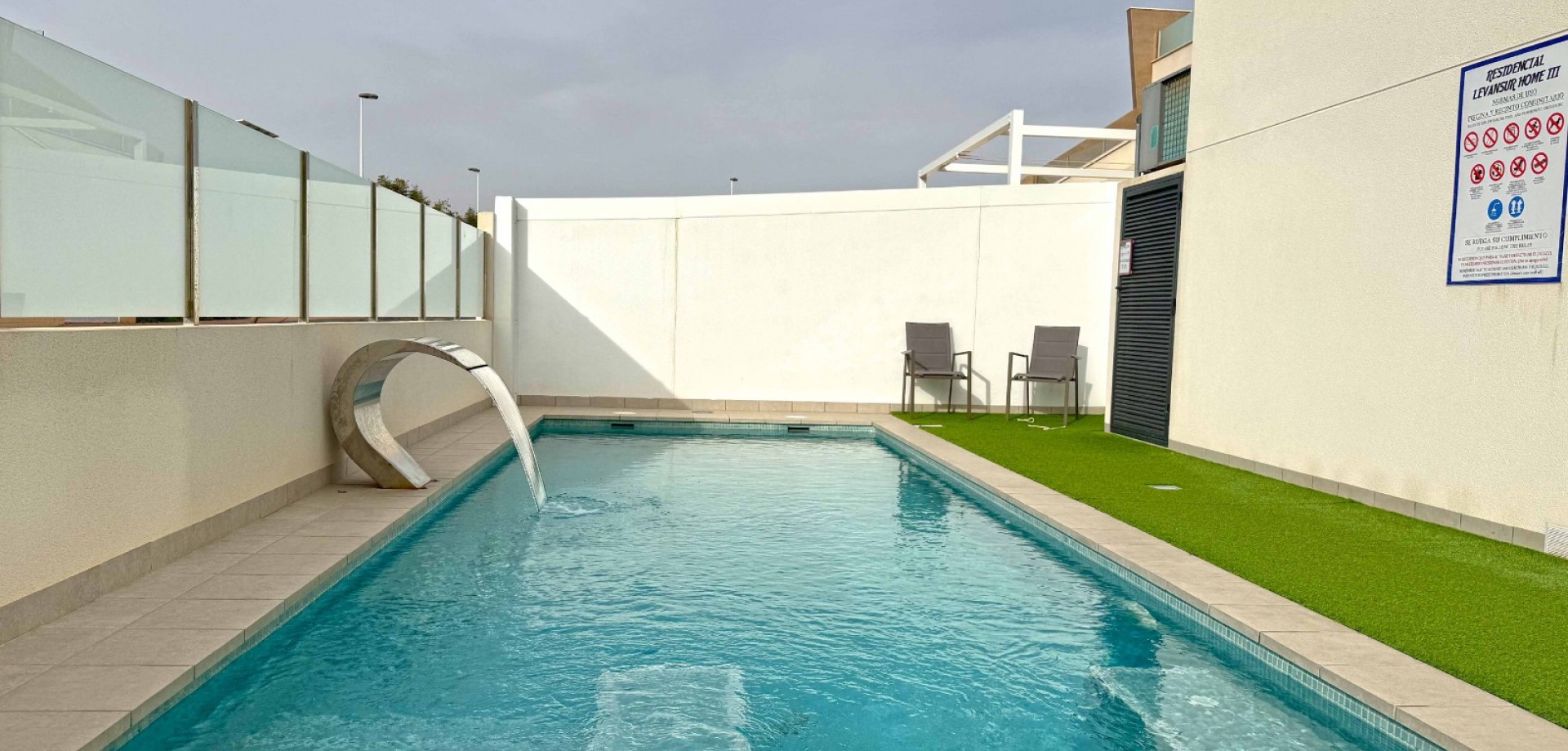 Discover this stunning, recently built top-floor apartment in the sought-after area of Lo Pagán, San Pedro del Pinatar. With its contemporary design and excellent location, this property is perfect for those seeking a stylish home close to the beach. Key Features: 2 Bedrooms & 2 Bathrooms: Includes a spacious master bedroom with an en-suite bathroom and a second bedroom ideal for guests or family. Both bathrooms are finished to a high standard with modern fittings.Private Outdoor Spaces: Enjoy your morning coffee on the sunny balcony or entertain friends on your expansive private roof terrace, perfect for relaxing under the Mediterranean sun.Fully Furnished: The apartment comes tastefully furnished, so you can move in and start enjoying your new home right away.Communal Heated Pool: Take a dip year-round in the beautifully maintained communal heated pool, surrounded by lush landscaping.Prime Location: Situated within walking distance to the pristine beaches of Lo Pagán and close to local amenities, restaurants, and shops. This property offers the ideal blend of comfort and convenience, perfect as a holiday retreat or a permanent home. Don’t miss this opportunity to live the coastal dream!