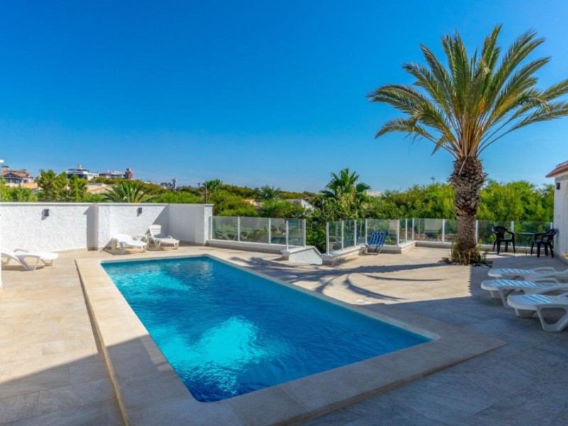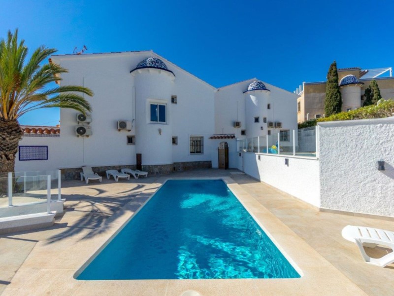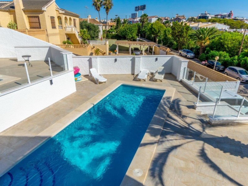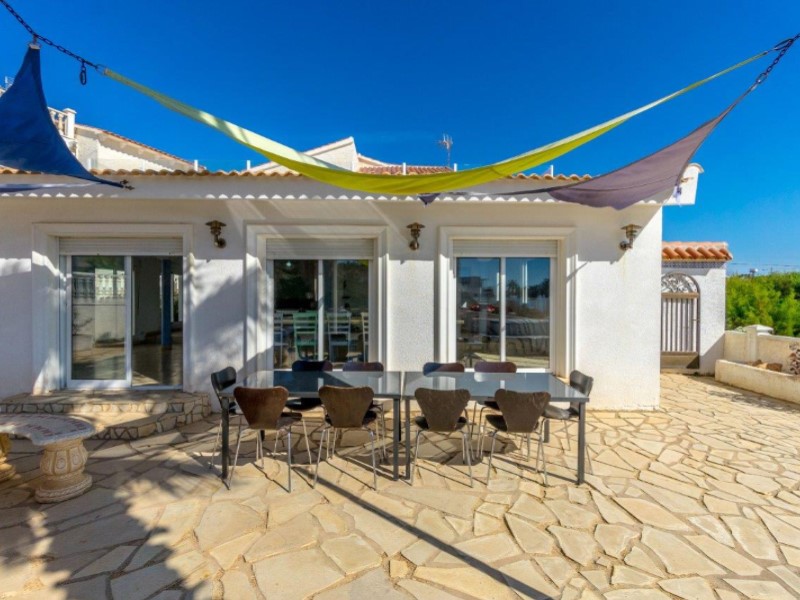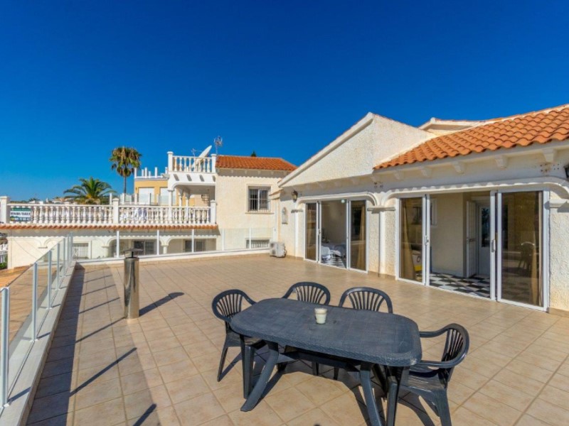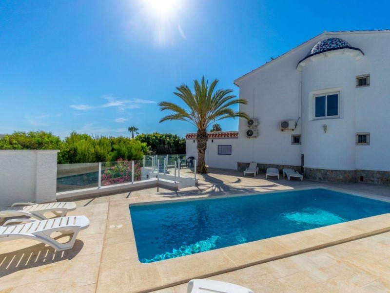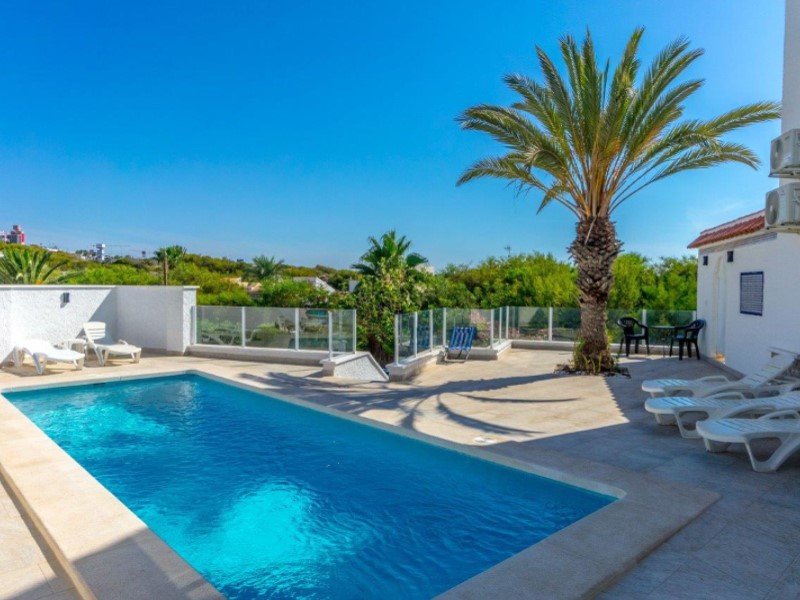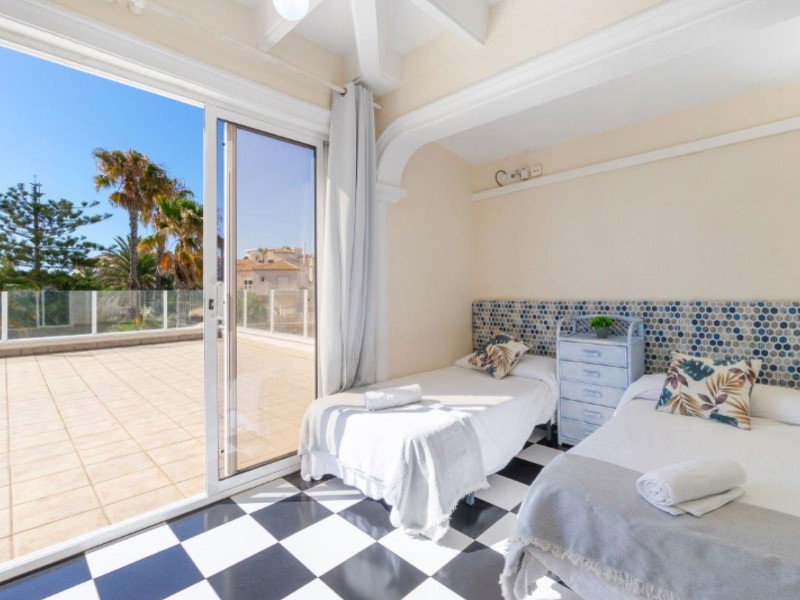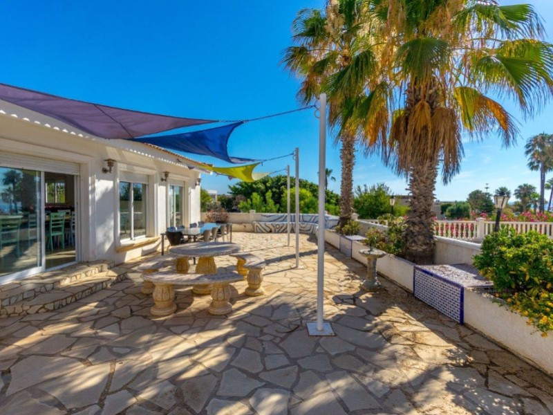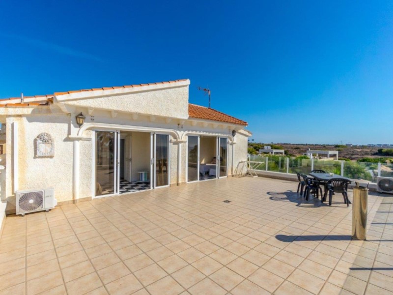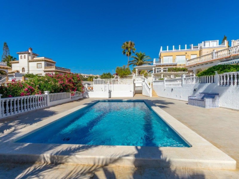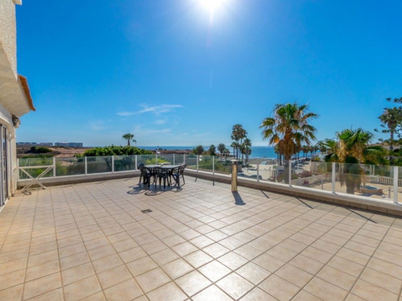 Welcome to this fantastic Spanish Mediterranean Style with a modern twist beach front villa in Playa Flamenca, Orihuela Costa!This fantastic property is in a privileged area that many people dream of living in, as it is only less than a minute's walk to the beach, providing you with easy access during the summer months. It is also very close to other amenities such as: shops, bars, and restaurants to name a few.It has a beautiful promenade for lovely walks with amazing views Golf enthusiasts can enjoy the many fantastic golf courses the area has to offer, all within a 20-minute drive.The villa itself sits on a large plot that has a large front terrace with magical sea views and a private pool in the rear part of the property for you to enjoy.The villa consists of 3 bedrooms, 3 bathrooms and has a fully fitted kitchen as well as other spectacular features such as, 2 lounge areas, numerous terraces, and a barbecue area, making this villa a fantastic hub for entertainment. The owner of the property has renovated the bathroom with a modern Mediterranean twist and has installed a brand-new pool on the premises. This property also has a common area that is available that also has a pool for its residents to enjoy (with an agreement from the owner to share maintenance costs).This property is a great investment opportunity as the villa next door is also for sale by the same owner and has great rental potential as the owner has rented it out for many years with great success. It can fit up to 14 people and can bring in a very nice income for you .