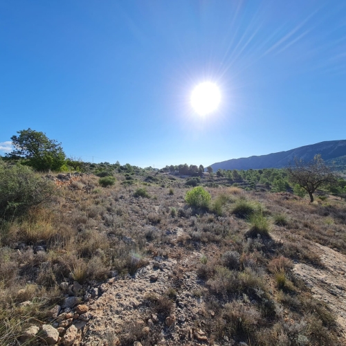 The plot is situated along the road known as Camino del Hondón, in the lower part of the route, with easy access via a rural, unpaved road. The terrain offers stunning mountain views, complete privacy, and an exceptionally favorable orientation that provides sunlight throughout the day.