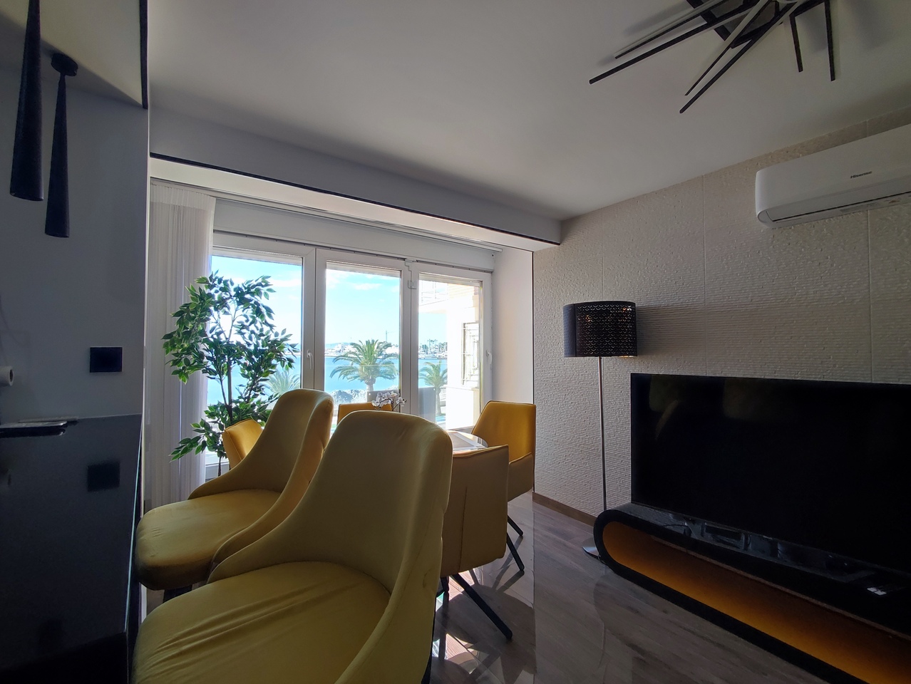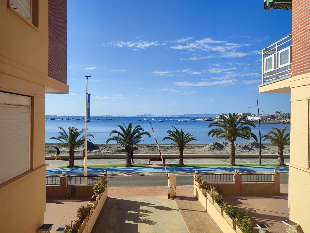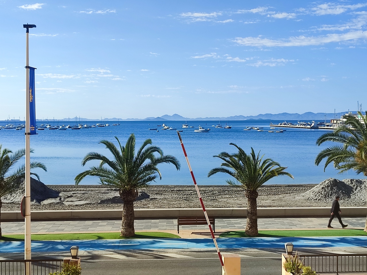 This stylish modern renovated apartment front line to the beach of Lo Pagan.The contemporary design leads throughout the whole apartment. The open plan layout has been carefully arranged with a state-of-the-art fully equipped kitchen, breakfast bar and a raised lounge area complete with a dining area and views over the Mar Menor. The large-format tiles lead you through the apartment which  has two large bedrooms, each with generously sized built-in wardrobes and a modern design that maximizes space without sacrificing aesthetics.  The apartment's two bathrooms are completely renovated, with high-quality materials and a fresh, contemporary design.Additionally, this apartment has a common outdoor area that is perfect for everyday tasks such as hanging clothes or storing items such as bicycles, beach chairs, and more. The apartment includes a garage, which adds convenience and security. It's also included in the price, an added value that makes this property an even more attractive option.This apartment would make an ideal holiday home by the sea and has been a successful holiday let apartment.    • 65 m²     • 2 Bedrooms.    • 2 Bathrooms.    • Enclosed Terrace with Bio fold Windows.    • Parking space included in the price    • Second hand/good condition    • With elevator