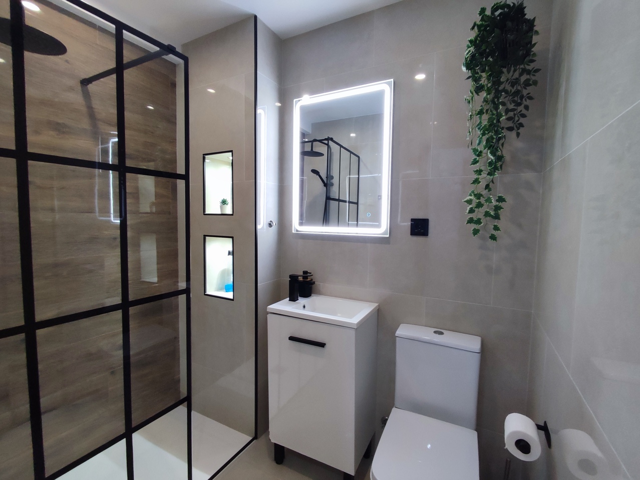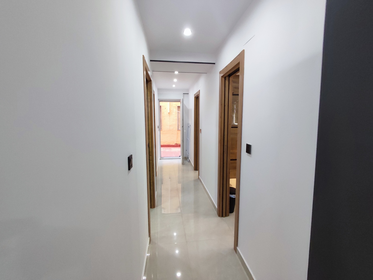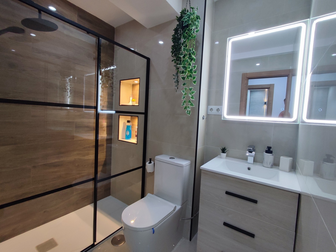 This stylish modern renovated apartment front line to the beach of Lo Pagan.The contemporary design leads throughout the whole apartment. The open plan layout has been carefully arranged with a state-of-the-art fully equipped kitchen, breakfast bar and a raised lounge area complete with a dining area and views over the Mar Menor. The large-format tiles lead you through the apartment which  has two large bedrooms, each with generously sized built-in wardrobes and a modern design that maximizes space without sacrificing aesthetics.  The apartment's two bathrooms are completely renovated, with high-quality materials and a fresh, contemporary design.Additionally, this apartment has a common outdoor area that is perfect for everyday tasks such as hanging clothes or storing items such as bicycles, beach chairs, and more. The apartment includes a garage, which adds convenience and security. It's also included in the price, an added value that makes this property an even more attractive option.This apartment would make an ideal holiday home by the sea and has been a successful holiday let apartment.    • 65 m²     • 2 Bedrooms.    • 2 Bathrooms.    • Enclosed Terrace with Bio fold Windows.    • Parking space included in the price    • Second hand/good condition    • With elevator