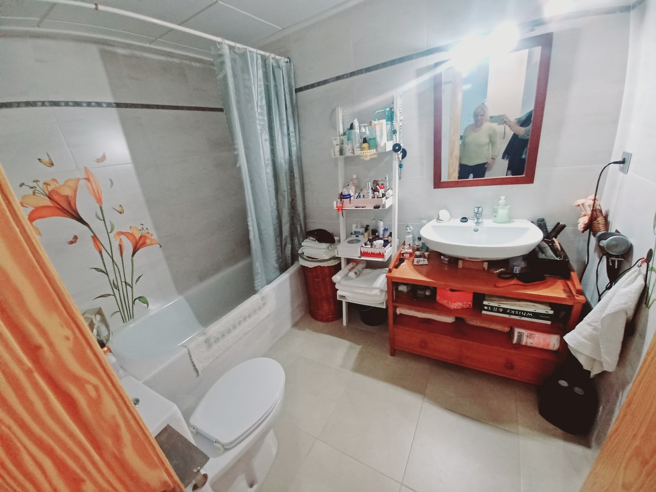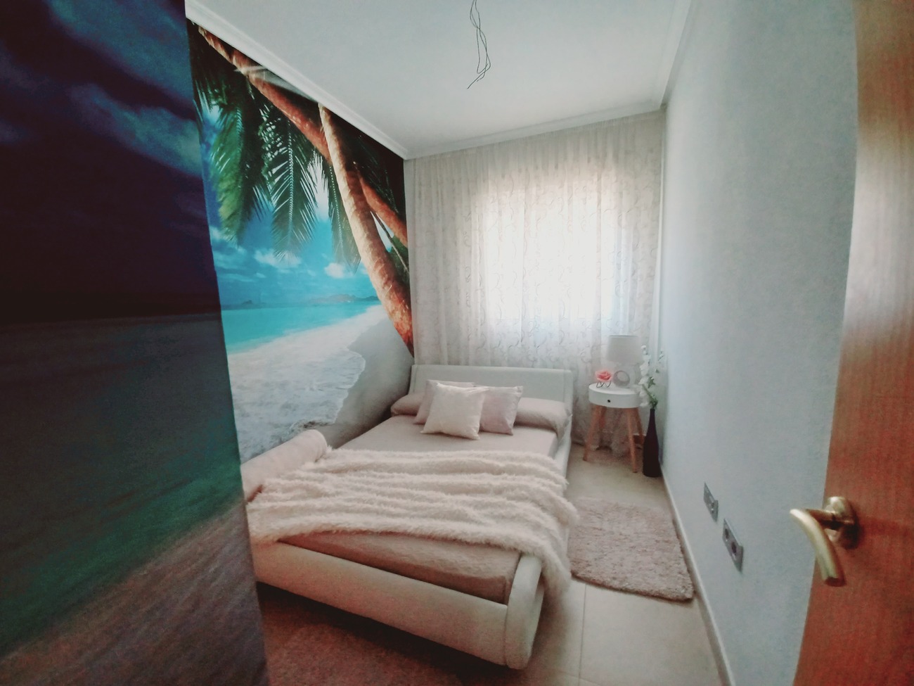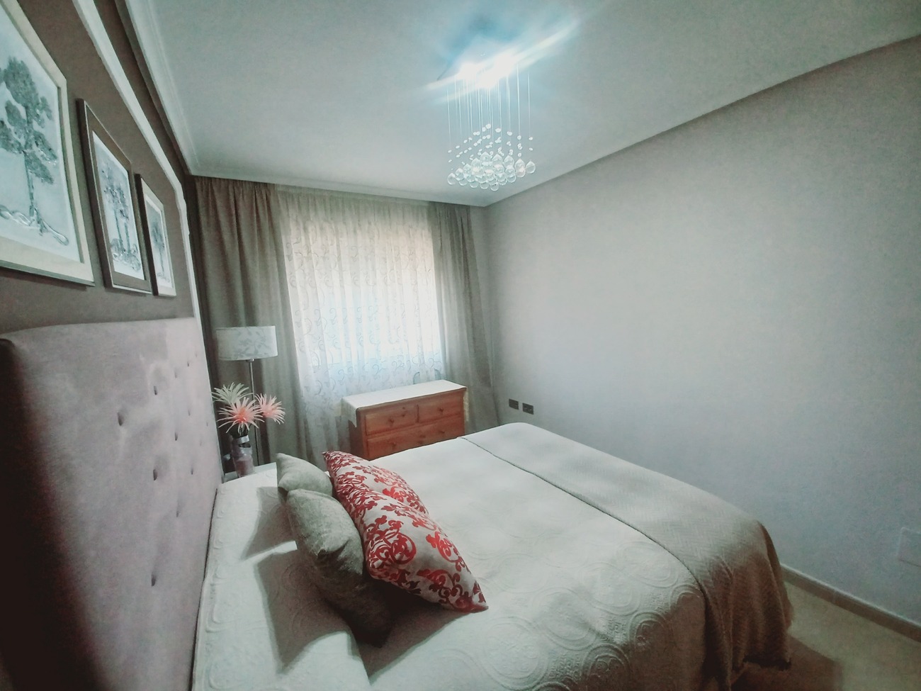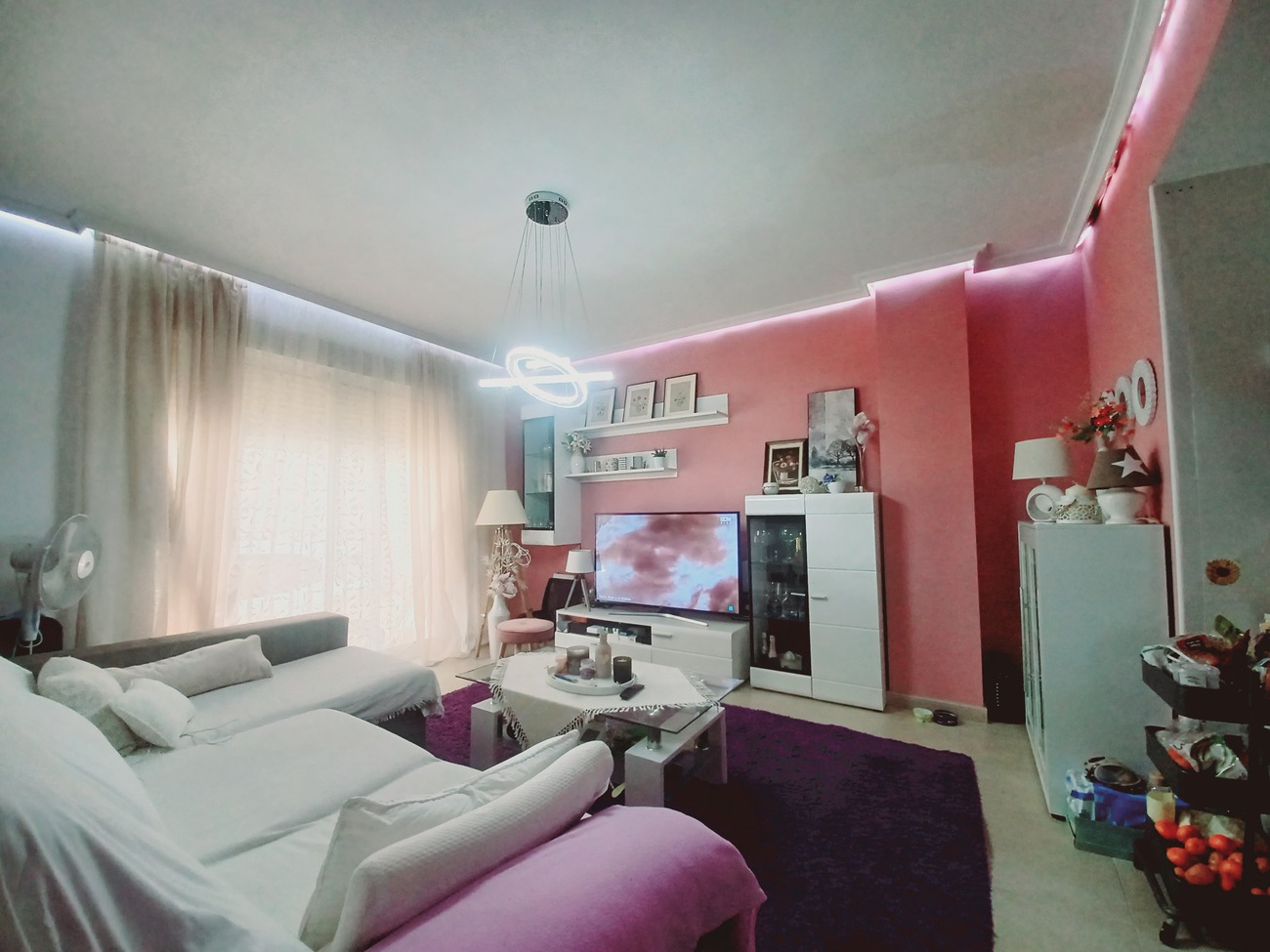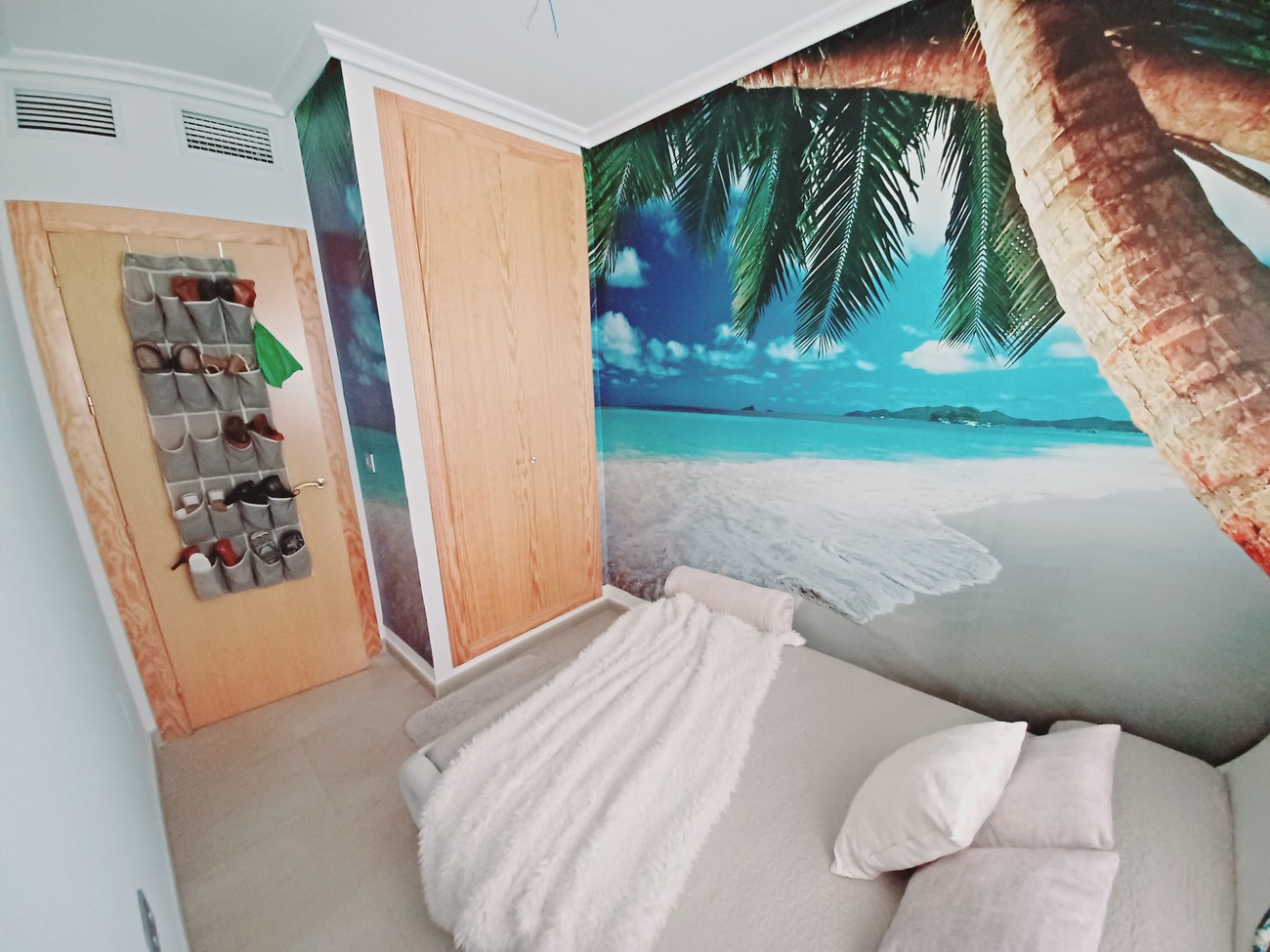 This modern apartment in Sucina really has it all for quality living; it is spacious with high qualities throughout and it is sold furnished.  The apartment is located on the ground floor with plenty of windows and natural light and off street parking outside the living room.  The apartment enters into a hallway which leads to open plan modern kitchen with quality wood finish  fitted kitchen with cream worktop with high quality electro-domestic, oven, hob, canopy dishwasher and washing machine included in the the sale.  The living room is furnished with L shaped sofa, coffee table, storage unit, dining table and chairs, the floor is light ceramic tiles  The hallway leads to the bathroom  tiled from floor to ceiling with bath tub/shower, vanity unit and WC.  There are two double bedrooms; the main bedroom has a double bed,bedside cabinets, drawer unit, fitted wardrobes and quality lighting.  The second bedroom  is furnished with ´sleigh´style bed´and fitted wardrobes;  Furniture and high quality light fittings are all included in the sale.  The apartment comes with full integrated air conditioning (hot and cold)  and underground storage unit set in a well maintained building with secure entrance and a lift.  There is a roof terrace with swimming pool and sunbathing terrace with panoramic views.  The village of Sucina has all amenities, live entertainment and just a short drive to the coast and to the airport.