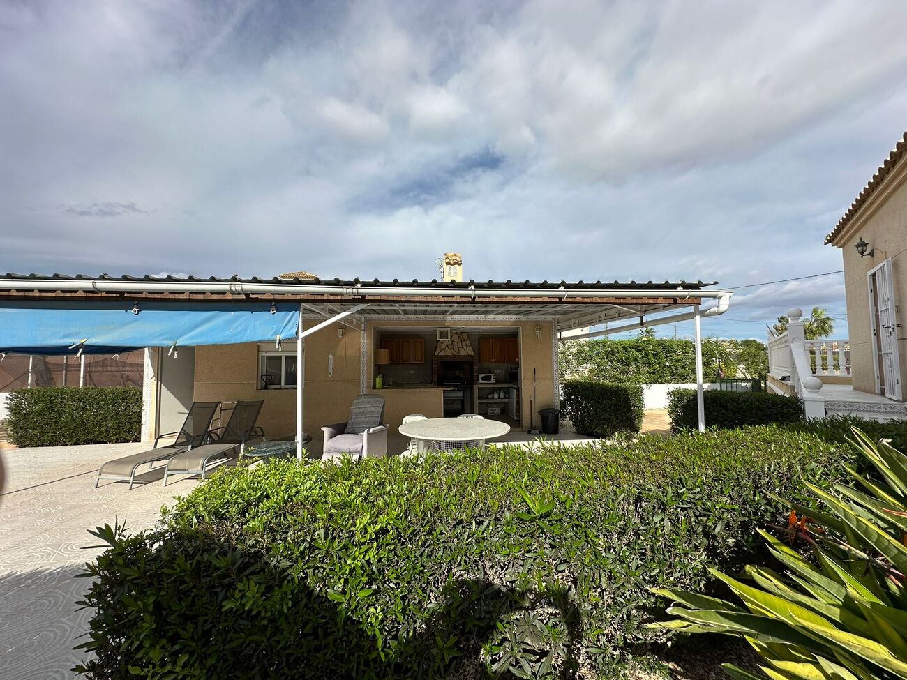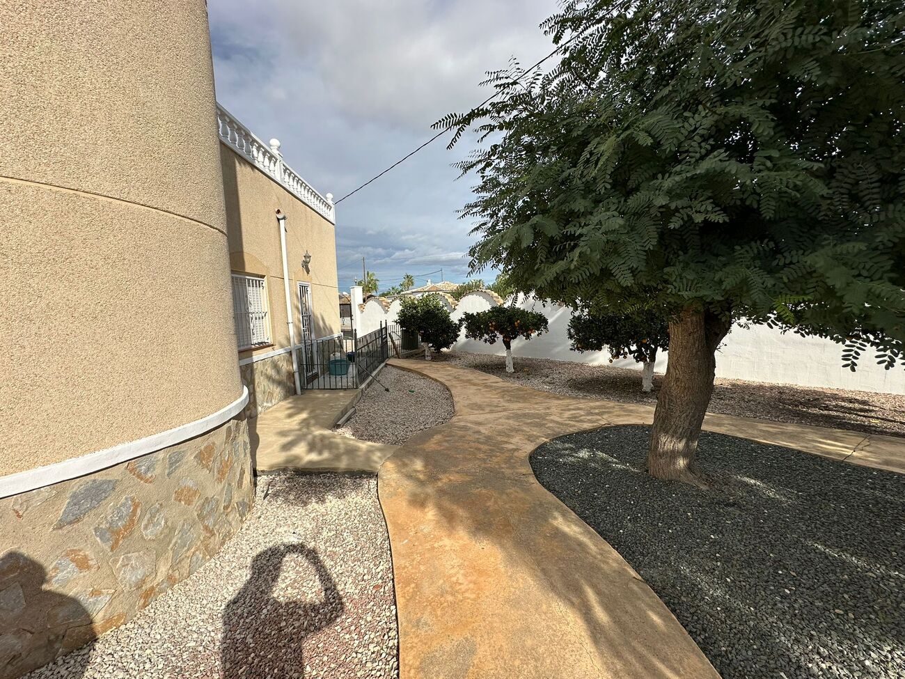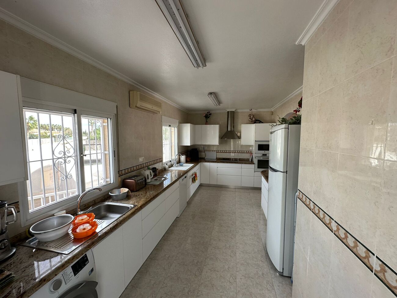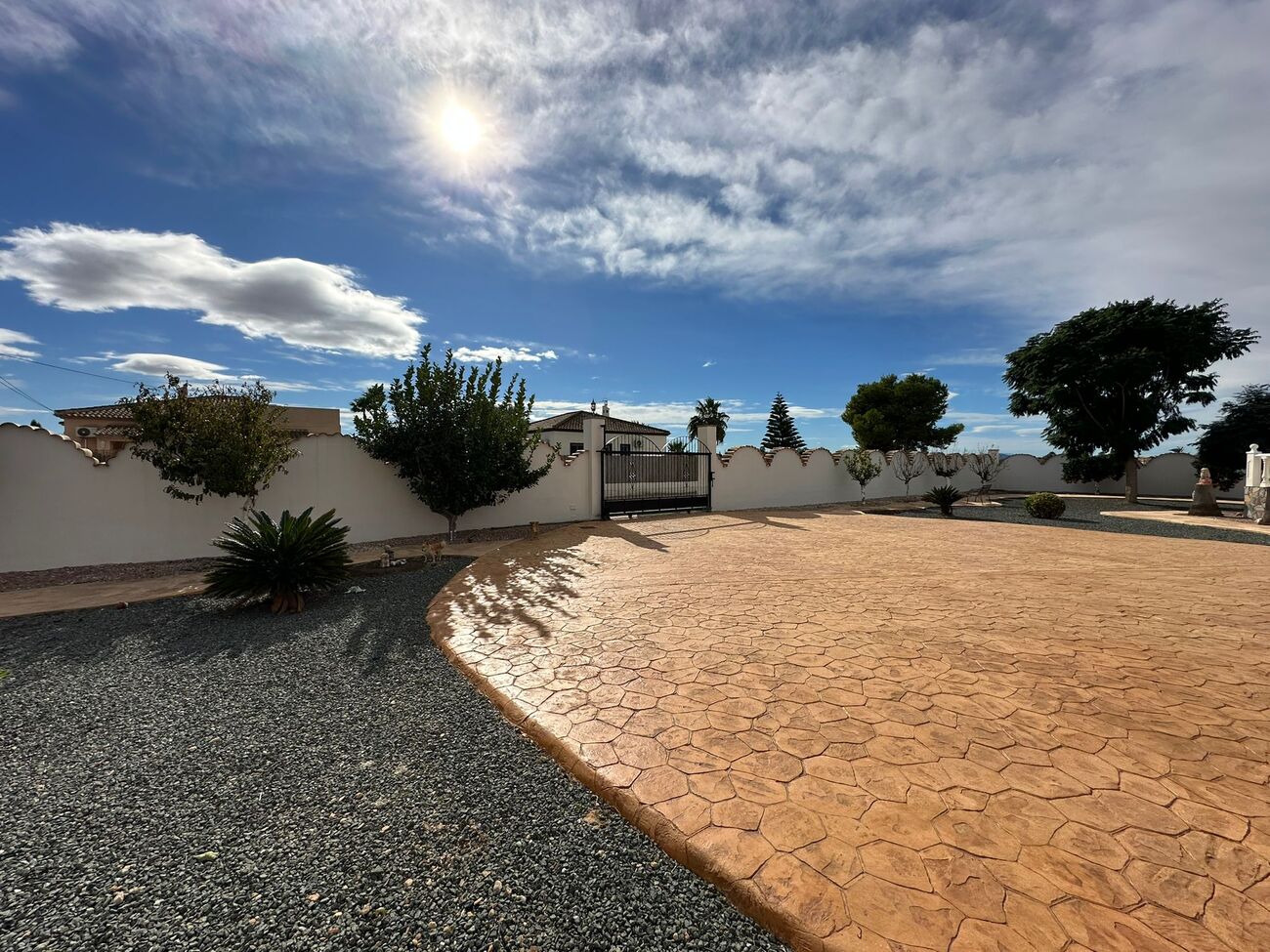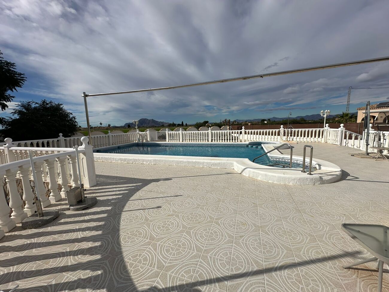 This stunning villa has just entered the market, and we highly recommend scheduling a viewing to fully appreciate its features.The property is accessed through electric gates, leading to a walled plot with a beautifully landscaped, low-maintenance garden featuring shrubs, fruit trees, and thoughtfully designed areas. There is ample parking space for multiple vehicles, including camper vans, along with a garage/workshop.The elevated pool area is designed with accessibility in mind, featuring three sets of steps and a ramp, making it ideal for those with reduced mobility. Adjacent to the pool, you’ll find an outdoor changing room/bathroom and a fully equipped outdoor kitchen, creating the perfect setting for entertaining or relaxing while enjoying breathtaking countryside and mountain views.At the front of the villa, a covered veranda overlooks the garden, offering a serene spot to unwind. Inside, the villa welcomes you with a spacious lounge and dining area complete with a feature fireplace. The large, fully equipped kitchen has direct access to the rear garden.The villa boasts three generously sized double bedrooms, two of which are en-suite, alongside a family bathroom. One en-suite bathroom has been converted into a wet room, and the entire villa has been thoughtfully adapted for wheelchair accessibility.Additional features include mains water and electricity, complemented by solar panels that significantly reduce energy costs. A set of steps leads to a spacious solarium with panoramic views of the surrounding countryside and mountains.Located just a short drive from the town of Catral, the villa enjoys easy access to all local amenities and services. The property is conveniently situated on a well-maintained access road.   4o