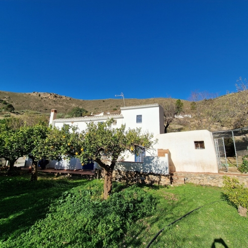 PRIME PROPERTY - Villa La Herriza is a unique and immaculate 4 bedroom 4 bathroom property nestled in the Alcaucin Valley, just above Venta Baja. Located at the end of a no through track with magnificent south facing views across the valley toward Mount Maroma. The villa sits on 2 plots, which are fully fenced and filled with trees, pathways, rockeries and beautiful gardens. There are 3 sets of entrance gates with the main one having automatic electric gates to a large parking area and garage with automatic door and small workshop. There is a large 10 meter salt water, heated swimming pool with terracing around it for sunbathing.  Beside the pool is an attractive pergola, ideal for dining in the shade in the hotter months. On the ground level you have a self contained apartment with 2 bedrooms, 2 bathrooms, lounge and kitchenette with all modern extras. The lounge has AC, a wood burner, central heating and patio doors to a glazed and covered terrace. The 2 bedrooms are a good size with AC and central heating. There is a general bathroom and an ensuite shower room with separate sauna. You access the main living area via a marble staircase into the lounge which is very light with a vaulted ceiling, large panoramic window and patio doors to a covered terrace. The kitchen is very modern and light with plenty of units, a central island and a separate utility room. The 2 bedrooms on this floor are doubles with AC and central heating. The master bedroom has an ensuite shower room and there is also a general shower room. The house is fully alarmed and all of the windows are tilt and turn, double glazed with mosquito nets. This really is a must see, turn key opportunity to buy a very special home in a peaceful and tranquil part of Andalucia.