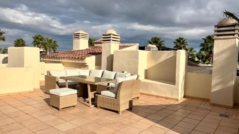 Step into luxury with this exceptional penthouse located in the prestigious Roda Golf Resort. Perfectly positioned just 2 minutes from the charming town of Los Alcázares.This beautifully designed home features two spacious bedrooms and two bathrooms with fitted wardrobes, complemented by an open-plan kitchen that seamlessly integrates with the bright and airy living areaThe terrace offers a serene spot to enjoy your morning coffee, while one of the most impressive features of this property is the large, private roof top terrace with panoramic views of the surrounding area. It's the perfect space for outdoor entertaining, with plenty of room for dining, lounging, and soaking up the Spanish sunshine.Adding to its allure, two sparkling pools are located just steps from your front door, offering unmatched convenience for cooling off or lounging poolside.For your peace of mind, the property includes 24-hour security, along with an underground parking space and a spacious storage room.Located near the beautiful Mar Menor, this penthouse offers access to world-class golf and the relaxed Mediterranean lifestyle you’ve been dreaming of. Don’t miss this incredible opportunity—contact us today to arrange a viewing and make this luxurious penthouse your own!