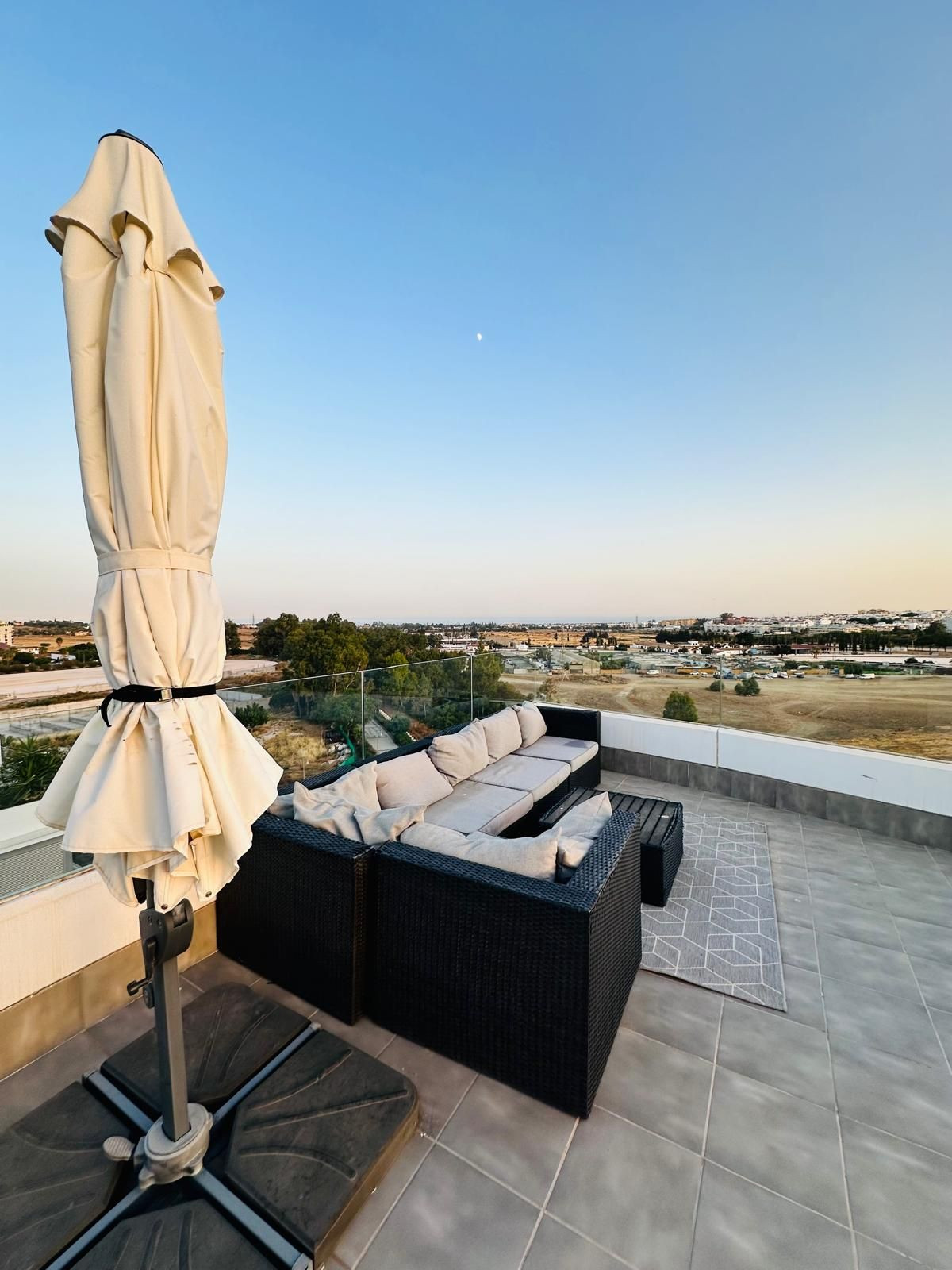 Fabulous penthouse located in La Campana, Nueva Andalucia. Just steps away from local amenities, cafes and restaurants and just a short drive to Puerto Banus. Surrounded by many top golf courses and schools.This spacious three bedroom and two bathroom, corner penthouse offers panoramic views towards the sea and mountains from its large terrace area. Built to a high quality with large living and dining area, fully fitted, modern kitchen and three good sized bedrooms. Located within a secure urbanisation with roof top swimming pool and gym. Underground parking and storage room also included.