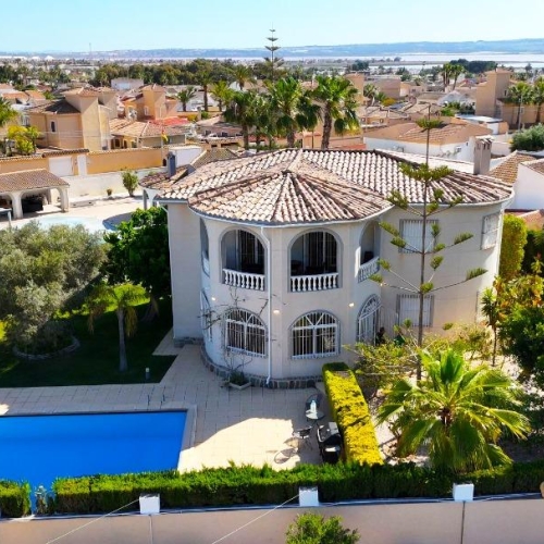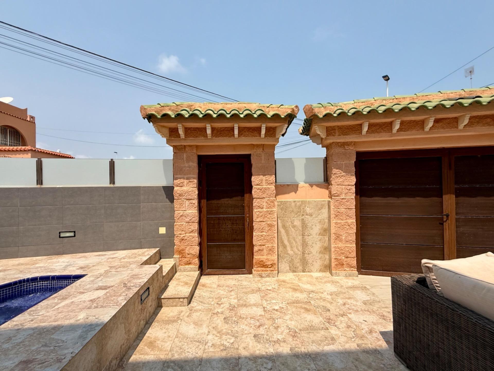 We present to you this exclusive villa in Los Frutales (Torrevieja), a prime location just 200 meters from the sea. An ideal property both as a permanent residence and for enjoying unforgettable holidays in a privileged setting. The house is distributed over two floors plus a private solarium: Ground floor: spacious and bright living room, large independent fully equipped kitchen, a complete bathroom and 2 bedrooms. This floor also offers on-site parking within the plot and a practical storage room. First floor: 3 bedrooms, a second complete bathroom, and a large terrace with a chill-out area, perfect for relaxing and enjoying the Mediterranean climate. Second floor: spectacular private solarium with open views, ideal for sunbathing, outdoor gatherings, or simply unwinding. The villa has a private pool, and in addition, within the complex there is access to a community pool, adding more leisure and comfort options. This property brings together everything those seeking exclusivity, comfort, and proximity to the beach are looking for. 📍 Perfect location: just steps from the beach, close to restaurants, supermarkets, green areas, and all the daily services you may need.