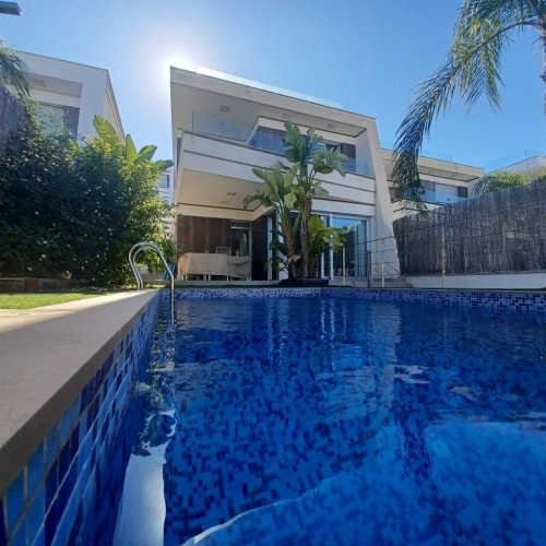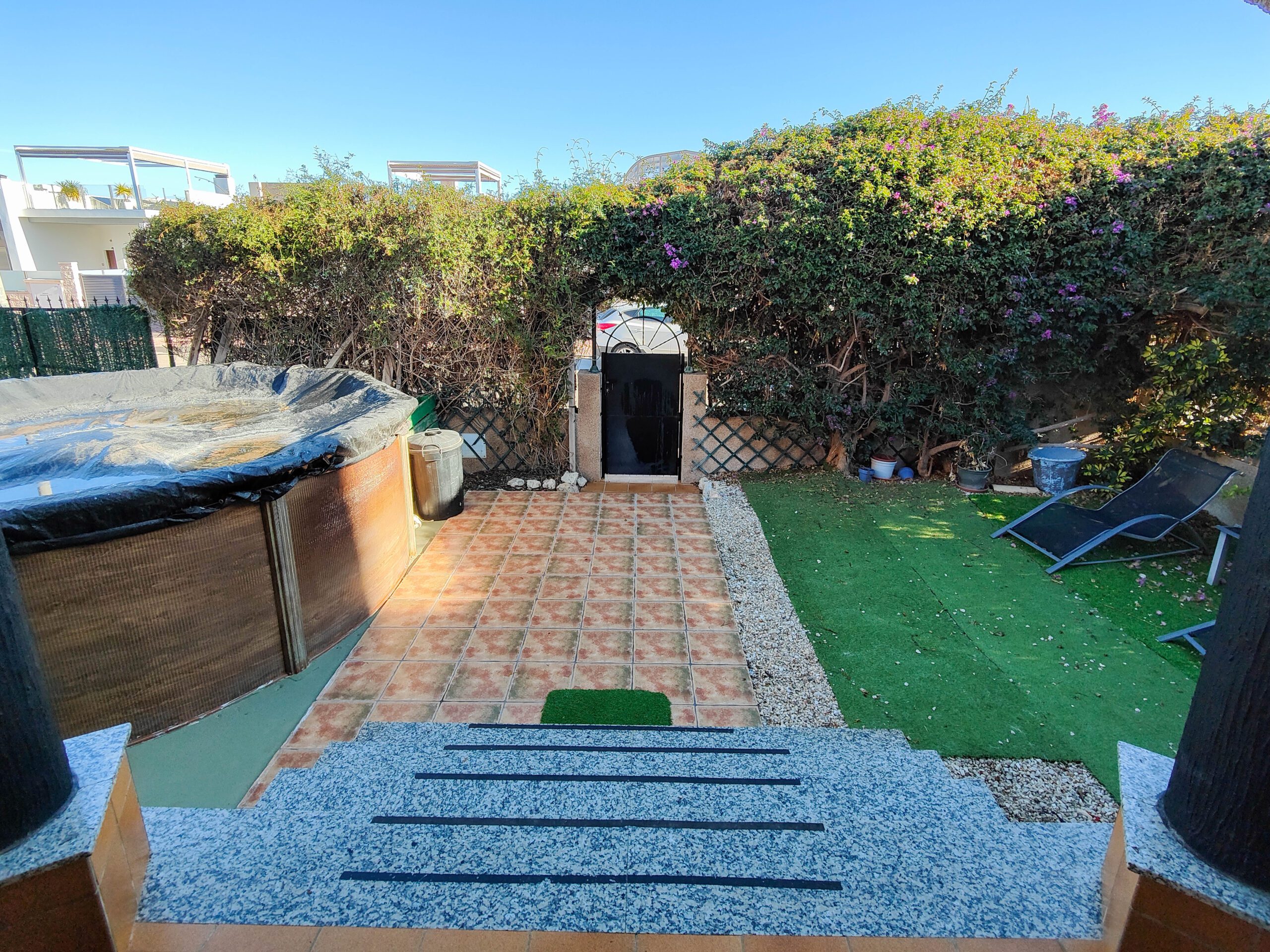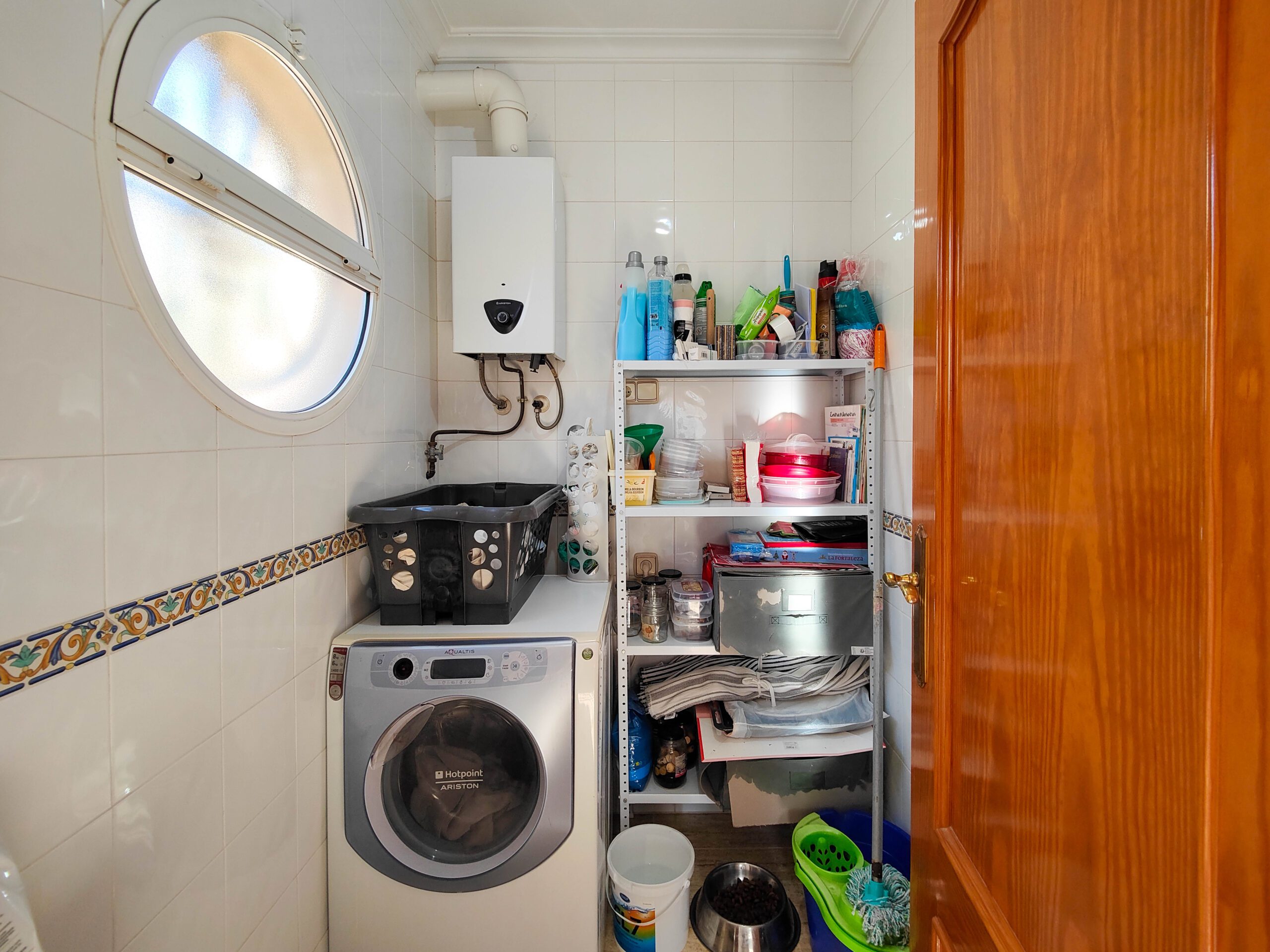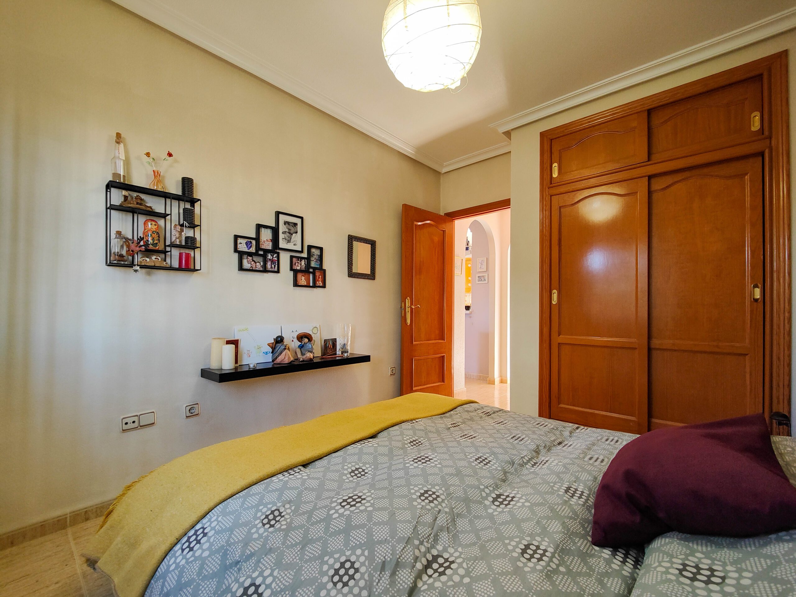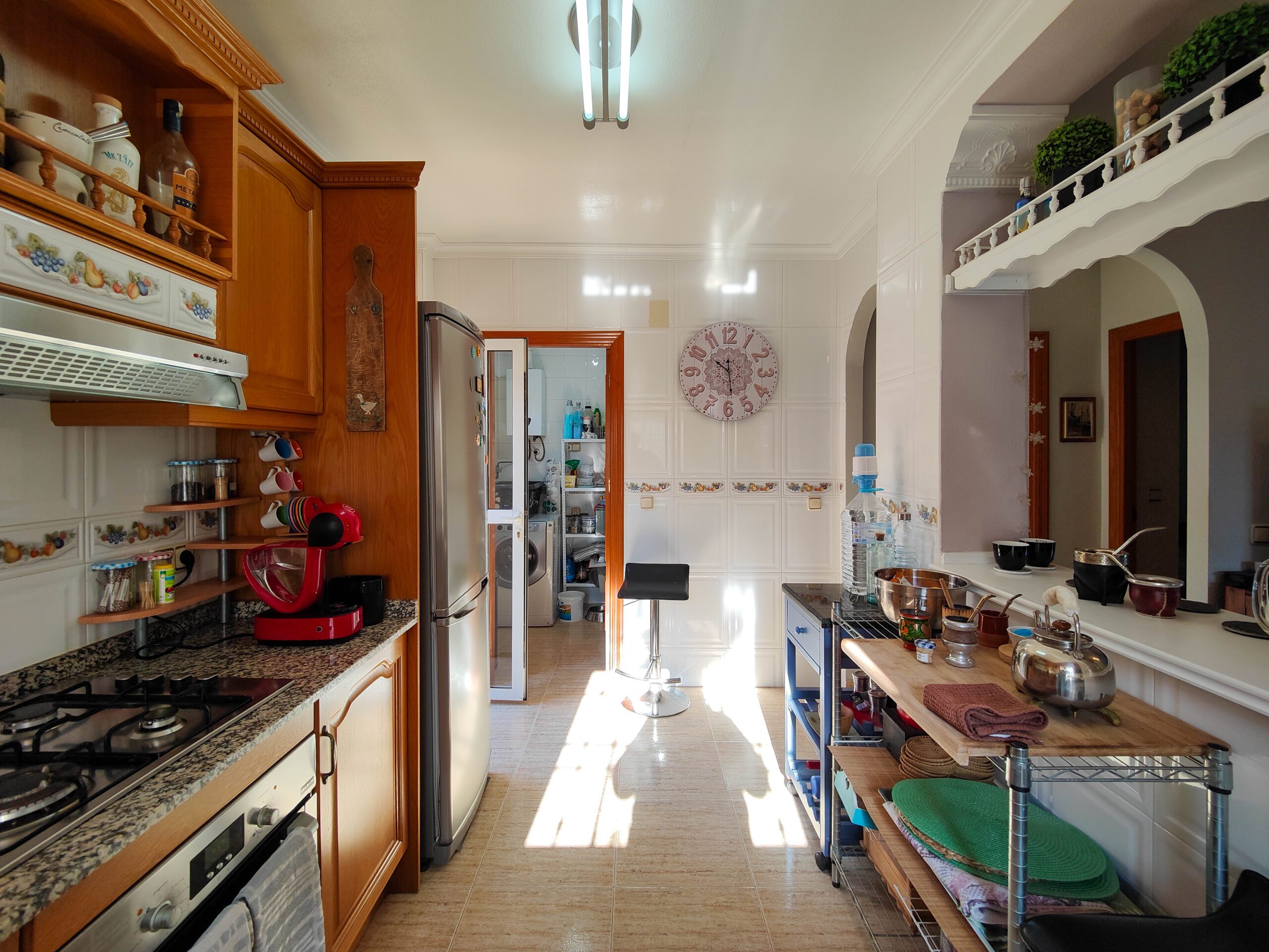 Detached mediterranean corner villa with a closed garage for sale in Villamartin - Orihuela Costa. This villa bellongs to a very small community without community fees. Just a short drive away from the Aldi supermarket, several shopping/comercial centers and the beaches of Orihuela Costa and Torrevieja.This well kept detached villa offers 3 bedrooms and 2 bathrooms distributed as follows:On the ground floor there is 1 bedroom with fitted wardrobes, 1 bathroom with walkin shower, a semi independent kitchen, a storage/laundry area and a spacious living area with a fireplace.On the first floor we find 2 bedrooms, both with fitted wardrobes and one of them with a private balcony, 1 bathroom with a bathtub and a south facing terrace. From this terrace we can access the roofterrace where there are 2 storage rooms.Outside, to the front of the property, there is off road parking, a closed garage, a private swimming pool, a covered terrace and several sitting areas. At the back of the property, which is south facing, there is a sunny tiled garden with direct access to the kitchen.This amazing villa is sold partially furnished. Do not miss the chance to buy this beautiful detached mediterranean villa with a closed garage for sale in Villamartin - Orihuela Costa!