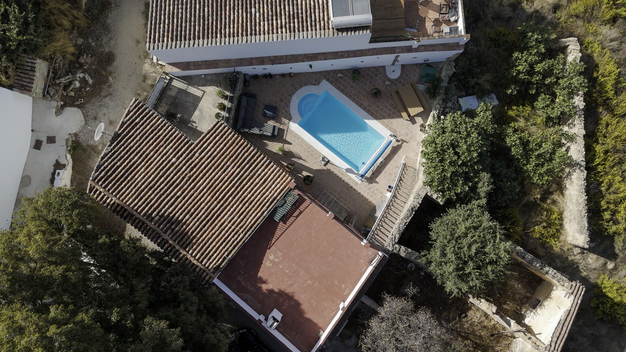 Casa Tejeda - discover peace and privacy in this beautifully reformed detached two-bedroom home. Nestled in a tiny, peaceful hamlet with no road noise, this home offers the ideal retreat for those seeking quiet country living. There is communal parking just a short walk from the property, with the option to bring a small car directly onto the plot through the gated entrance.Inside, the home is full of character and built to last, featuring solid thick stone walls (60–70 cm) that provide natural insulation — keeping it cool in summer and warm in winter. The living area includes a wood-burning stove (installed two years ago).The main bedroom comfortably fits a super king-size bed, includes built-in wardrobes, and opens directly onto the terrace with pool views. The second bedroom is also a double with fitted storage and its own terrace access.The bathroom is solid and bright, with potential to add a large window overlooking the pool area. The kitchen is generous in size, with granite countertops, modern appliances, and room for a dining table. A separate utility room houses the electric boiler and provides additional storage.The private swimming pool with Roman steps sits amid beautiful stone terraces and rustic garden walls. Enjoy shaded relaxation on the covered front terrace, dine al fresco on the lower terrace, or take in stunning mountain views from the spacious roof terrace .The property also features an outdoor shower, ample seating areas, and attractive exposed stonework throughout.This unique property is perfect for anyone seeking a tranquil retreat or an easy-to-maintain permanent home in the countryside. With its combination of privacy, character, and outdoor living space, it truly offers exceptional value for money.