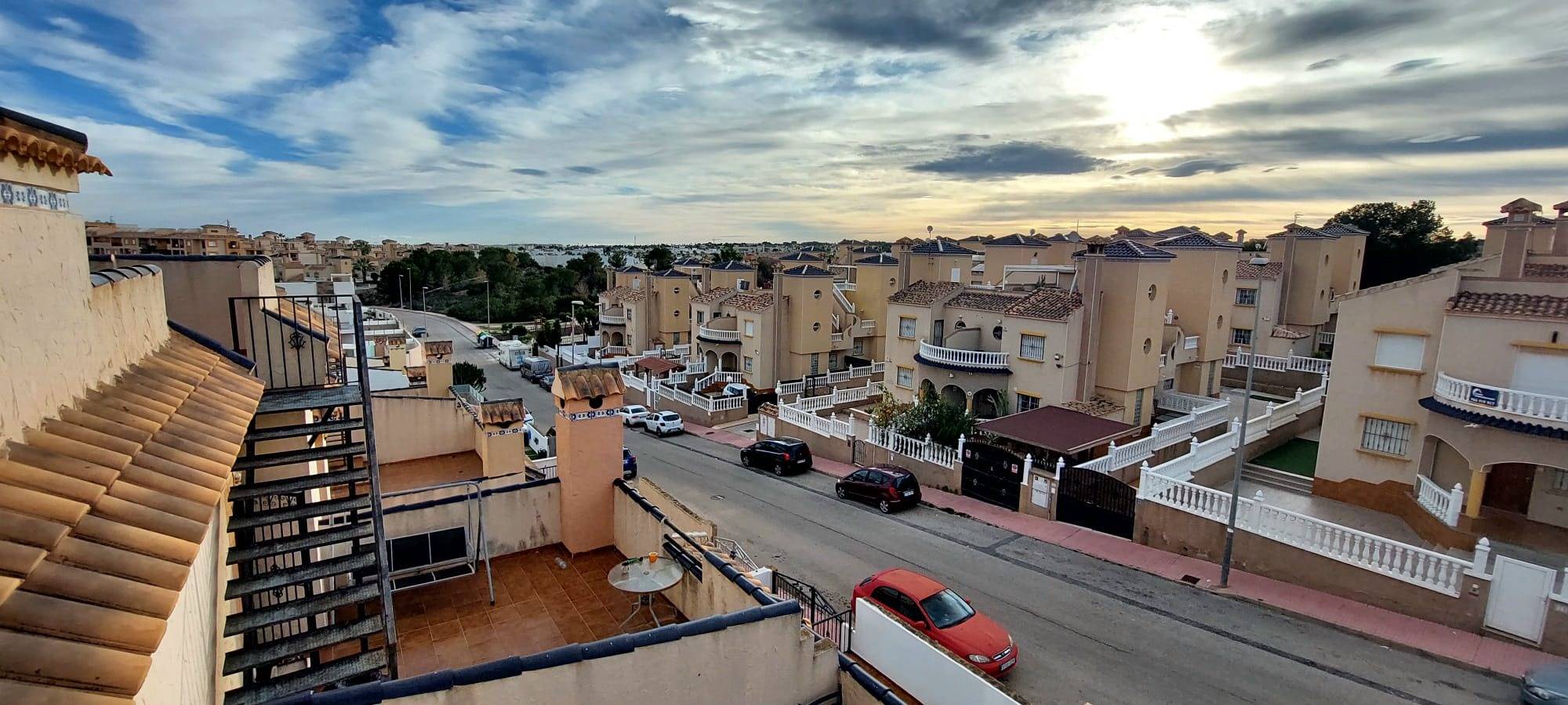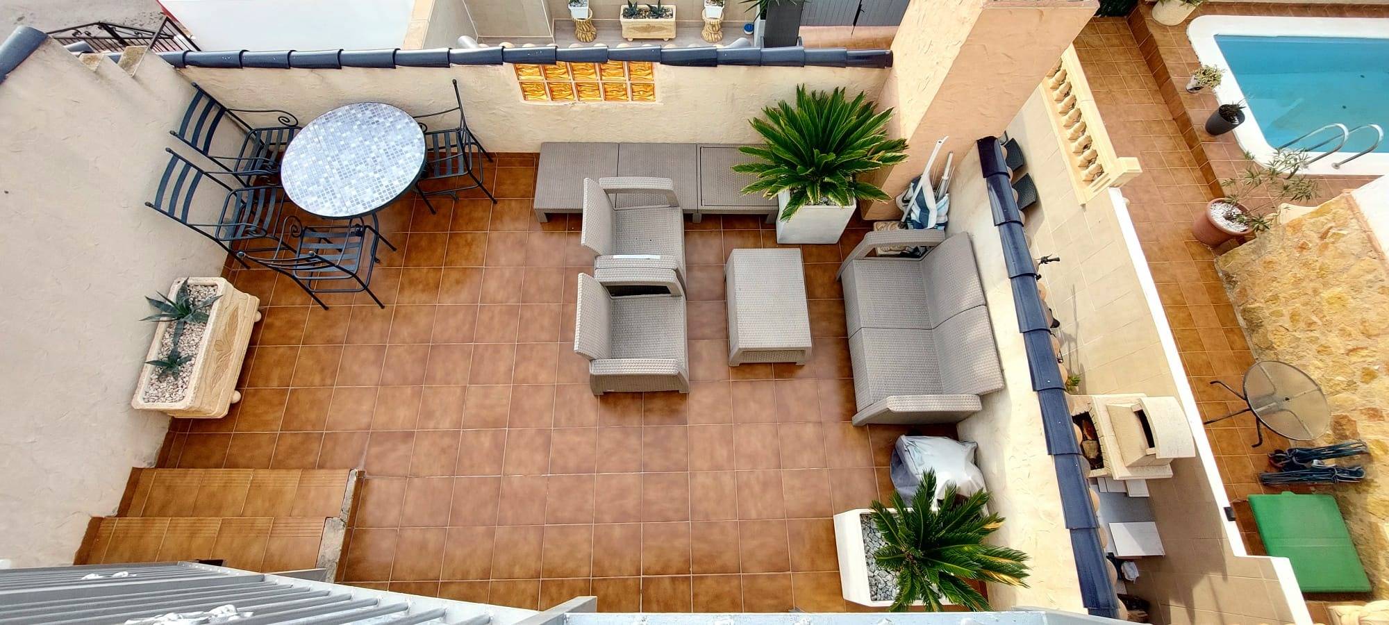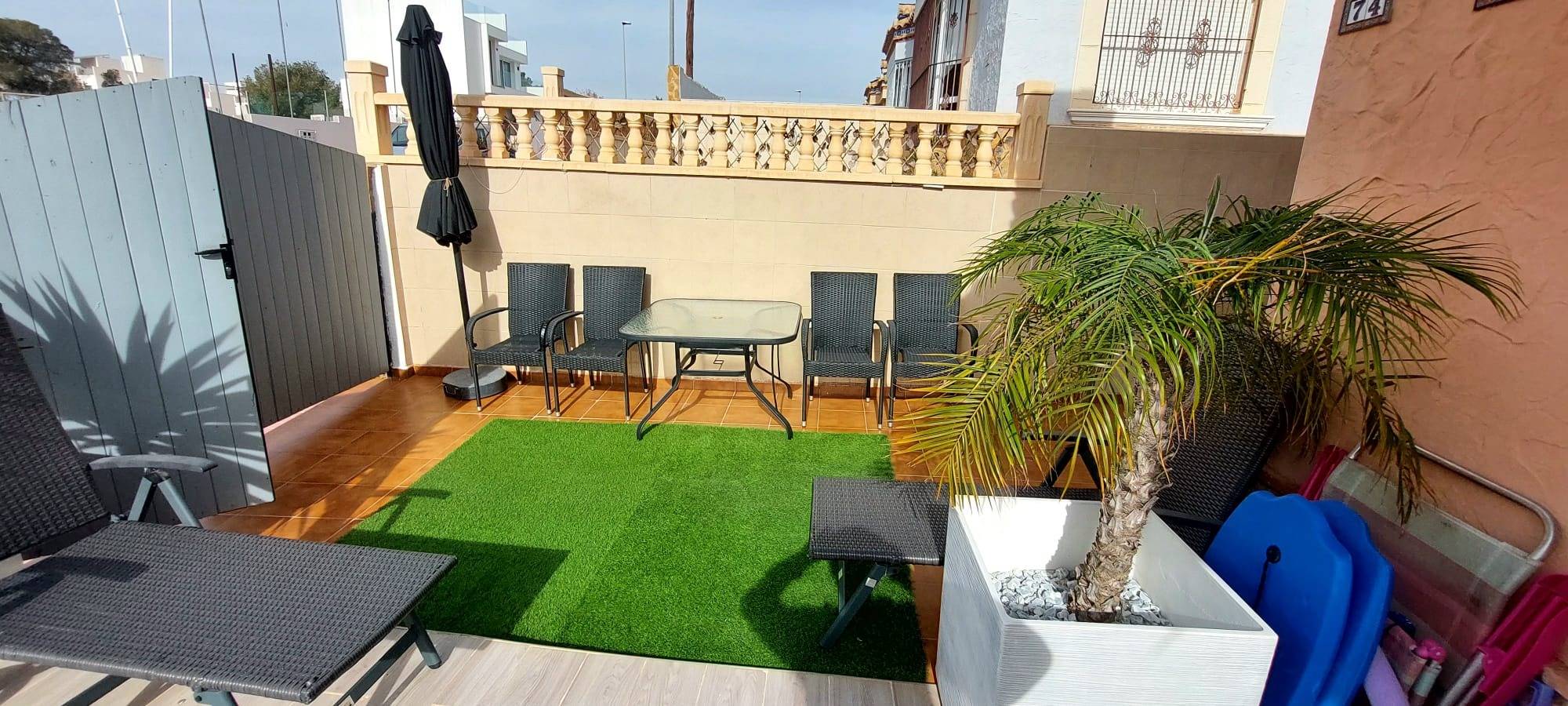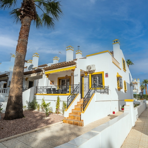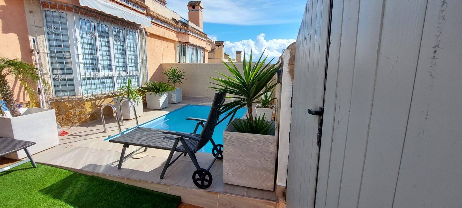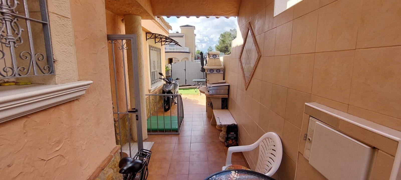 Discover this wonderful home in the exclusive area of Las Filipinas, Villamartin, Orihuela Costa. With a surface area of 94 m² on a 150 m² plot, this semi-detached villa offers the perfect balance between comfort, privacy, and style. It features three spacious double bedrooms and two full bathrooms, all in perfect condition and ready to move into. The fully equipped kitchen, with wooden interior carpentry, adds a warm and cozy touch. The west-facing orientation ensures plenty of natural light and beautiful sunset views. The gres flooring and PVC exterior carpentry with Climalit provide both comfort and thermal insulation. Extras that make the difference: Central and split air conditioning, heating, alarm system, and reinforced security door for maximum protection. Spacious living room with a lookout area and access to a charming balcony. Private garden with a barbecue and a swimming pool, perfect for enjoying the Mediterranean climate. Solarium, patio, and terrace, ideal for family gatherings or moments of relaxation. Storage room, pantry, and utility area for optimal organization. High-quality finishes with high ceilings, recessed lighting, and included furniture. Telephone and TV connection, as well as a video intercom and automatic doors. Located in a privileged area, with easy access to buses, schools, shopping centers, hospitals, and universities. Surrounded by nature, close to the sea, and near golf courses. Don't miss this opportunity—come and discover your future home in Orihuela Costa!