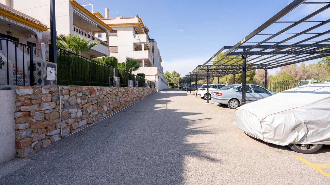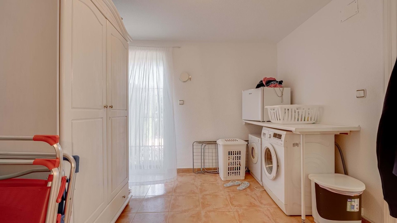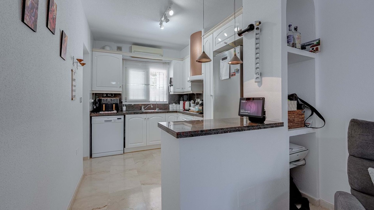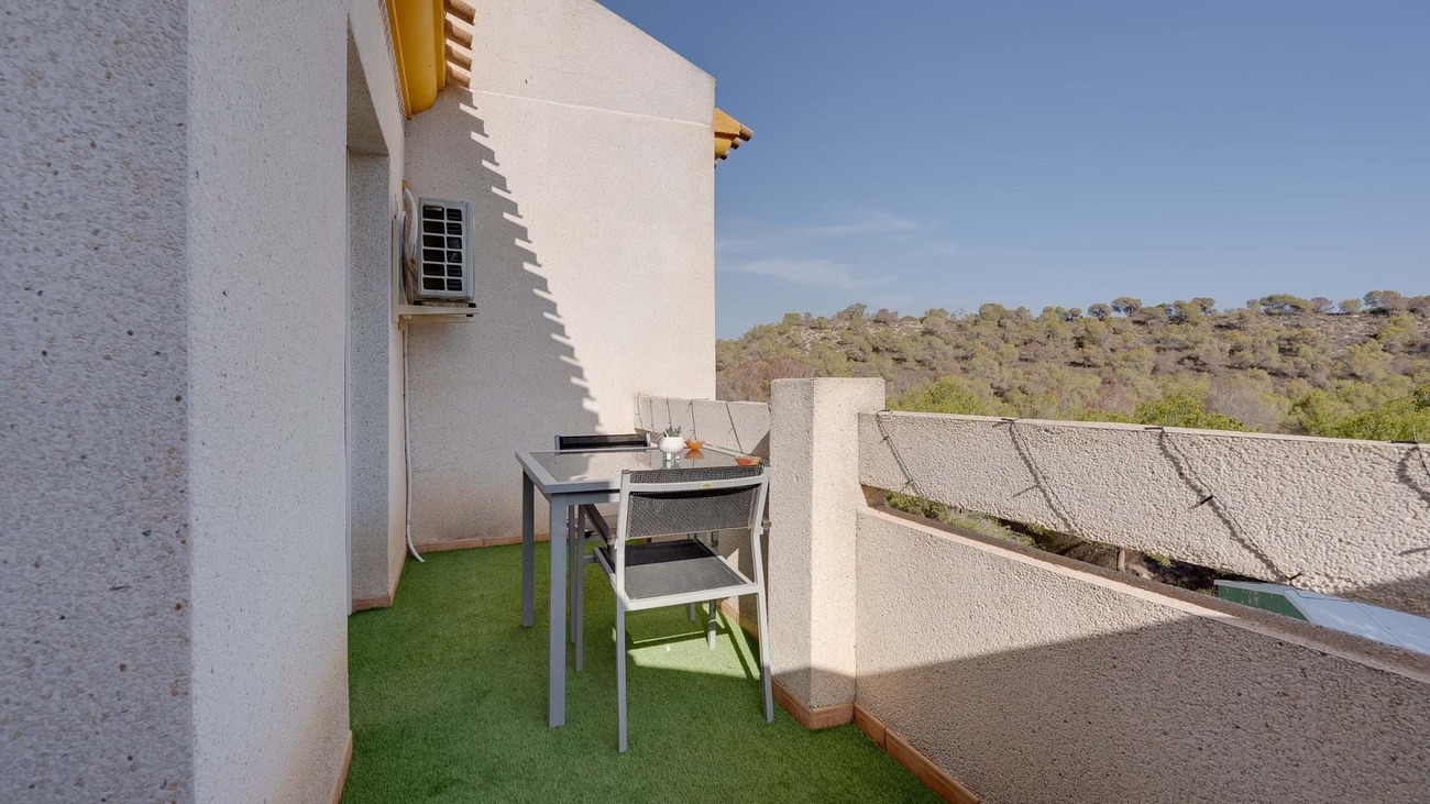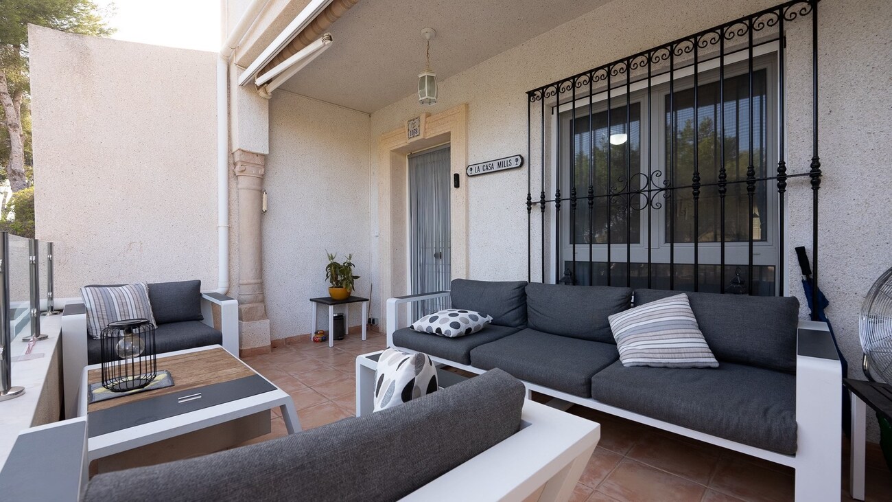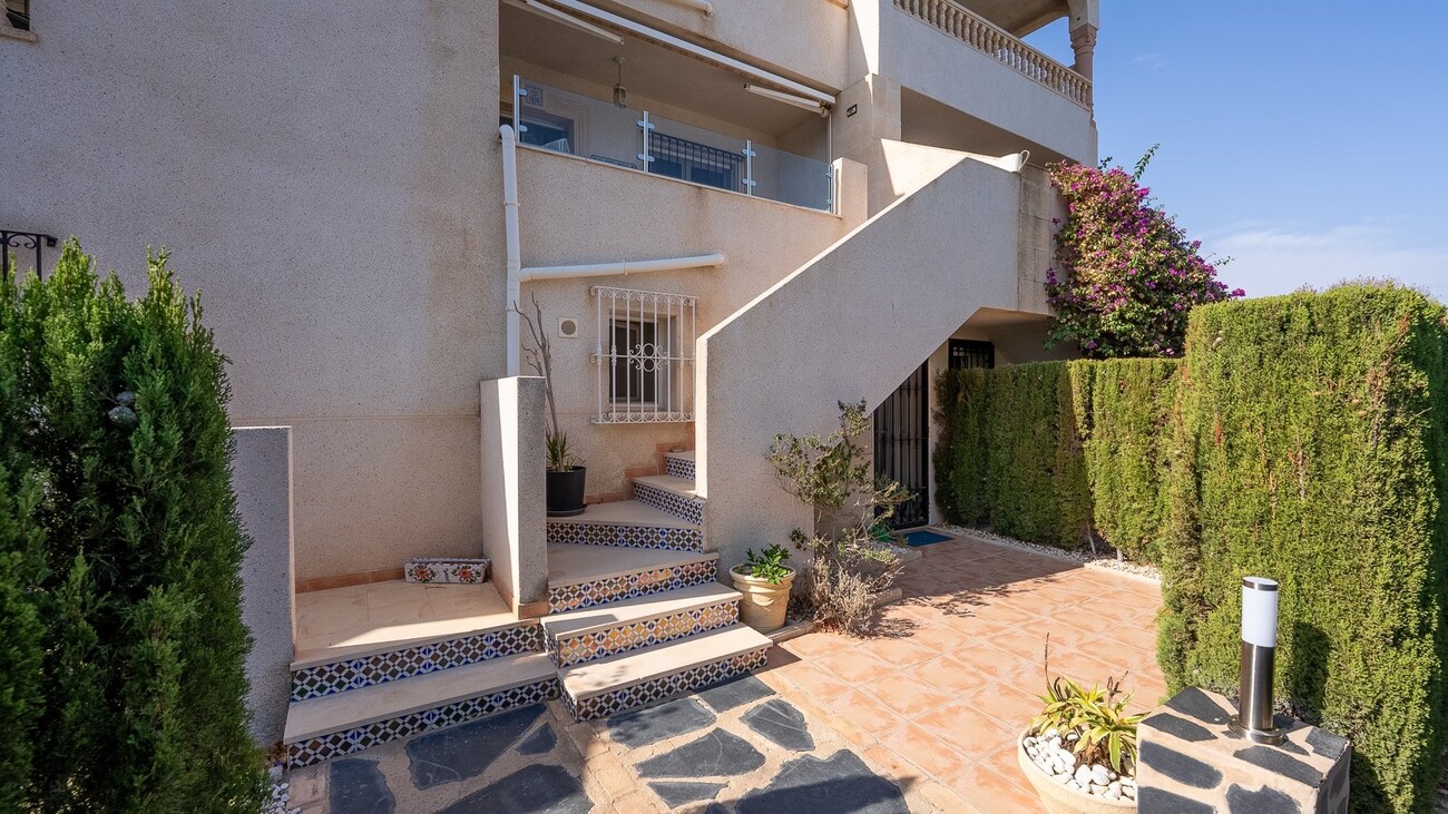 This beautifully designed property is spread over three floors, offering versatile living spaces and breathtaking views. Ground Floor: Ideal as a self-contained bedsit or guest suite Spacious open-plan area with bed and sofa Ample storage space Kitchenette for added convenience Bathroom Direct access to a private courtyard Air conditioning Stairway leading to the main living area First Floor: Large terrace with stunning golf course views Bright and airy lounge with dining area and open fireplace Fully equipped kitchen WC/cloakroom Second Floor: Two double bedrooms, one with a private balcony Family bathroom Third Floor: Rooftop solarium with panoramic golf course views Additional Features: Allocated parking space Partially furnished Air conditioning throughout Security alarm system East-facing for morning sun Access to a communal pool and landscaped gardens Located in a secure gated community Walking distance to the popular C.C. La Fuente, offering a variety of bars and restaurants This exceptional home is perfect for those seeking a combination of comfort, style, and convenience in a sought-after location.