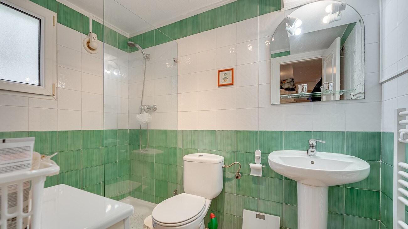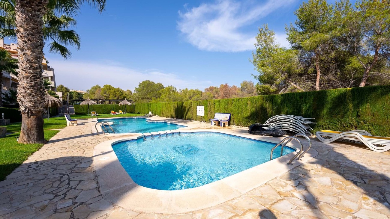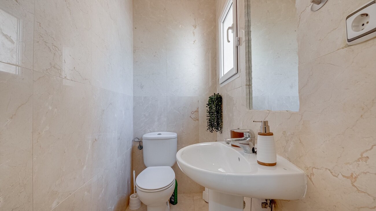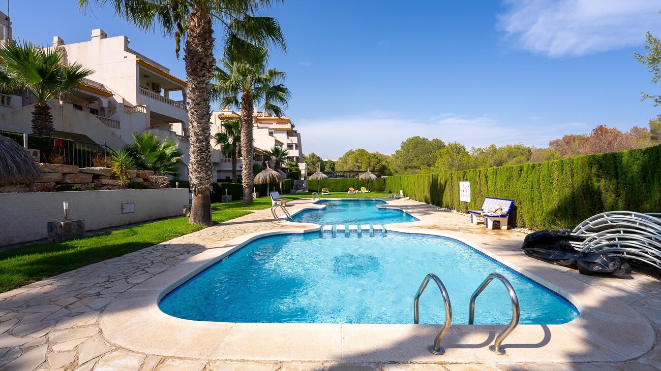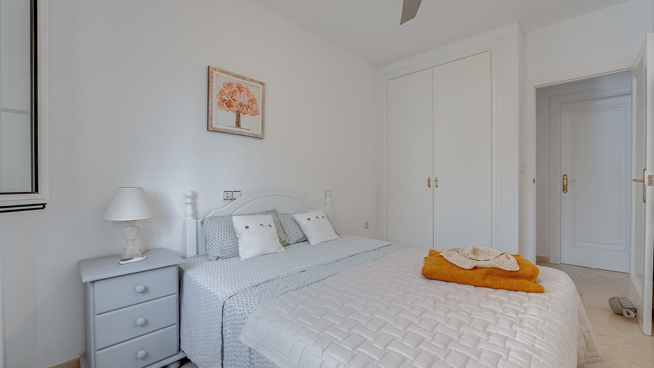 This beautifully designed property is spread over three floors, offering versatile living spaces and breathtaking views. Ground Floor: Ideal as a self-contained bedsit or guest suite Spacious open-plan area with bed and sofa Ample storage space Kitchenette for added convenience Bathroom Direct access to a private courtyard Air conditioning Stairway leading to the main living area First Floor: Large terrace with stunning golf course views Bright and airy lounge with dining area and open fireplace Fully equipped kitchen WC/cloakroom Second Floor: Two double bedrooms, one with a private balcony Family bathroom Third Floor: Rooftop solarium with panoramic golf course views Additional Features: Allocated parking space Partially furnished Air conditioning throughout Security alarm system East-facing for morning sun Access to a communal pool and landscaped gardens Located in a secure gated community Walking distance to the popular C.C. La Fuente, offering a variety of bars and restaurants This exceptional home is perfect for those seeking a combination of comfort, style, and convenience in a sought-after location.