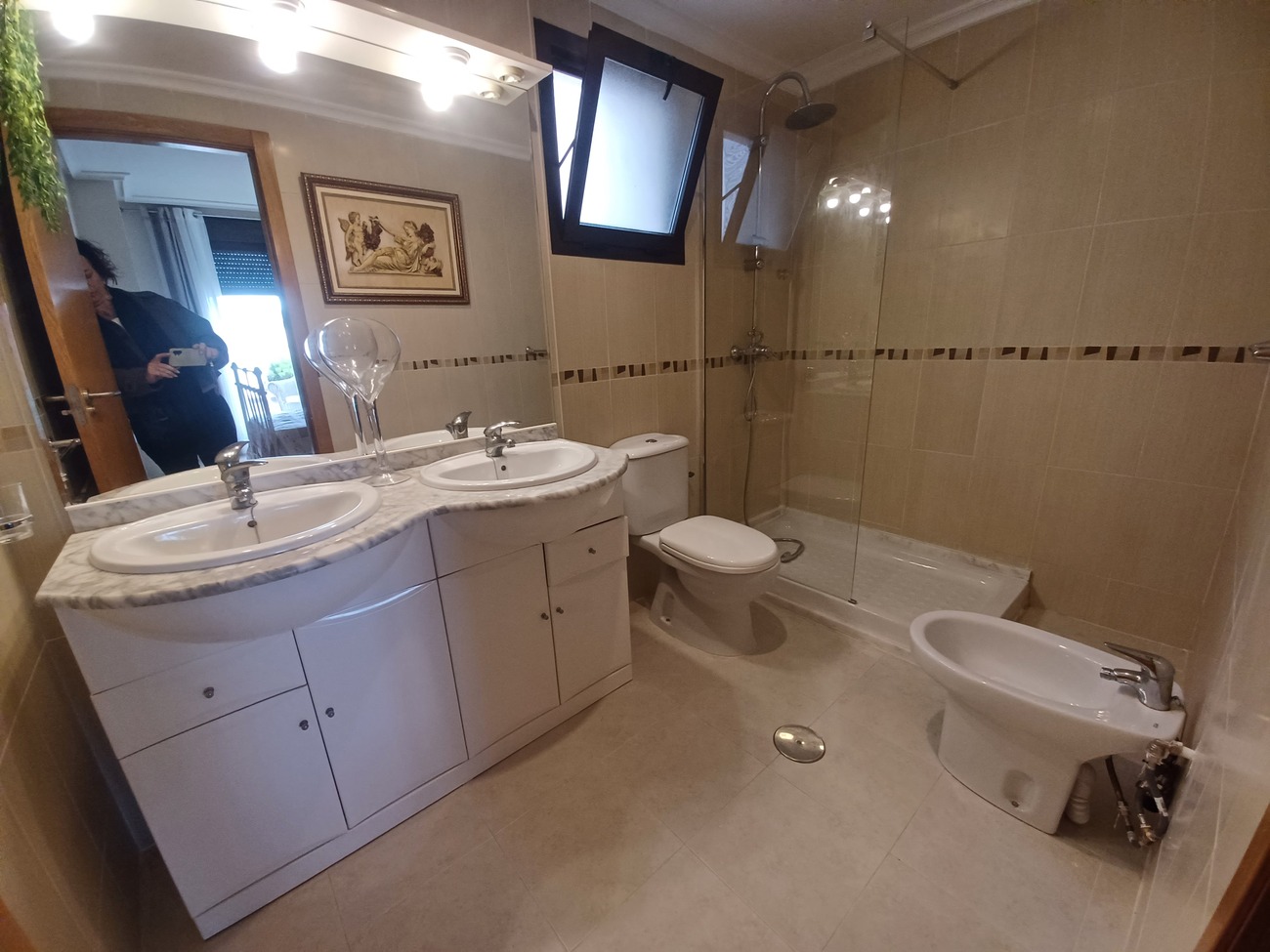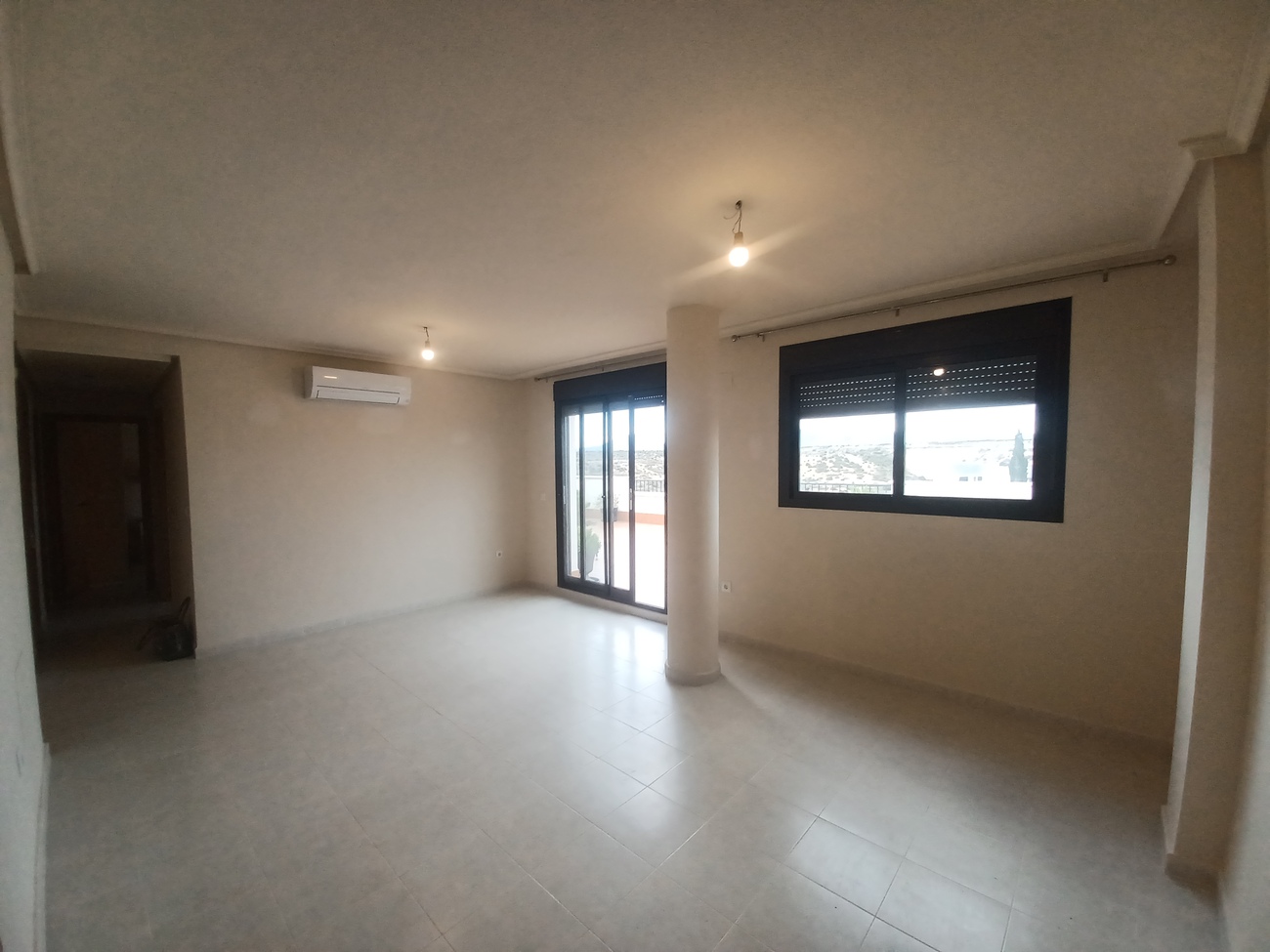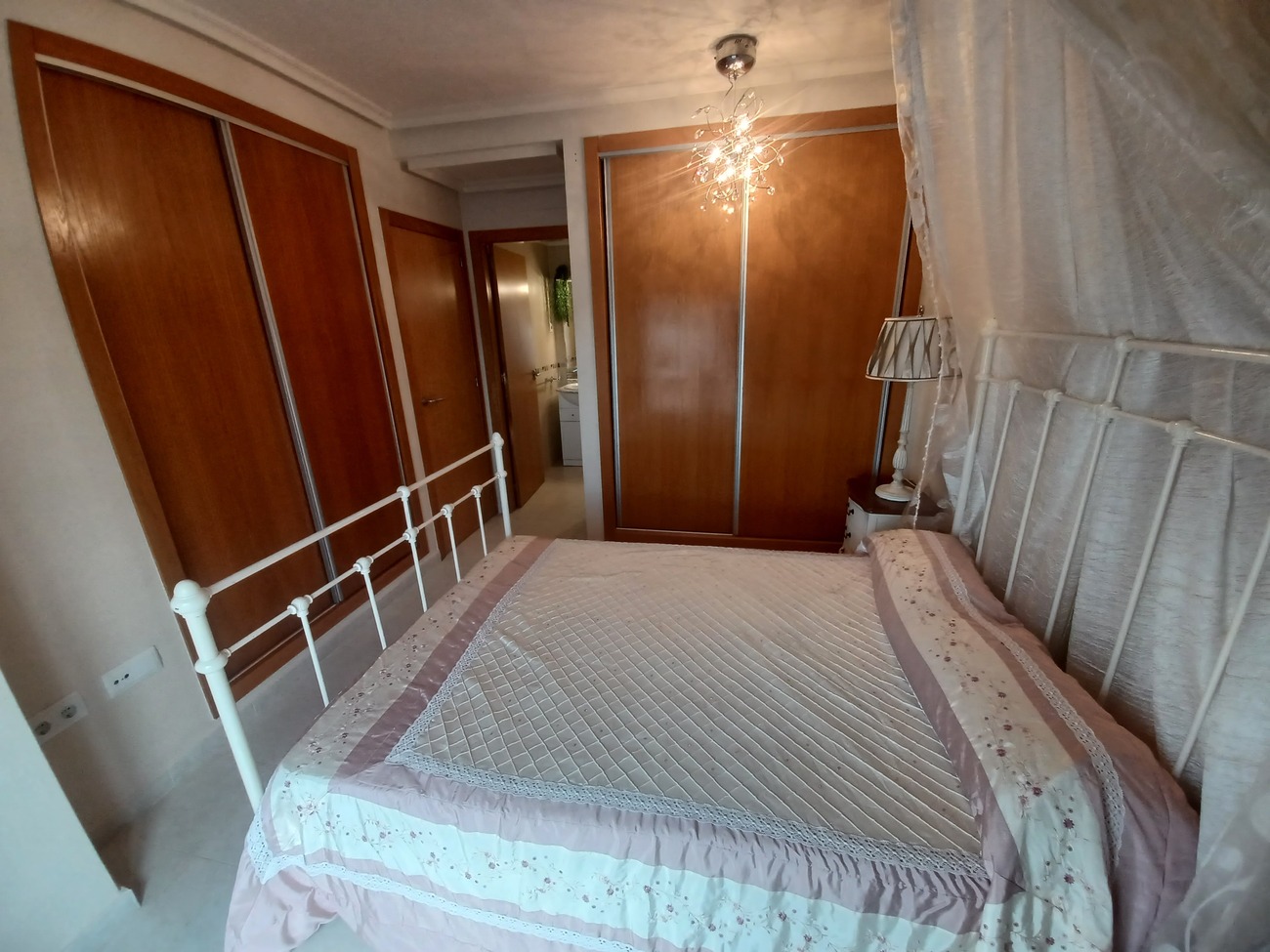 This spacious penthouse apartment offers plenty of outside space and modern interior.  The penthouse enters into a living/dining room with wardrobe storage at the front door, window, patio doors to a spacous outdoor terrace of 60m2, with views over the countryside and plenty of space to enjoy the sunshine and outdoor dining.  The kitchen is next to the living room, fully equipt with fitted kitchen cupboards, oven, hob, extractor, fridge freezer and washing machine.  there is a hallway from the living room leading to 2 double bedrooms, the first on the left hand side is a standard double with fitted wardrobes, window and blind.  The master bedroom is a double with double bed and bedside cabinet included, 2 double wardrobes and ensuite bathroom with double sink, walk in shower and wc.  The main bathroom has a shower, wc and vanity unit. The penthouse is situated on the top floor of La Vereda building with communal swimming pool and lift. Situated in the popular village of Sucina with supermarkets, bars, restaurants and all amenities to hand, it is a very convenient place to stay with everything within a short walk.  Just 20 minutes to the coast and 20 minutes to the airport.
