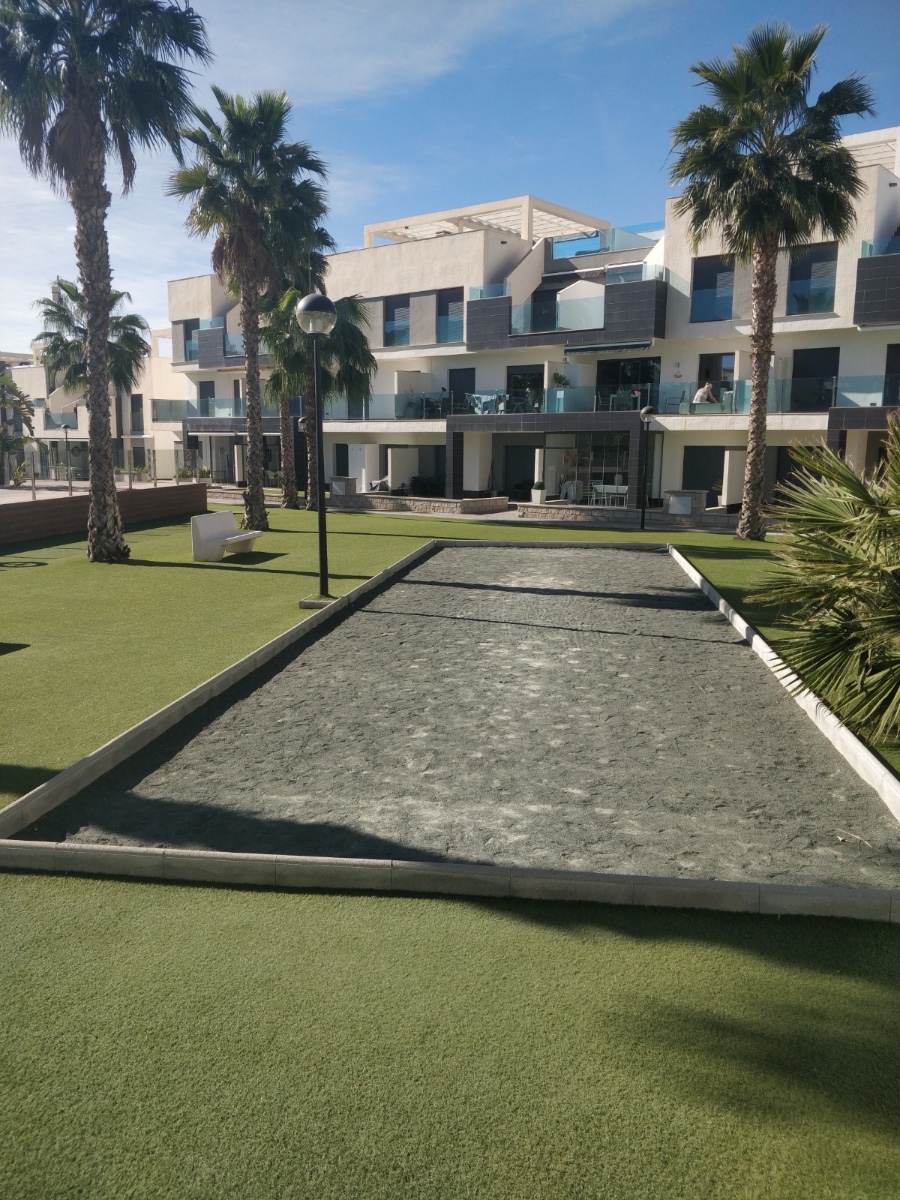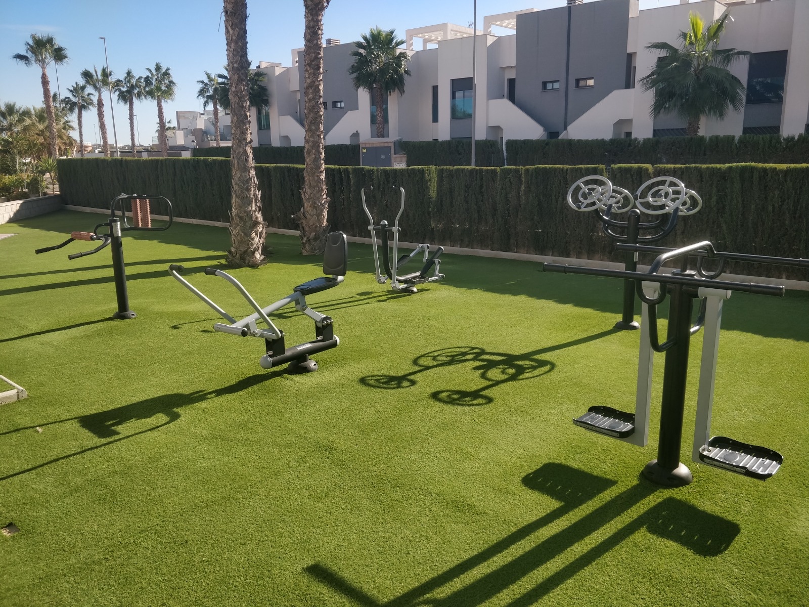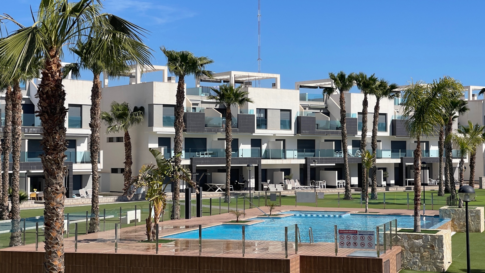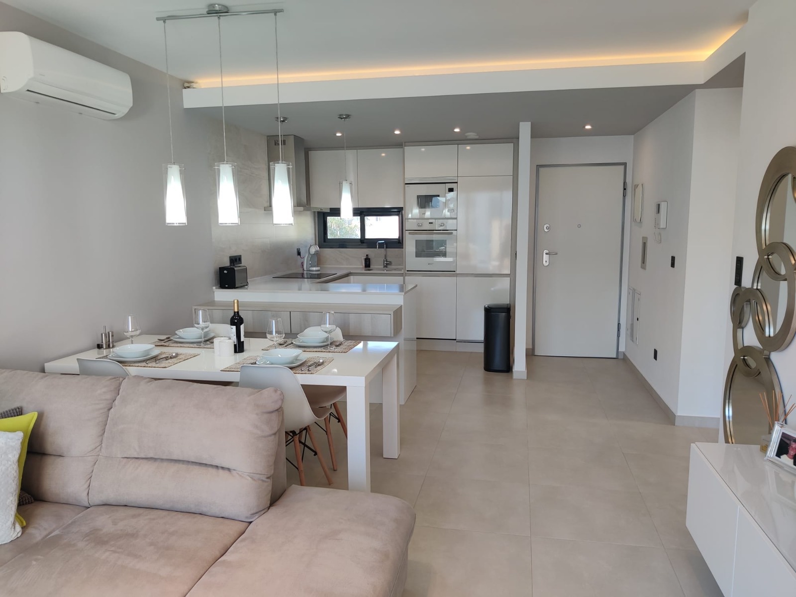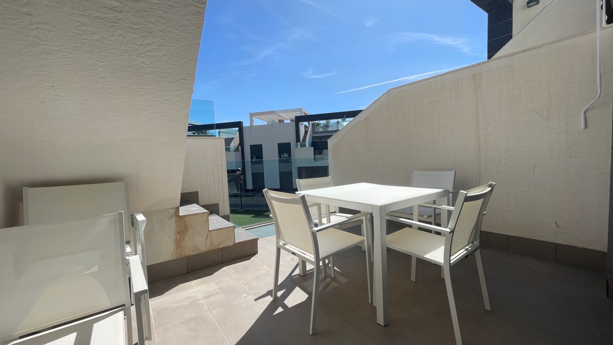 This beautiful Oasis Beach penthouse in El Raso, located 10 minutes from the highly sought-after Guardamar del Segura, is offered for sale in excellent condition. The current and first owners of this beautiful penthouse have never rented the house. The apartment is located in a modern residential complex with a beautiful swimming pool, playground, petanque court, fitness, jacuzzi and sauna. The modern furnishings, lots of light and a view of the communal swimming pool are just a few of the assets. The penthouse has 2 bedrooms, fitted wardrobes, 2 modern bathrooms and a beautiful open kitchen with all appliances. From the living room you have access to a spacious eastern terrace where you can enjoy a cup of coffee or a glass of wine. Via the terrace you reach the solarium where you can enjoy the sun all day long. The beach of cozy Guardamar del Segura is a 10-minute drive away. The price of the apartment includes underground parking. Would you like more information or a visit? Contact us today! Suma: €256/year Community: €267/3 months