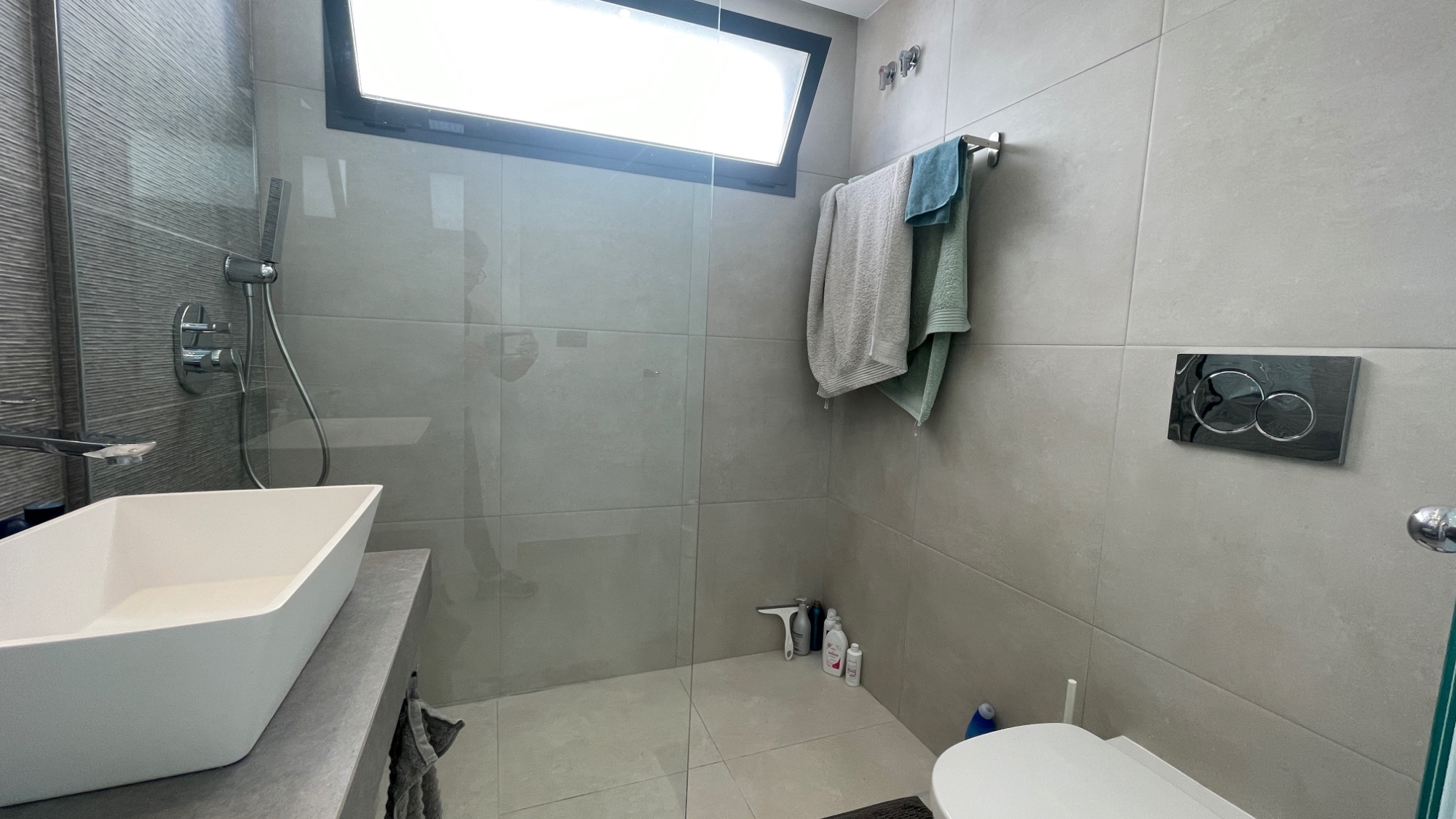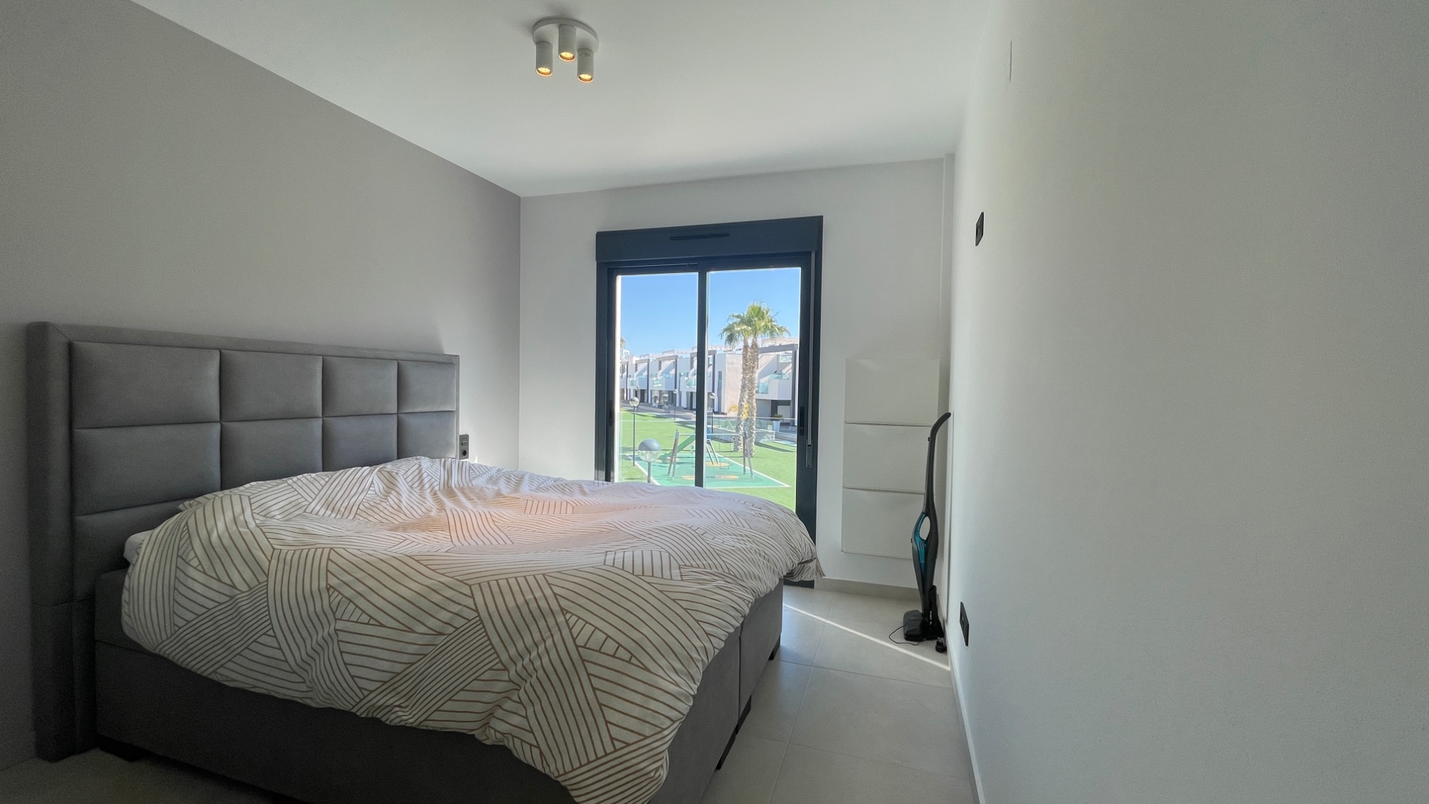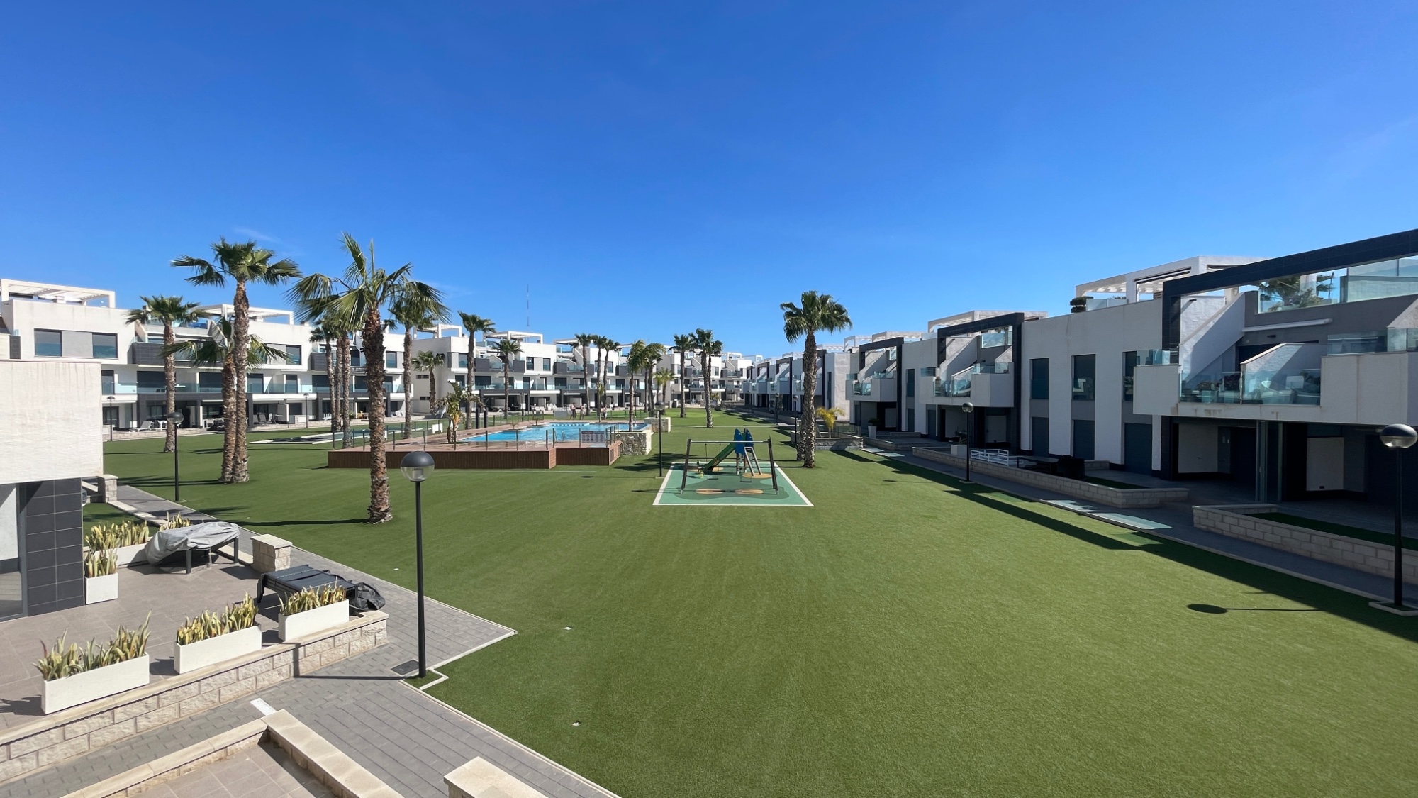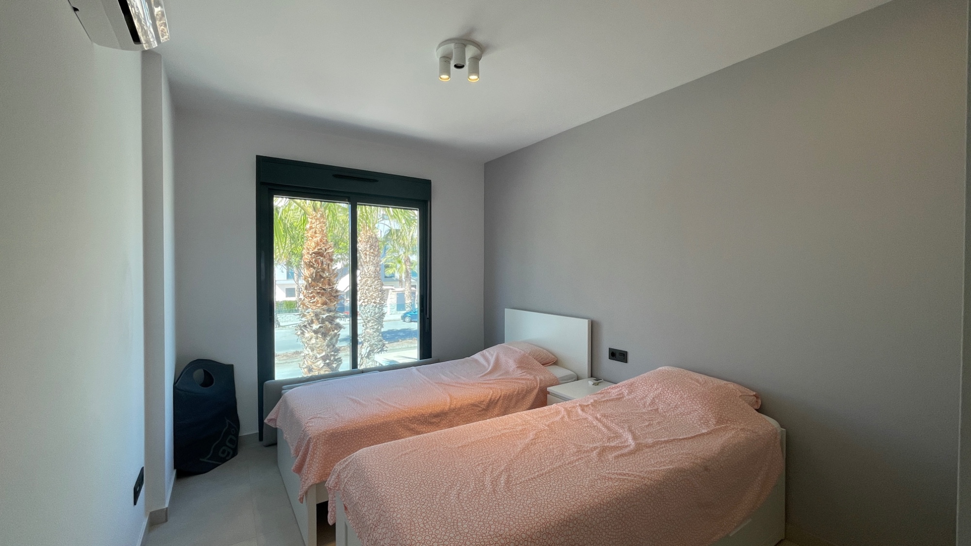 This beautiful Oasis Beach penthouse in El Raso, located 10 minutes from the highly sought-after Guardamar del Segura, is offered for sale in excellent condition. The current and first owners of this beautiful penthouse have never rented the house. The apartment is located in a modern residential complex with a beautiful swimming pool, playground, petanque court, fitness, jacuzzi and sauna. The modern furnishings, lots of light and a view of the communal swimming pool are just a few of the assets. The penthouse has 2 bedrooms, fitted wardrobes, 2 modern bathrooms and a beautiful open kitchen with all appliances. From the living room you have access to a spacious eastern terrace where you can enjoy a cup of coffee or a glass of wine. Via the terrace you reach the solarium where you can enjoy the sun all day long. The beach of cozy Guardamar del Segura is a 10-minute drive away. The price of the apartment includes underground parking. Would you like more information or a visit? Contact us today! Suma: €256/year Community: €267/3 months
