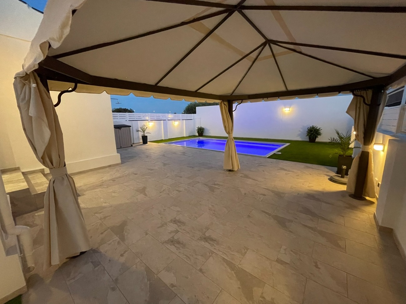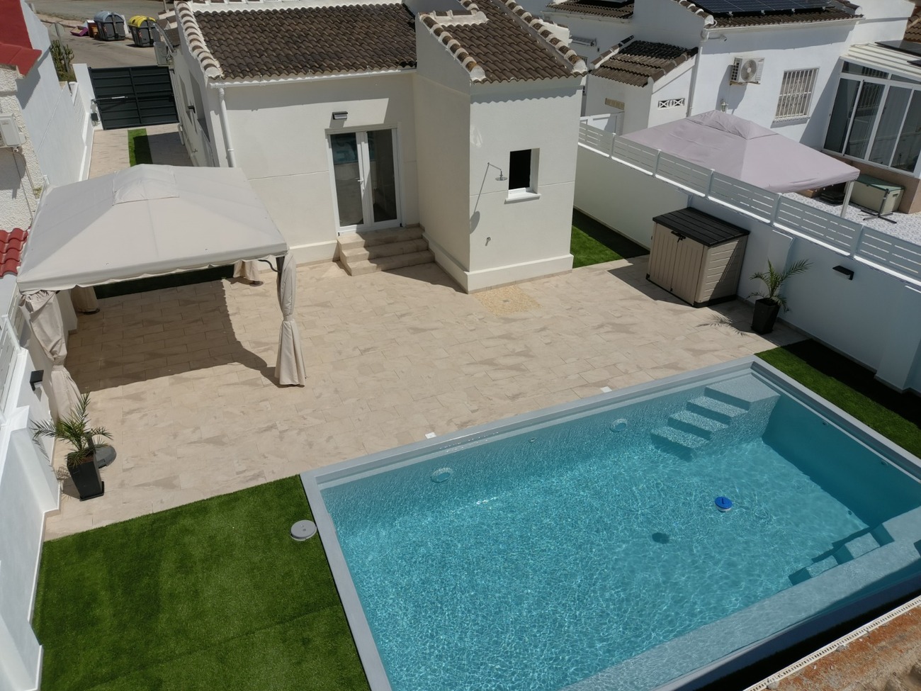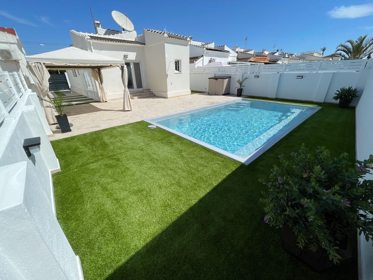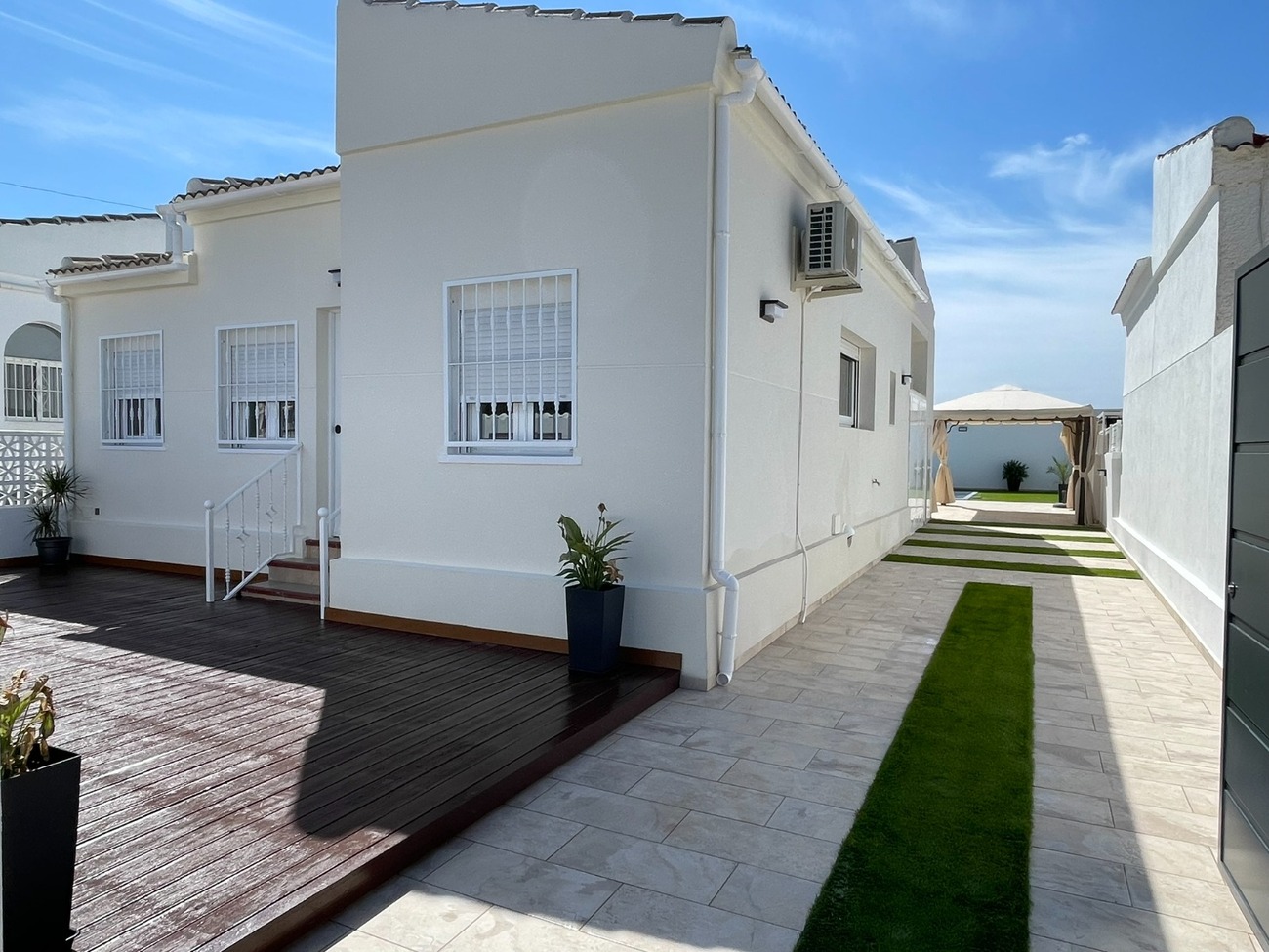 Modern reformed villa for sale, situated on a plot of 300 m² with 105 m² constructed area. This contemporary designed property has 3 spacious bedrooms and 2 bathrooms, ideal for a family.The villa has a beautiful terrace which offers a perfect space to relax and enjoy the weather. A garage space is included, providing additional convenience.The property is in very good condition, as it is second hand but has been refurbished with quality materials. It is equipped with fitted wardrobes in the bedrooms, plus a storage room for extra storage space.South facing, which guarantees excellent natural light throughout the day. Built in 1988, but recently refurbished to bring it up to date with the demands of modern living. The heating is individual and works by means of a hot/cold pump, providing comfort all year round.The property includes an automatic garage for two cars and an additional outside storage room, SUMA/IBI (property tax): 268.82 euros.Don't miss this opportunity to enjoy the best of Spanish coastal living!
