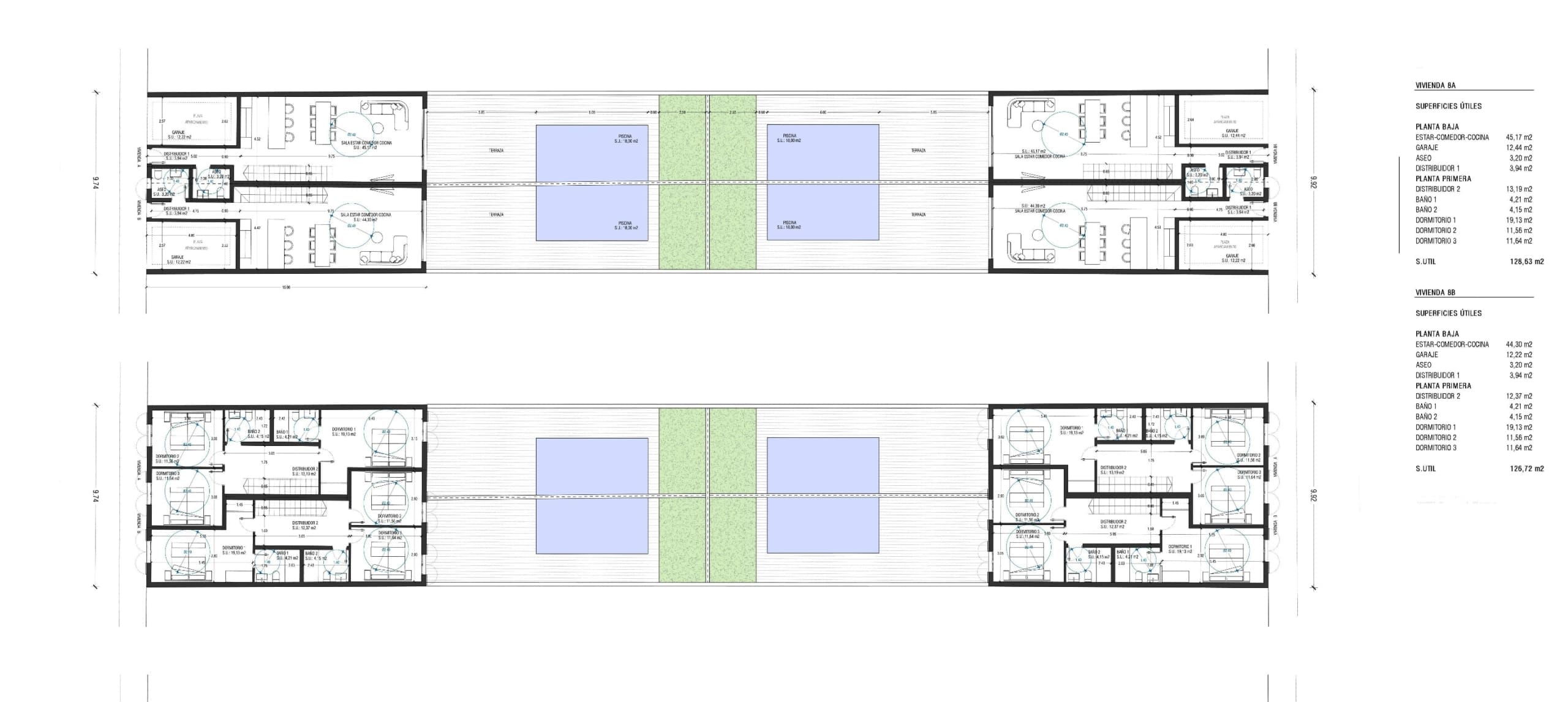 Urban Land For Sale in Ses Salines Mallorca. Looking for an investment opportunity in one of the most charming towns in southern Mallorca? This urban plot has a project applied for the construction of four semi-detached houses, ideal for developing modern homes in a quiet and authentic setting. The license is pending, it has a project for the construction of the four houses each with a guest toilet and open plan kitchen diner and lounge on the ground floor a garden, garage and the option for a swimming pool. With Three double bedrooms and two bathrooms on the first floor one of which is an ensuite bathroom for the master bedroom.