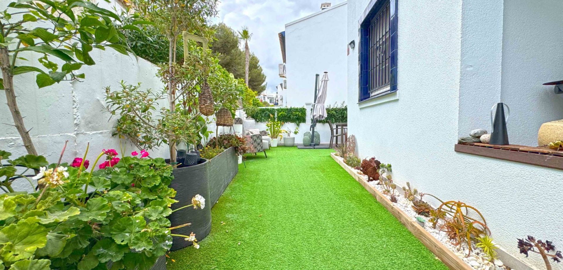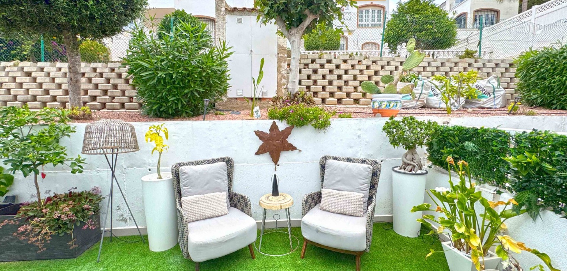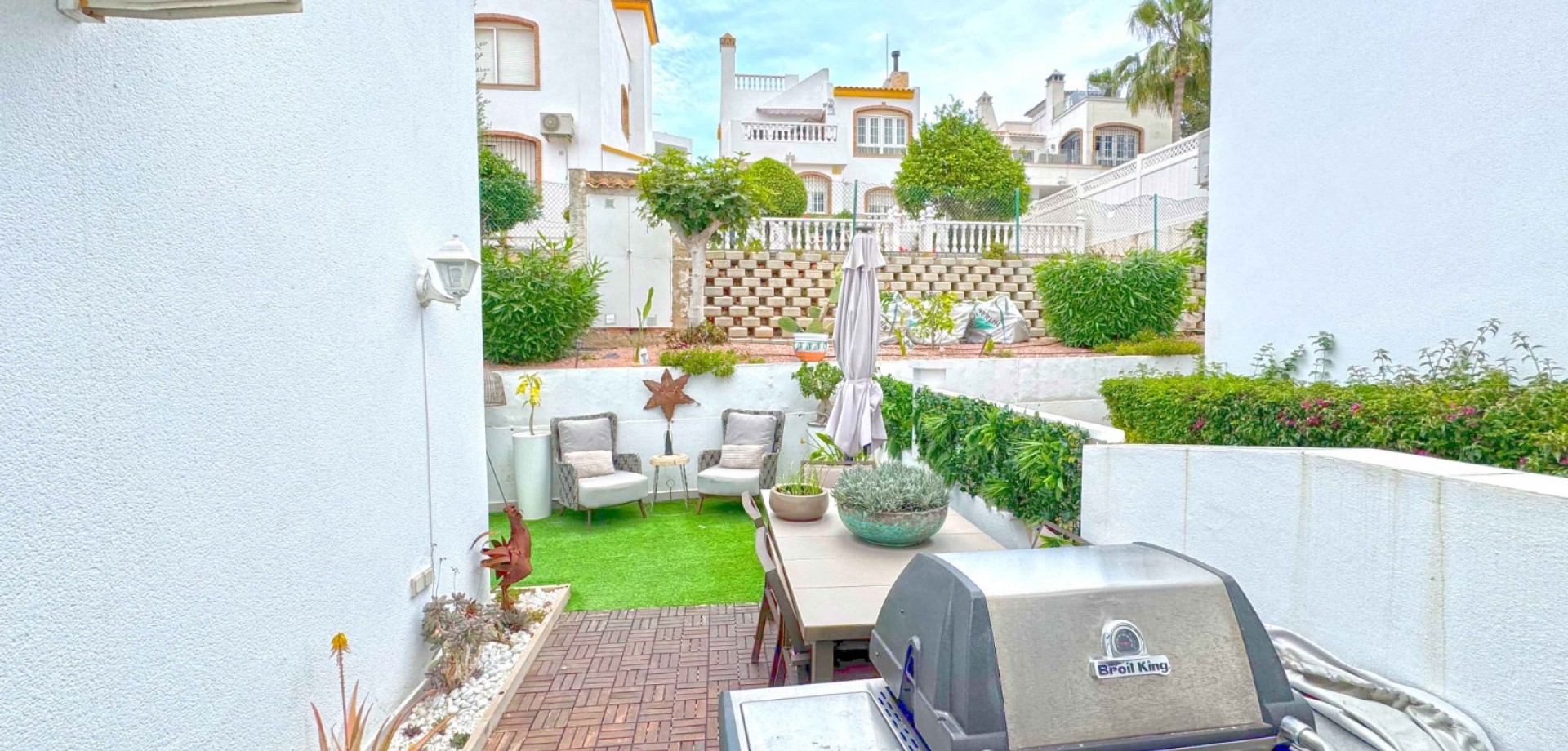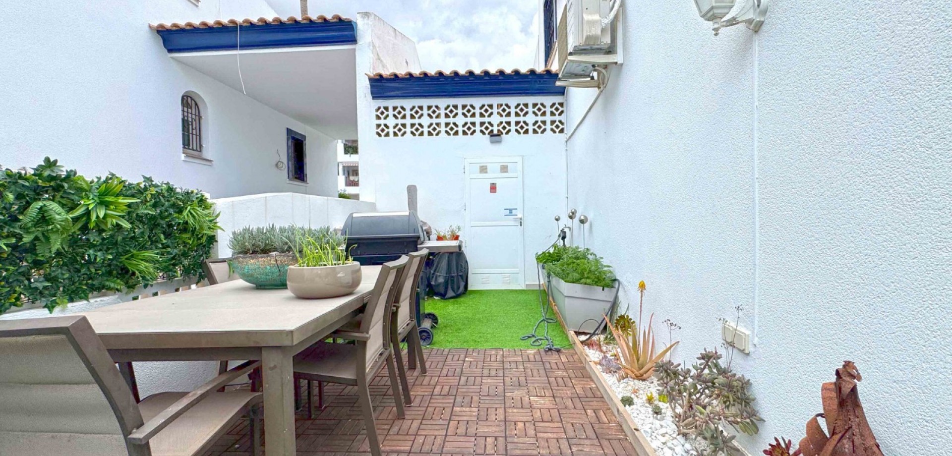 Step into this impeccably renovated townhouse that sets a new standard for quality and style. Every inch of this home has been thoughtfully upgraded with premium finishes, offering a luxurious and low-maintenance lifestyle — perfect for full-time living, a vacation retreat, or a smart investment on the Costa Blanca. Spread over two levels, this elegant home boasts 3 spacious bedrooms and 2 modern bathrooms. On the ground floor, you’re welcomed by a bright and airy living area, two bedrooms, a sleek bathroom, and a truly high-end designer kitchen. This culinary space is a standout feature, equipped with double ovens, a new induction hob with integrated fan, hidden sink, and extensive custom cabinetry providing exceptional storage solutions — a dream for any home chef. Upstairs, you’ll find one additional bedroom, with private bathroom. From here, step directly out onto your private rooftop terrace — a tranquil spot to enjoy morning sun or evening breezes. Outdoors, this property shines with generous terraces at both the front and back. The south-facing rear garden is perfect for entertaining, relaxing, or dining alfresco with family and friends, while the front terrace offers secure parking on the plot or inside the garage. The large private garage not only houses your car but also doubles as a functional utility space with laundry area, dryer, and a new boiler — combining convenience and storage in one. Additional high-quality features include: Air conditioning throughout Built-in wardrobes High-spec renovation throughout Furniture negotiable Situated in a quiet and established residential area, this move-in-ready home offers exceptional value and outstanding living comfort. If you're looking for a stylish, turn-key property that truly feels like home — this one is not to be missed.