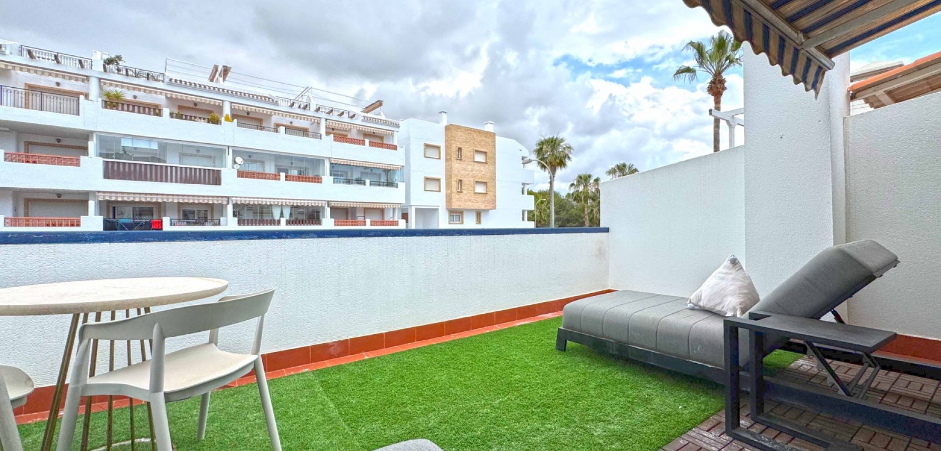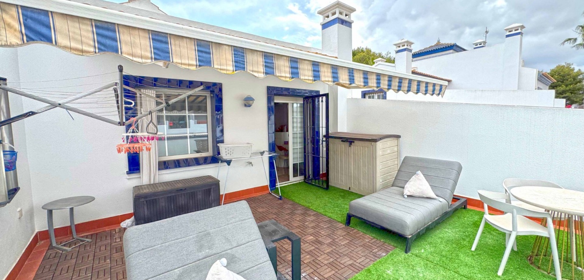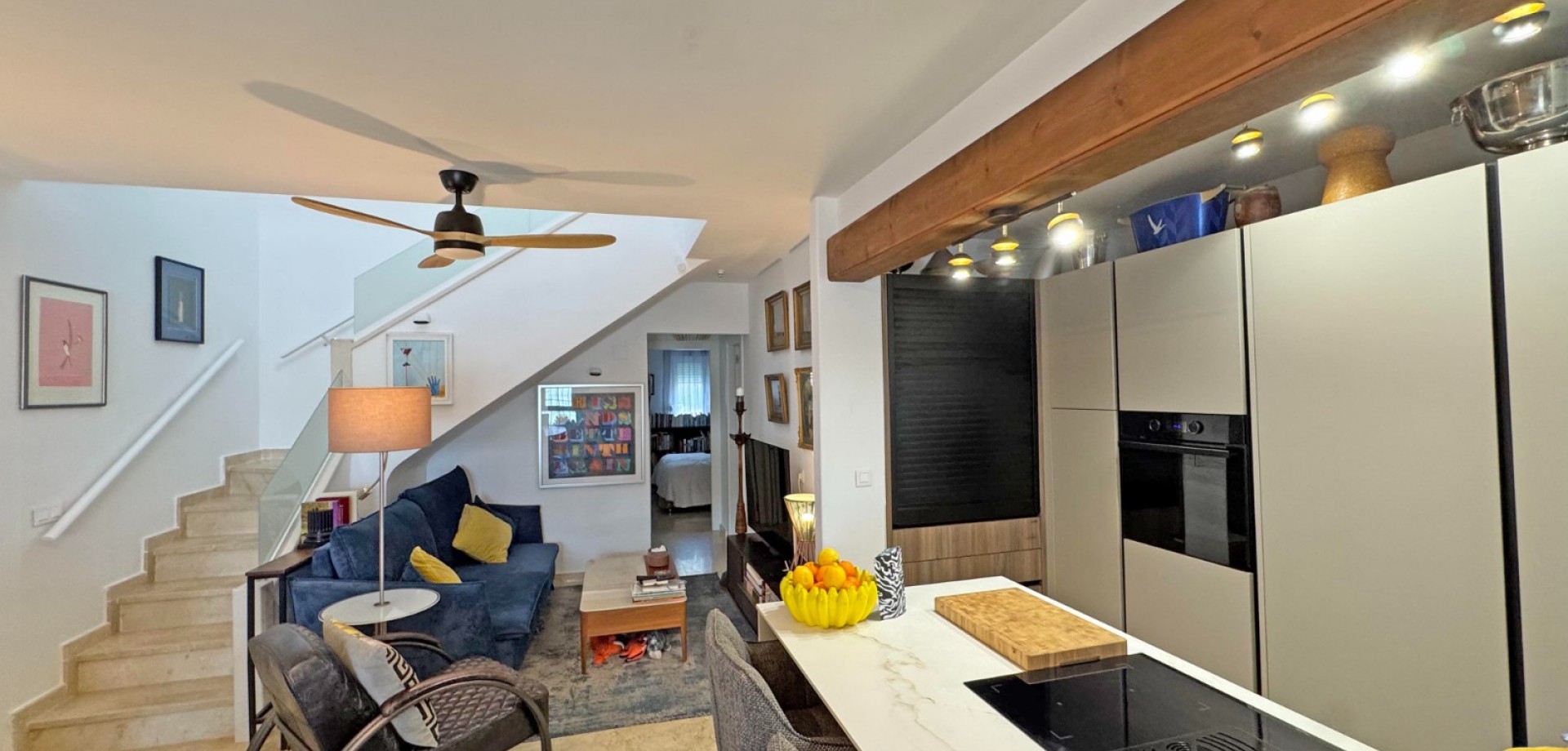Step into this impeccably renovated townhouse that sets a new standard for quality and style. Every inch of this home has been thoughtfully upgraded with premium finishes, offering a luxurious and low-maintenance lifestyle — perfect for full-time living, a vacation retreat, or a smart investment on the Costa Blanca. Spread over two levels, this elegant home boasts 3 spacious bedrooms and 2 modern bathrooms. On the ground floor, you’re welcomed by a bright and airy living area, two bedrooms, a sleek bathroom, and a truly high-end designer kitchen. This culinary space is a standout feature, equipped with double ovens, a new induction hob with integrated fan, hidden sink, and extensive custom cabinetry providing exceptional storage solutions — a dream for any home chef. Upstairs, you’ll find one additional bedroom, with private bathroom. From here, step directly out onto your private rooftop terrace — a tranquil spot to enjoy morning sun or evening breezes. Outdoors, this property shines with generous terraces at both the front and back. The south-facing rear garden is perfect for entertaining, relaxing, or dining alfresco with family and friends, while the front terrace offers secure parking on the plot or inside the garage. The large private garage not only houses your car but also doubles as a functional utility space with laundry area, dryer, and a new boiler — combining convenience and storage in one. Additional high-quality features include: Air conditioning throughout Built-in wardrobes High-spec renovation throughout Furniture negotiable Situated in a quiet and established residential area, this move-in-ready home offers exceptional value and outstanding living comfort. If you're looking for a stylish, turn-key property that truly feels like home — this one is not to be missed.