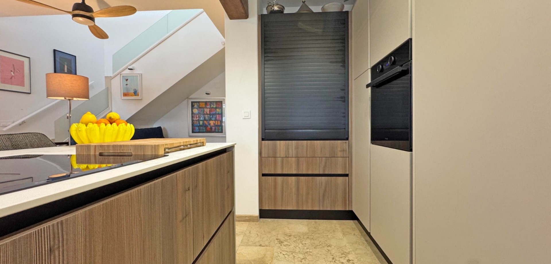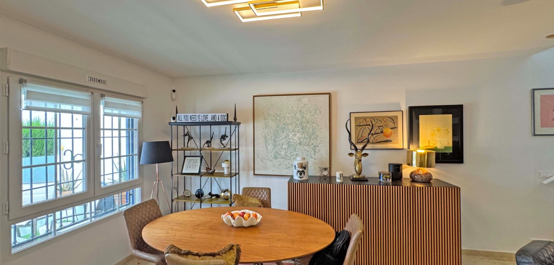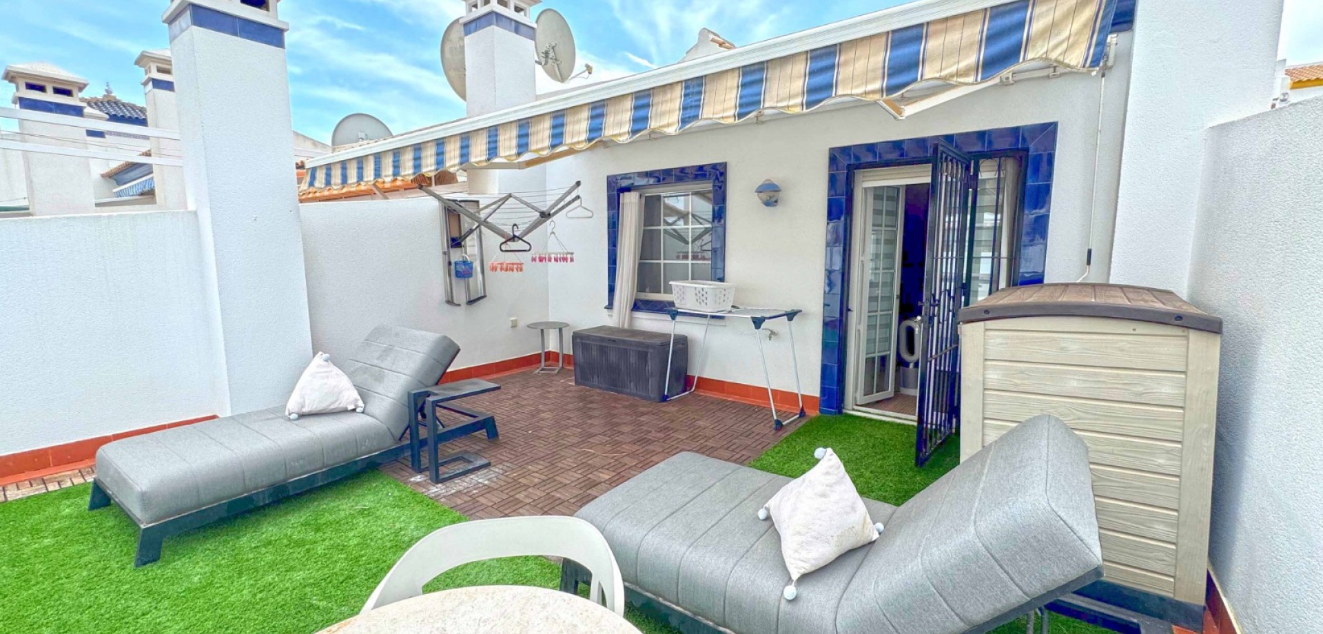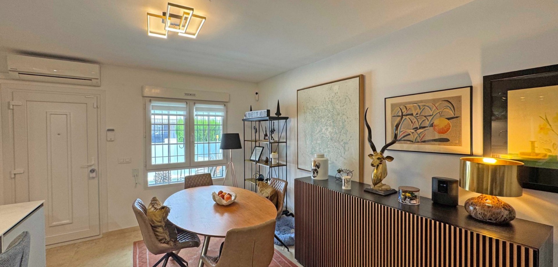 Step into this impeccably renovated townhouse that sets a new standard for quality and style. Every inch of this home has been thoughtfully upgraded with premium finishes, offering a luxurious and low-maintenance lifestyle — perfect for full-time living, a vacation retreat, or a smart investment on the Costa Blanca. Spread over two levels, this elegant home boasts 3 spacious bedrooms and 2 modern bathrooms. On the ground floor, you’re welcomed by a bright and airy living area, two bedrooms, a sleek bathroom, and a truly high-end designer kitchen. This culinary space is a standout feature, equipped with double ovens, a new induction hob with integrated fan, hidden sink, and extensive custom cabinetry providing exceptional storage solutions — a dream for any home chef. Upstairs, you’ll find one additional bedroom, with private bathroom. From here, step directly out onto your private rooftop terrace — a tranquil spot to enjoy morning sun or evening breezes. Outdoors, this property shines with generous terraces at both the front and back. The south-facing rear garden is perfect for entertaining, relaxing, or dining alfresco with family and friends, while the front terrace offers secure parking on the plot or inside the garage. The large private garage not only houses your car but also doubles as a functional utility space with laundry area, dryer, and a new boiler — combining convenience and storage in one. Additional high-quality features include: Air conditioning throughout Built-in wardrobes High-spec renovation throughout Furniture negotiable Situated in a quiet and established residential area, this move-in-ready home offers exceptional value and outstanding living comfort. If you're looking for a stylish, turn-key property that truly feels like home — this one is not to be missed.
