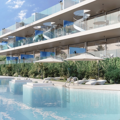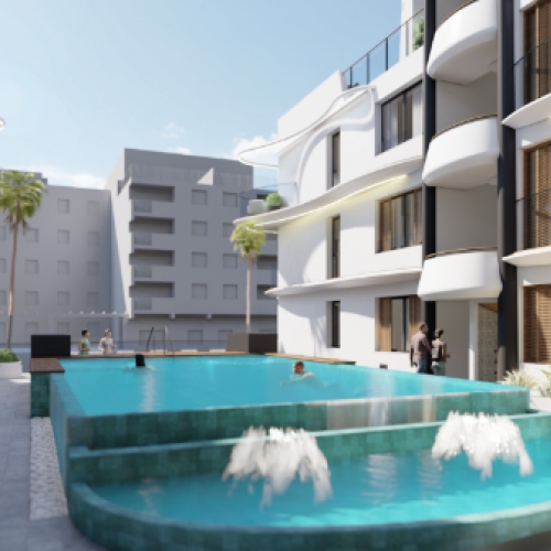 It is a Residential with 84 homes with 1, 2, 3 and 4 bedrooms with a common garden area with a swimming pool. The houses have a garage and swimming pool. All homes have large terraces.