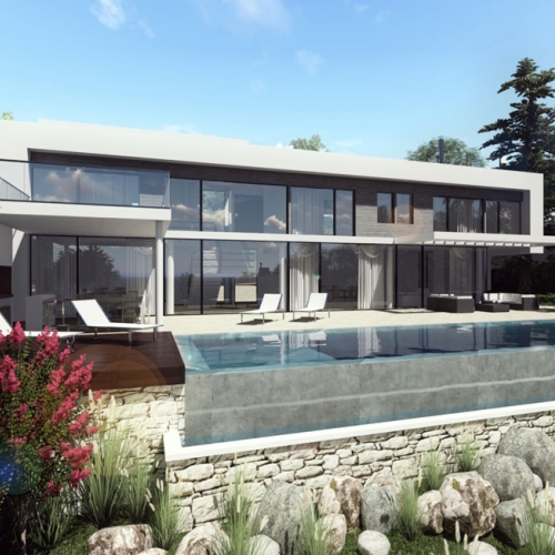 Designed by local avant-garde architects with a flair for Mediterranean living, the villa features spacious open-plan living spaces, a fully equipped modern kitchen with island, high ceilings, elegant marble and porcelain tiles in every room and an abundance of exterior space, including a swimming pool and both covered and uncovered terraces.