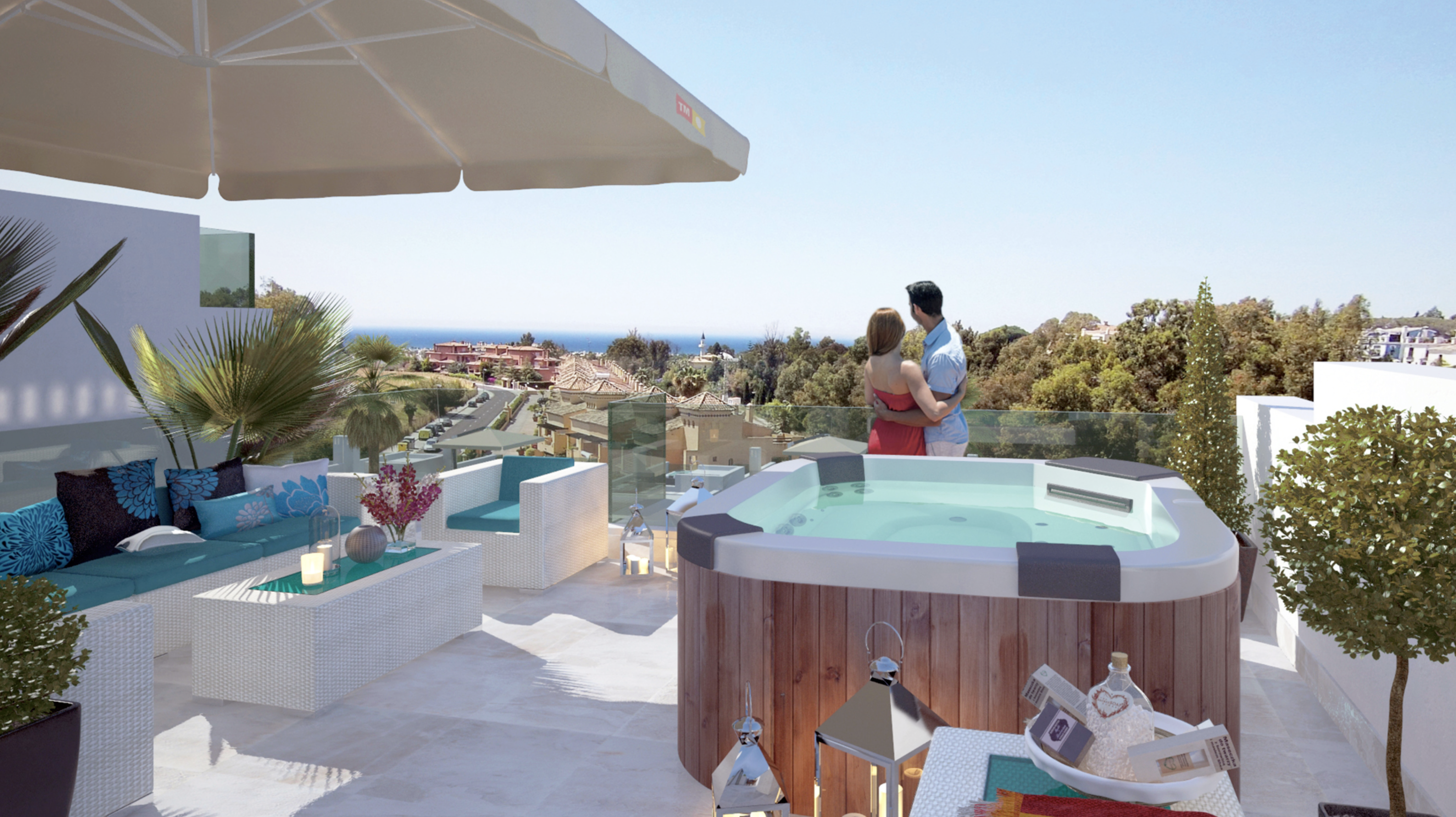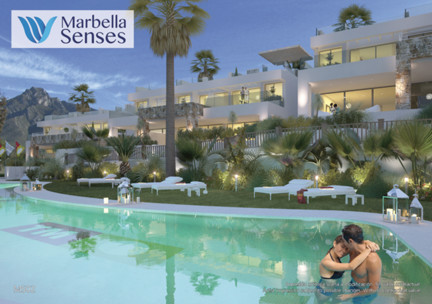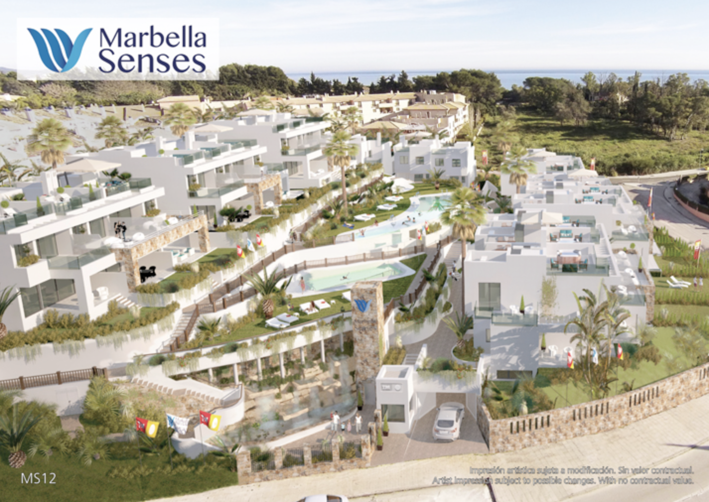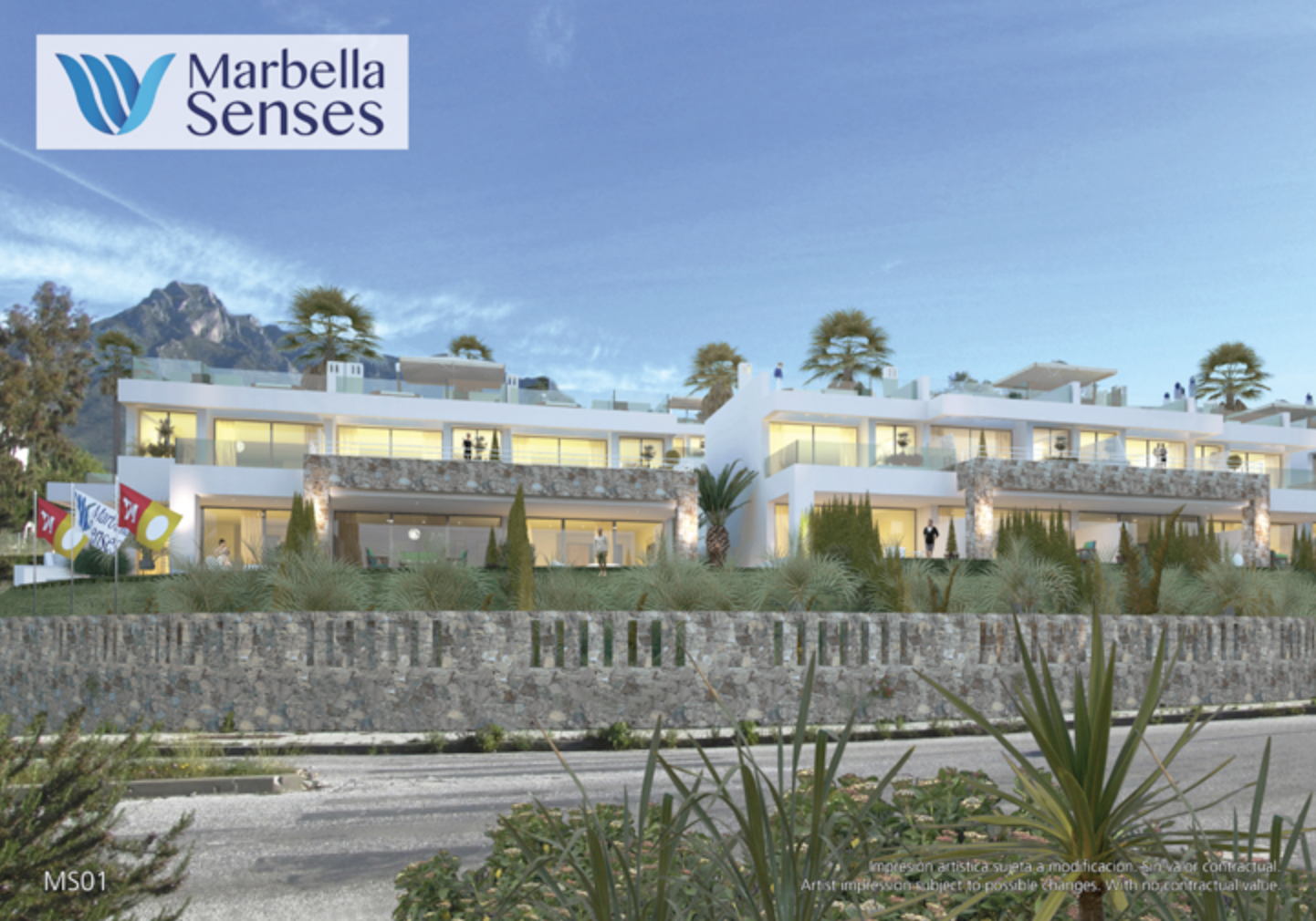 Marbella Senses comprises spacious townhouses on a privileged site on the famous Golden Mile of Marbella, in Costa del Sol, Spain. This fantastic residential estate has just 24 homes facing the sea, with large landscaped areas, grass lawns and beautiful walkways. There are three swimming pools on the estate: a children's pool, a heated pool for swimming, and another, recreational infinity pool of 100m2 with hydromassage. Due to its exceptional location, just a few metres from the Nägueles beach, and with direct links to the A7 motorway and the N-340 national route, as well as its modern, elegant and bright design, Marbella Senses is one of the most attractive projects to be found in the Lomas de Puente Romano area.